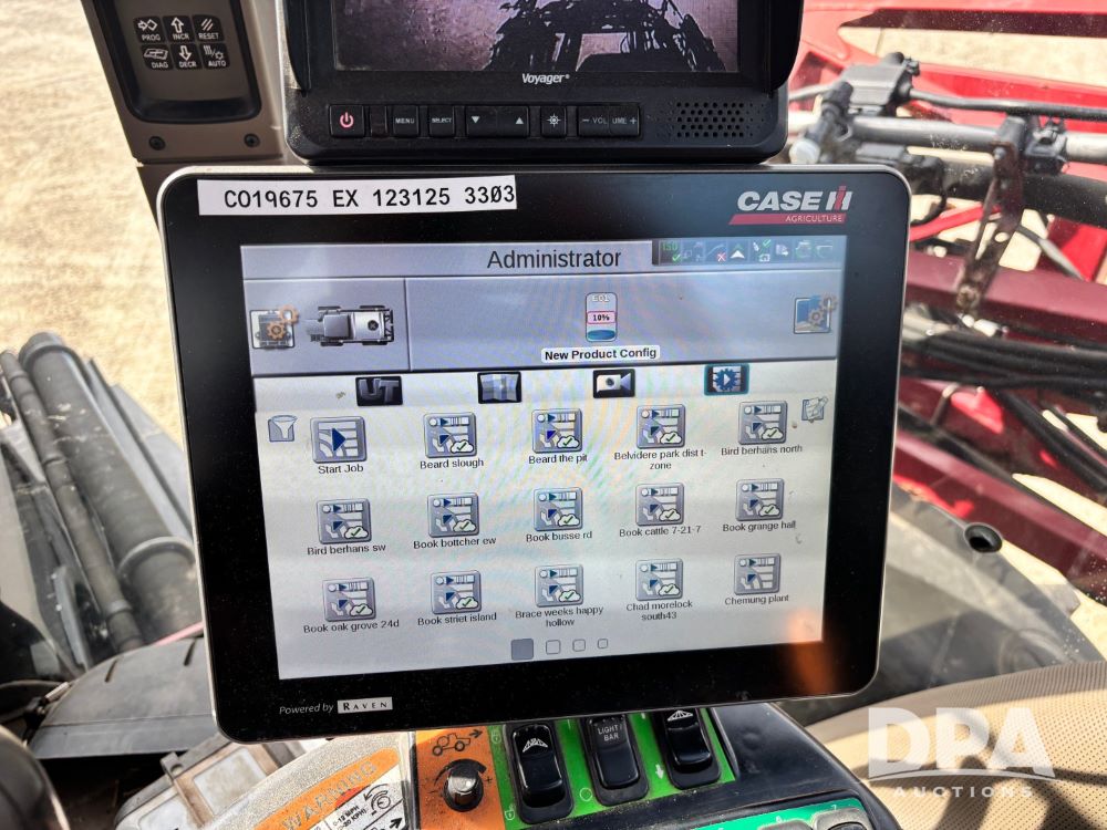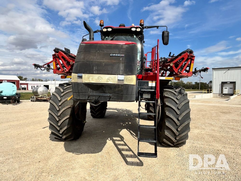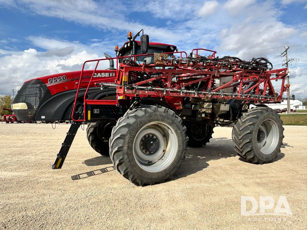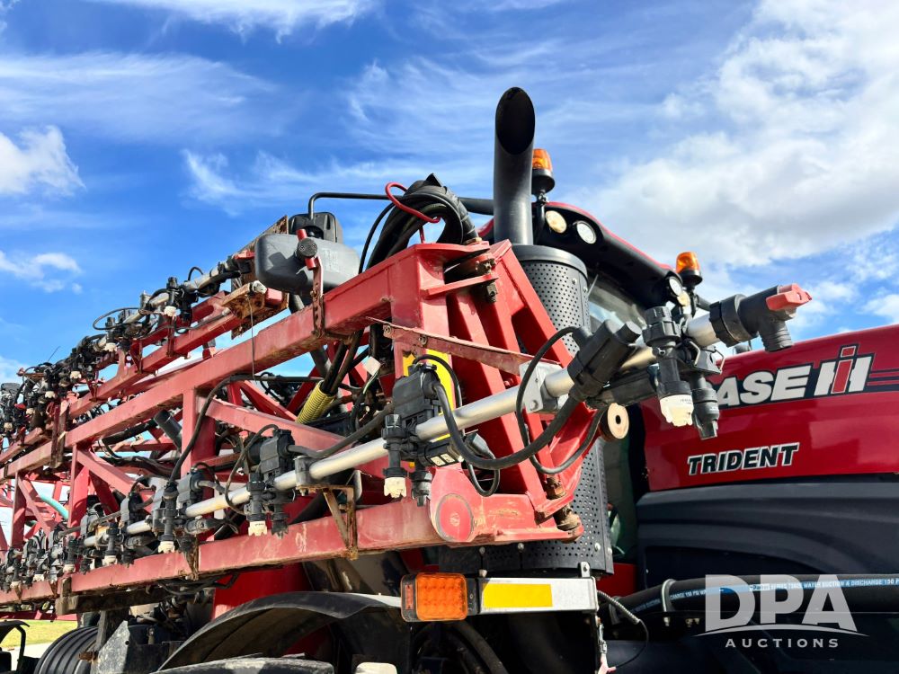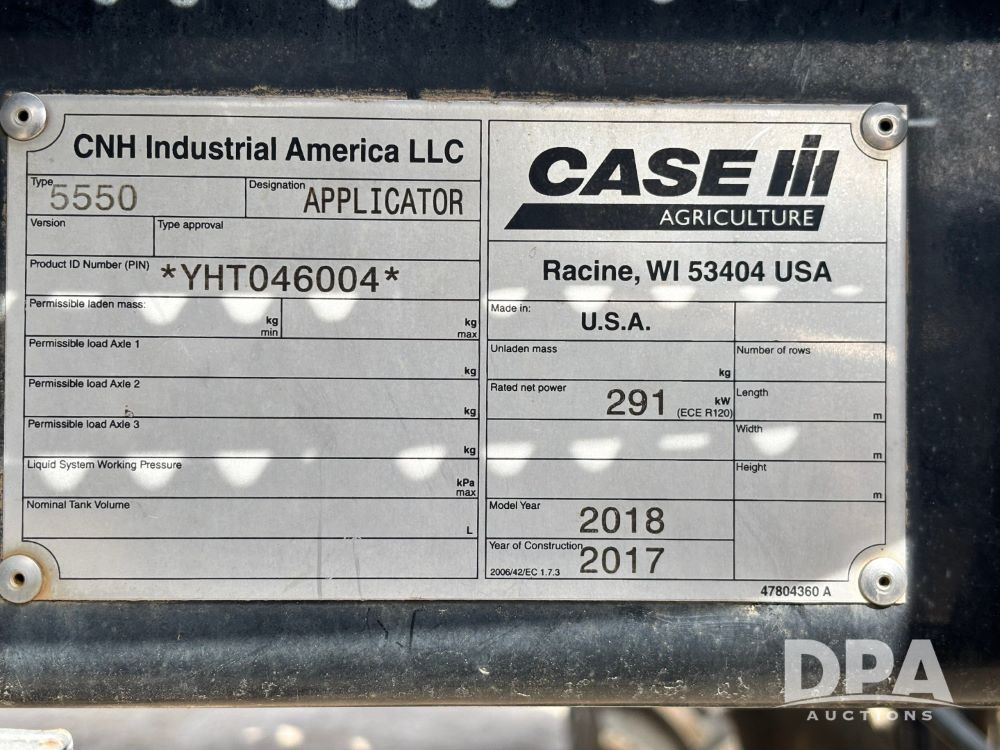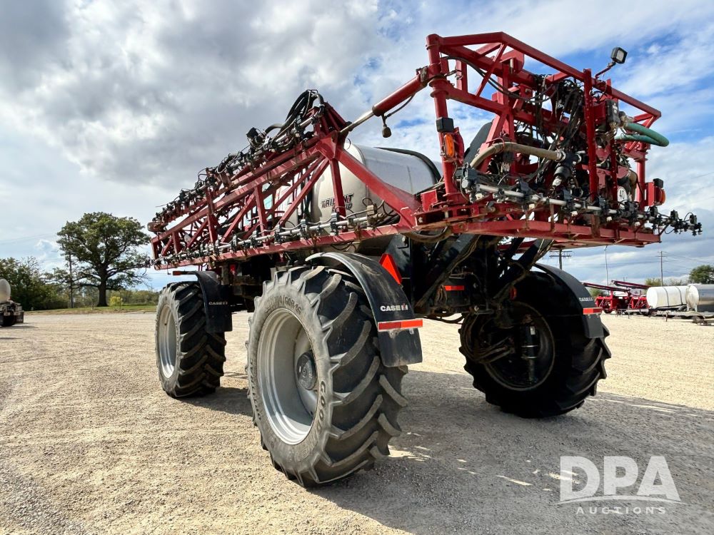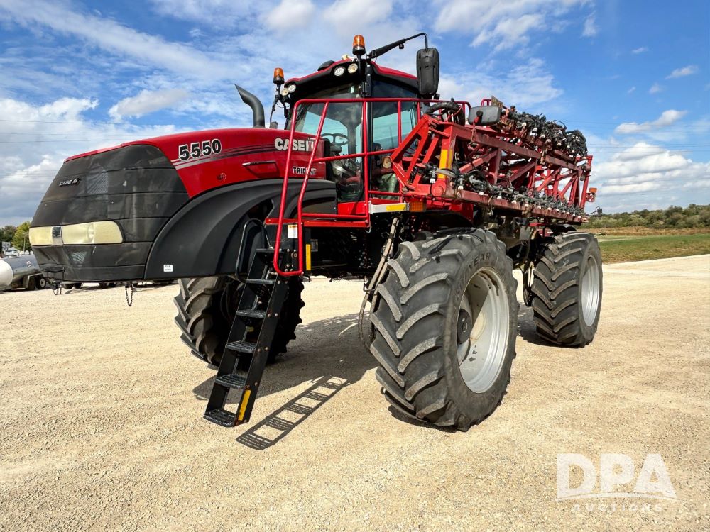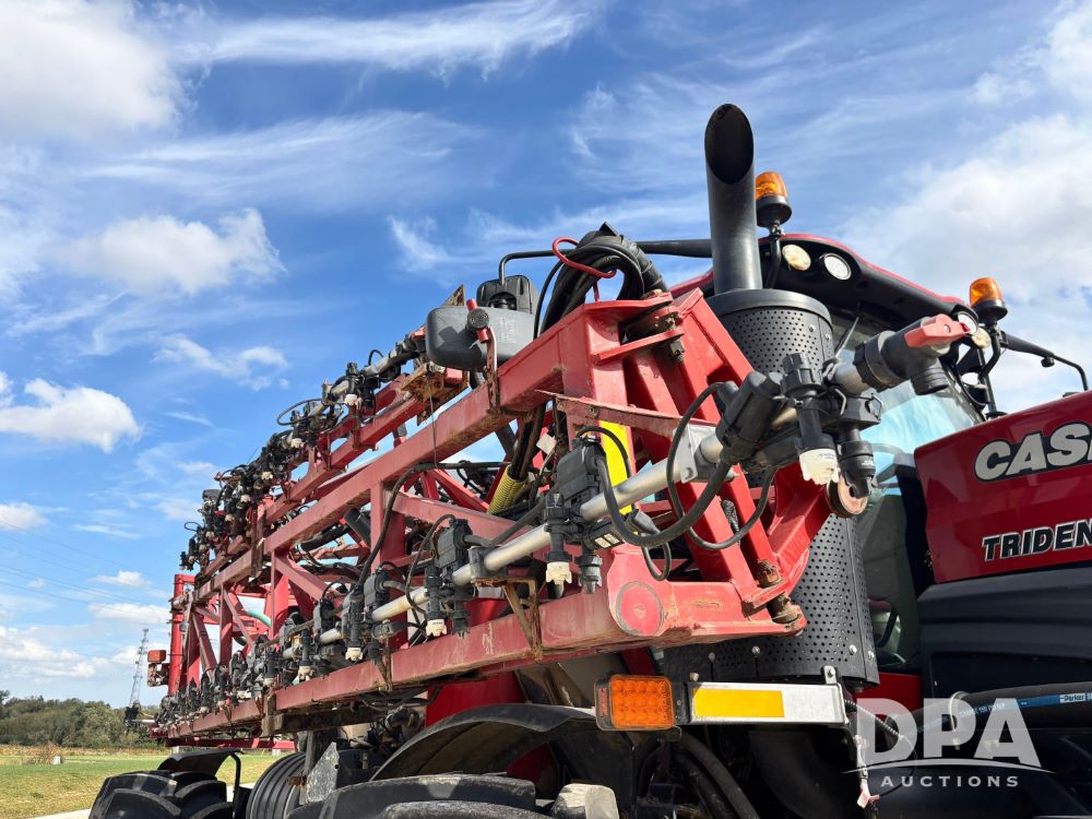 2017 Case Trident 5550 Sprayer (GP11603, Unit 33-03), diesel engine, hydrostatic transmission, air conditioning, heat, Am/Fm CD radio, leather seat, buddy seat, beacon lights, 1400 gallon stainless steel liquid system, 120' boom, stainless steel chemical inductor, Good Year Optitrac LSW 710/60R46 flotation tires, fenders, Voyager cab camera, Raven Viper 4 monitor, shows 3,017 hours.