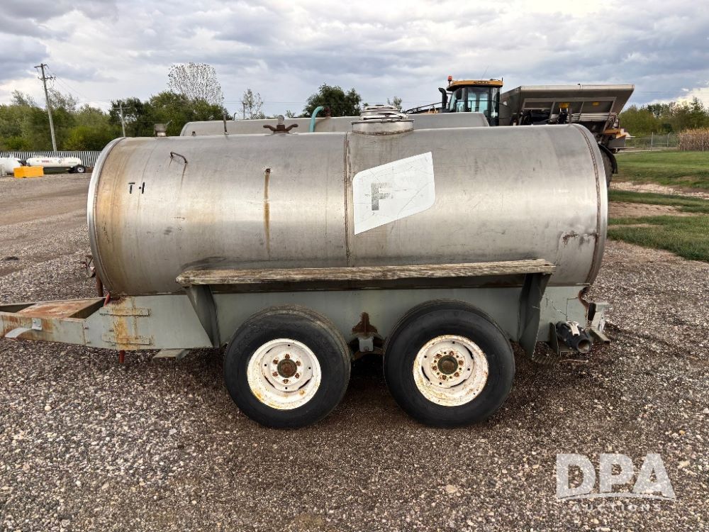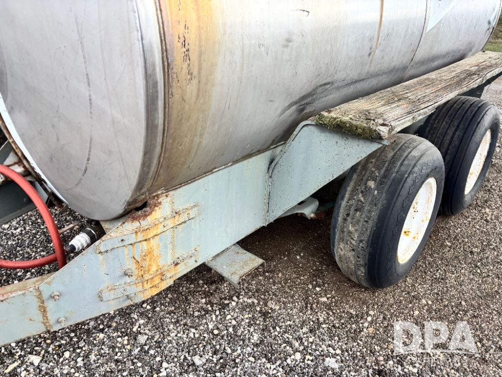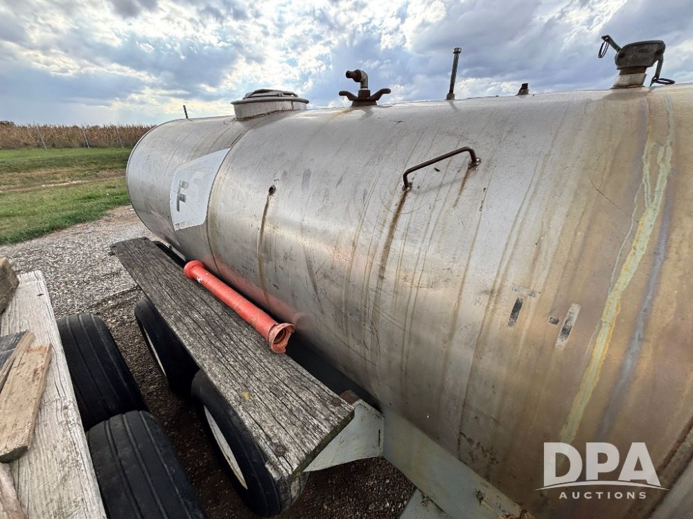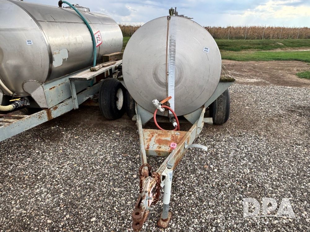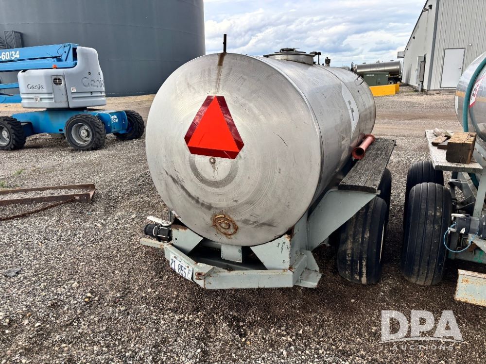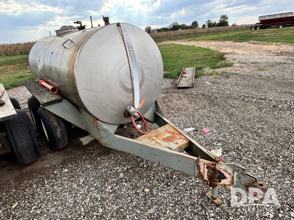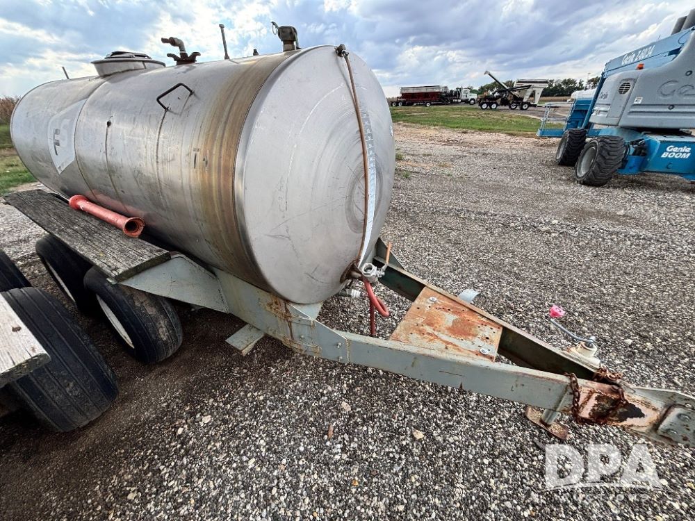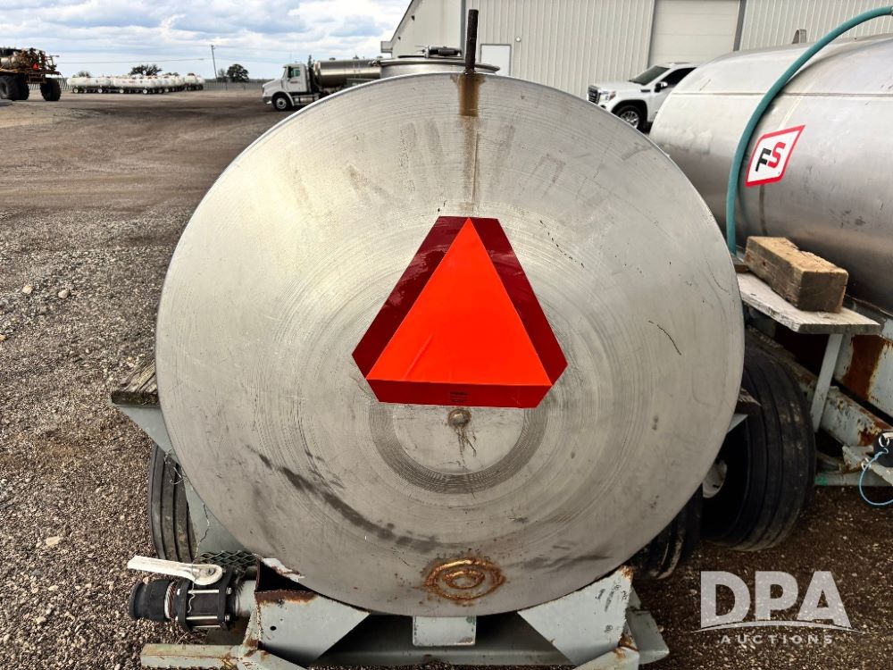 Precision Liquid Nurse Tank (GP11607, Unit T-1), Precision 1000 gallon stainless steel liquid nurse tank, tandem axle gear, 11L-15 flotation tires.