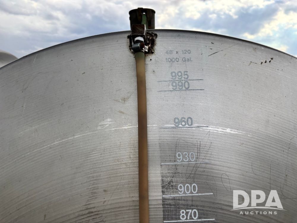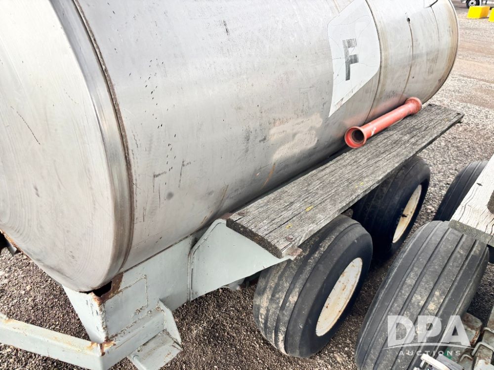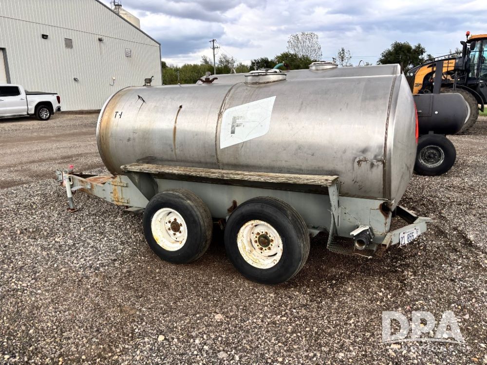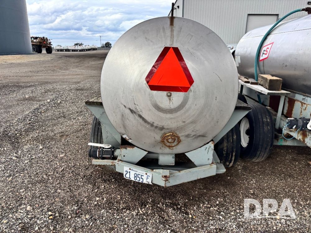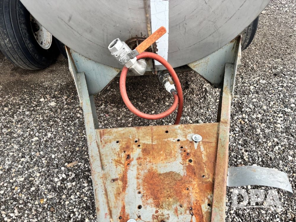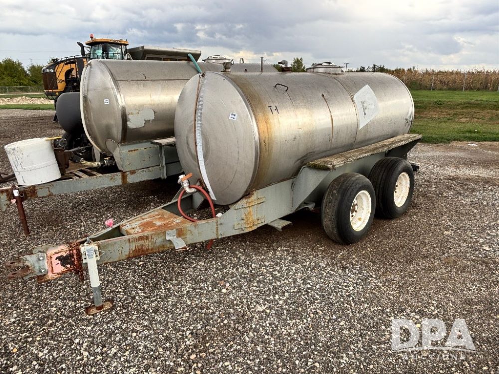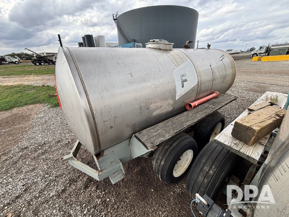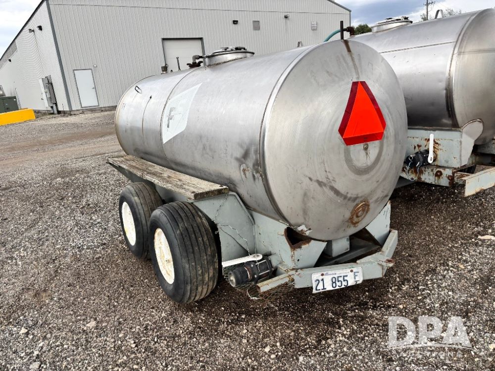 Precision Liquid Nurse Tank (GP11607, Unit T-1), Precision 1000 gallon stainless steel liquid nurse tank, tandem axle gear, 11L-15 flotation tires.