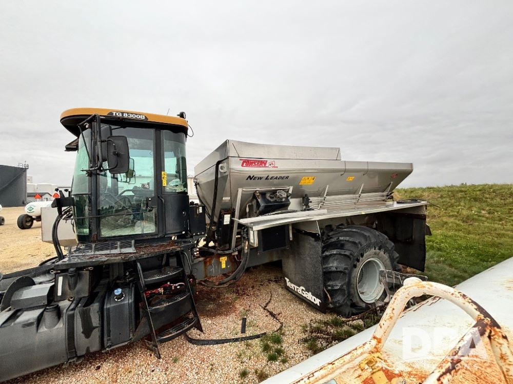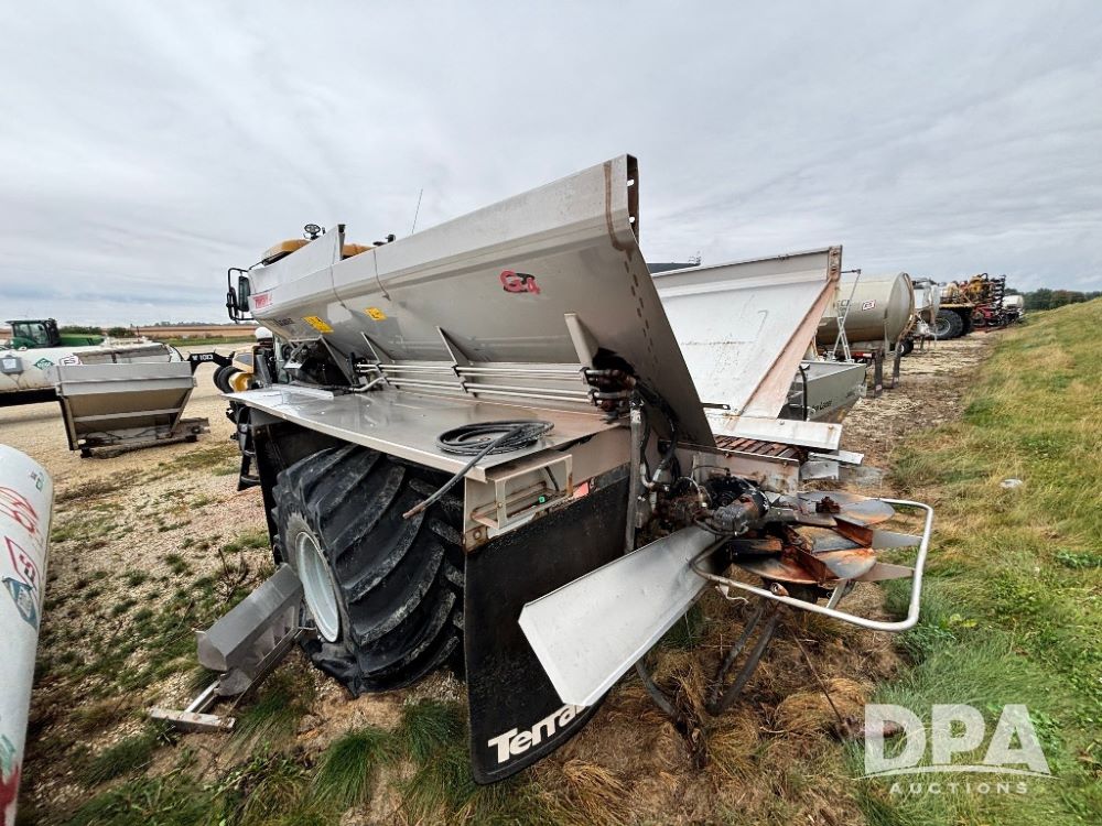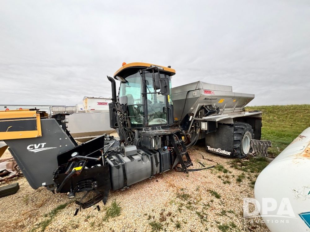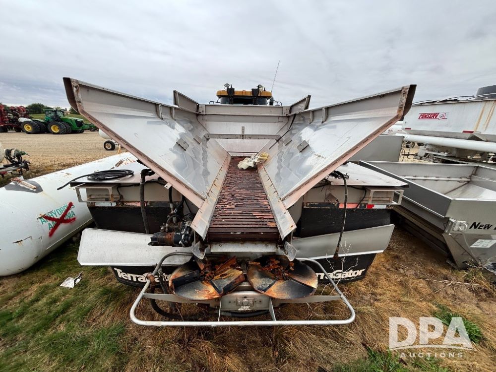 2014 Terra Gator 8300B Dry Floater (GP11626, Unit 78-01), No motor, Am/Fm radio, leather seat, buddy seat, beacon light, New Leader 14' G4 stainless steel dry spreader box (S/N 488297), twin spinner, all hydraulic.