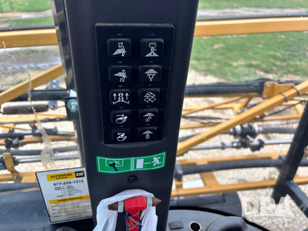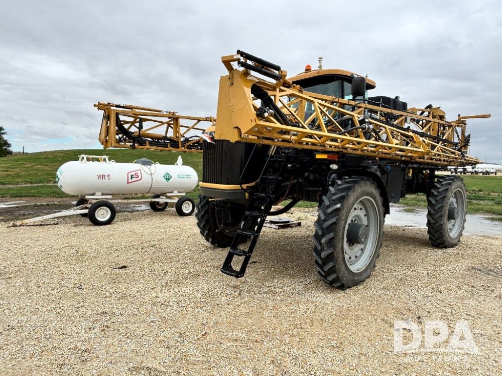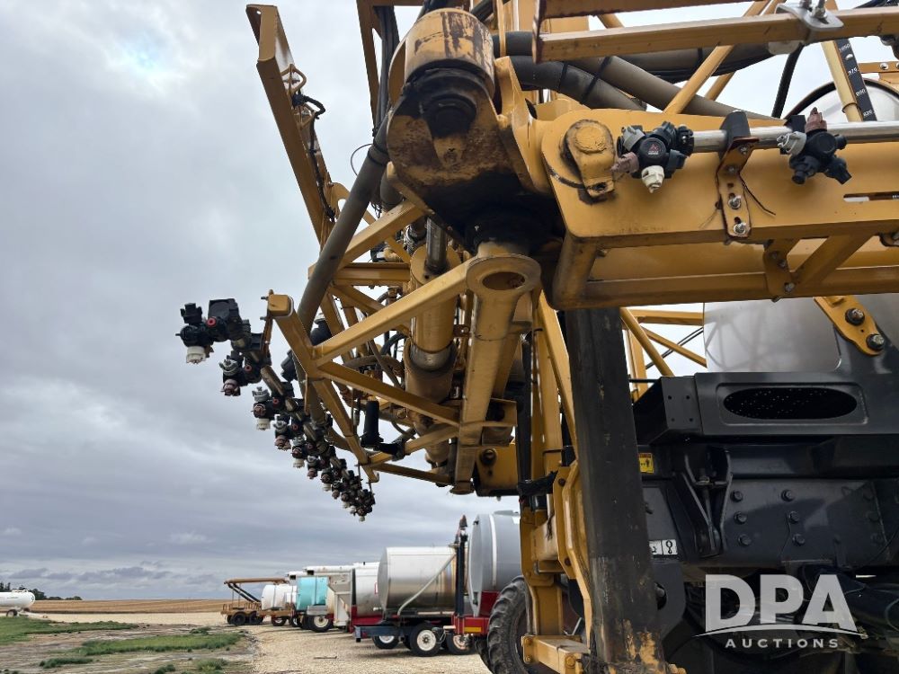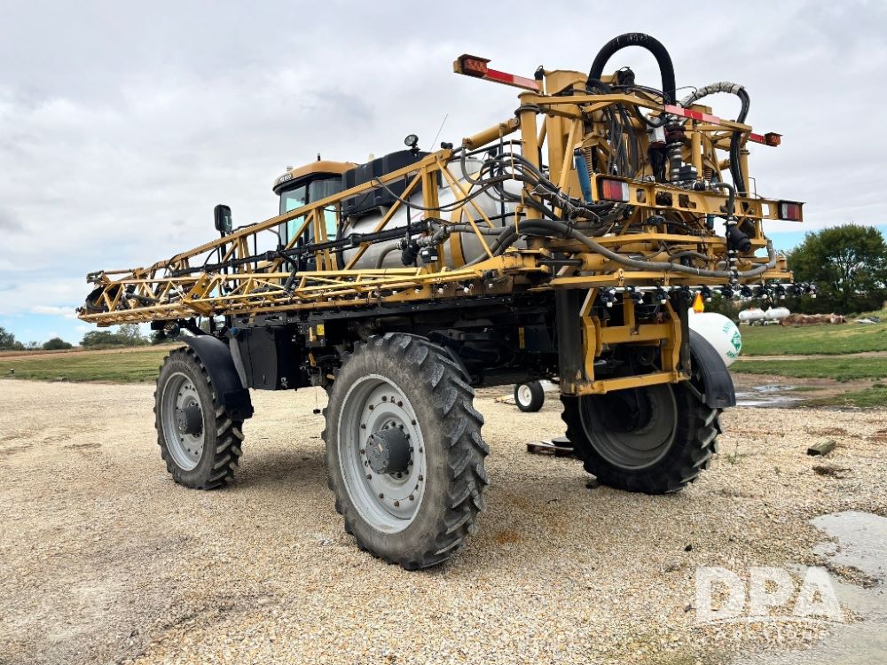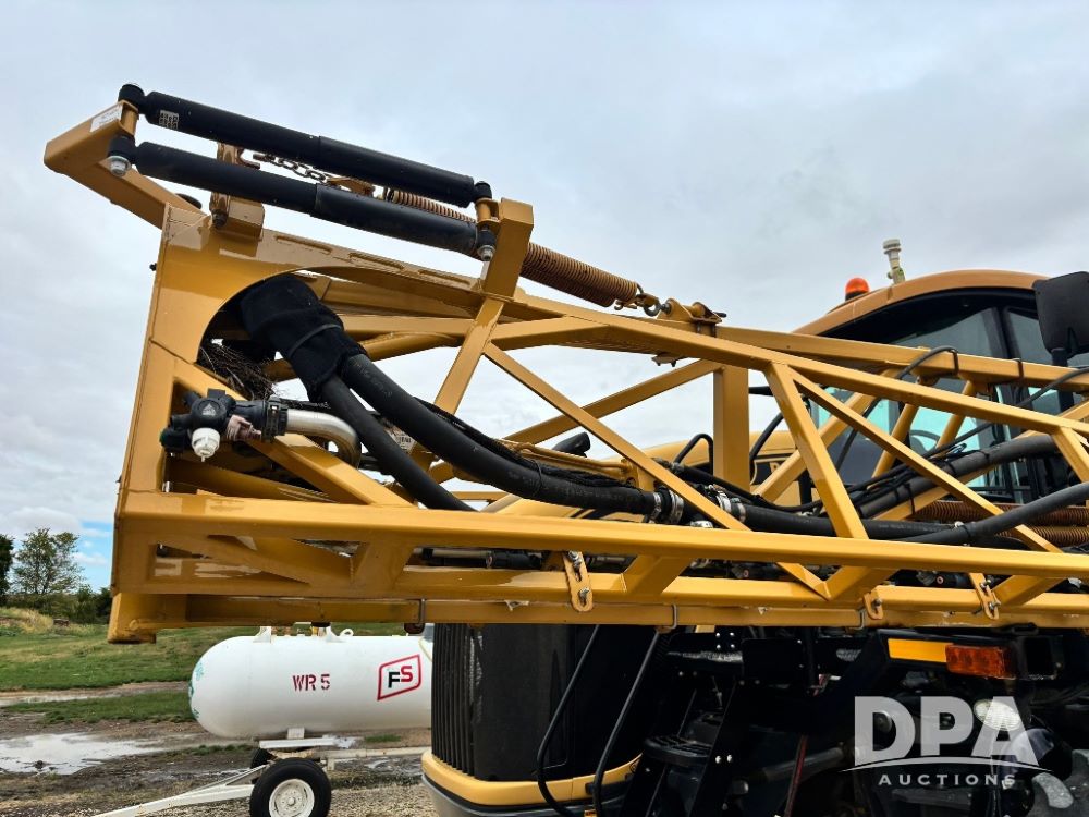 2012 RoGator 1100 Sprayer (GP11640, Unit 44-040), AGCO diesel engine, hydrostatic transmission, air conditioning, heat, Am/Fm CD radio, leather seat, buddy seat, beacon light, 1100 gallon stainless steel liquid system, 120' boom, top poly rinse tank, front fill, Firestone VF380/90R46 tires, fenders, Voyager cab camera, Raven Viper 4 monitor, shows 3,391 hours.
