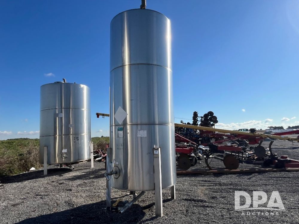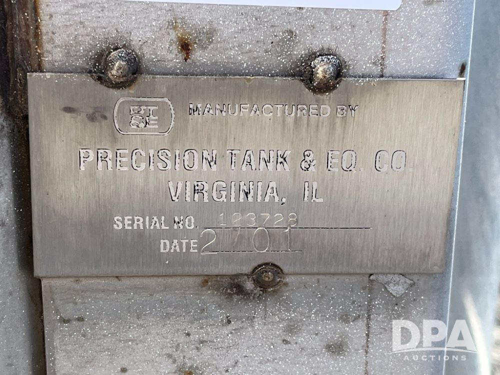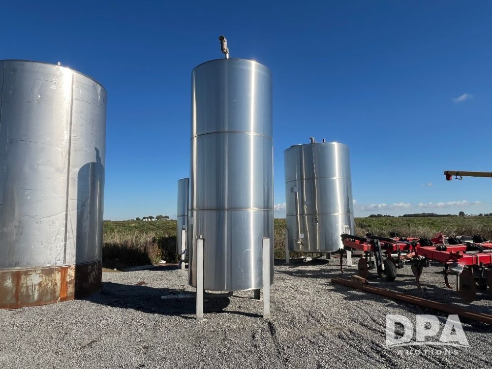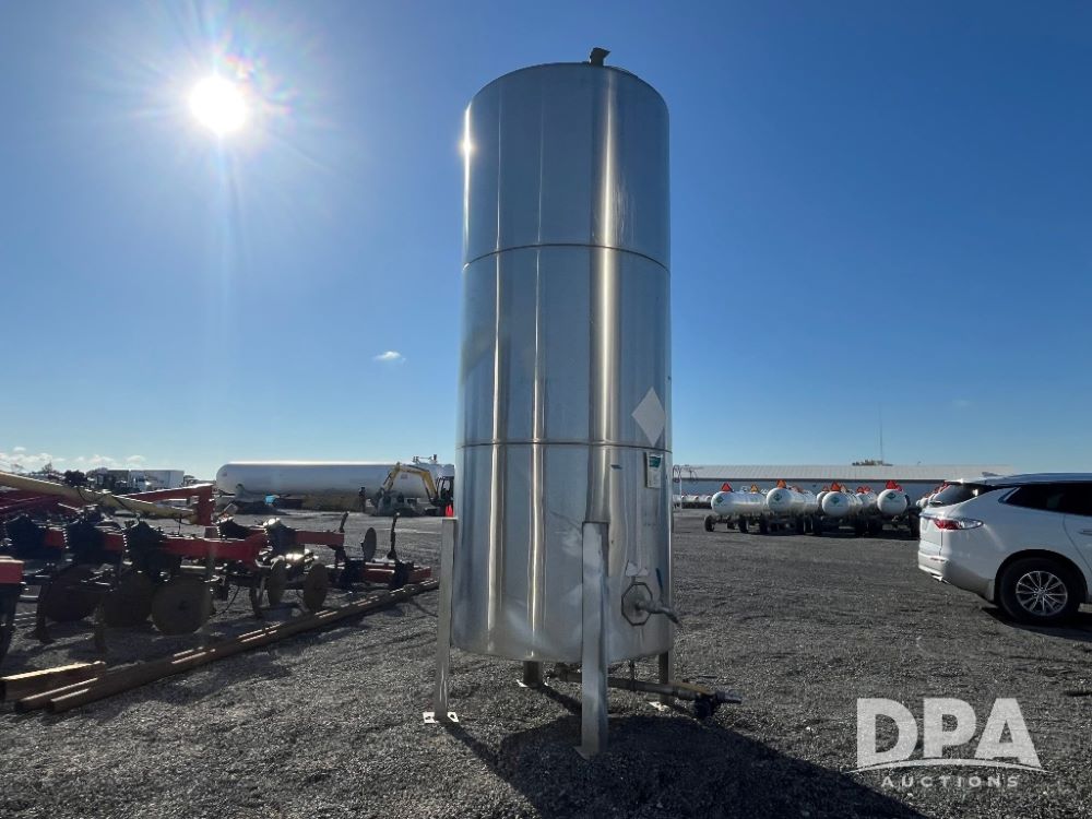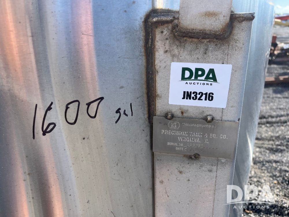 2001 Precision Stainless Steel Liquid Tank (JN3216), 2001 Precision 1,600 gallon vertical stainless steel liquid tank, stainless steel stands, valve.