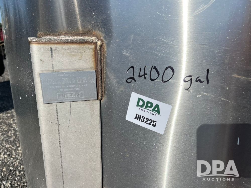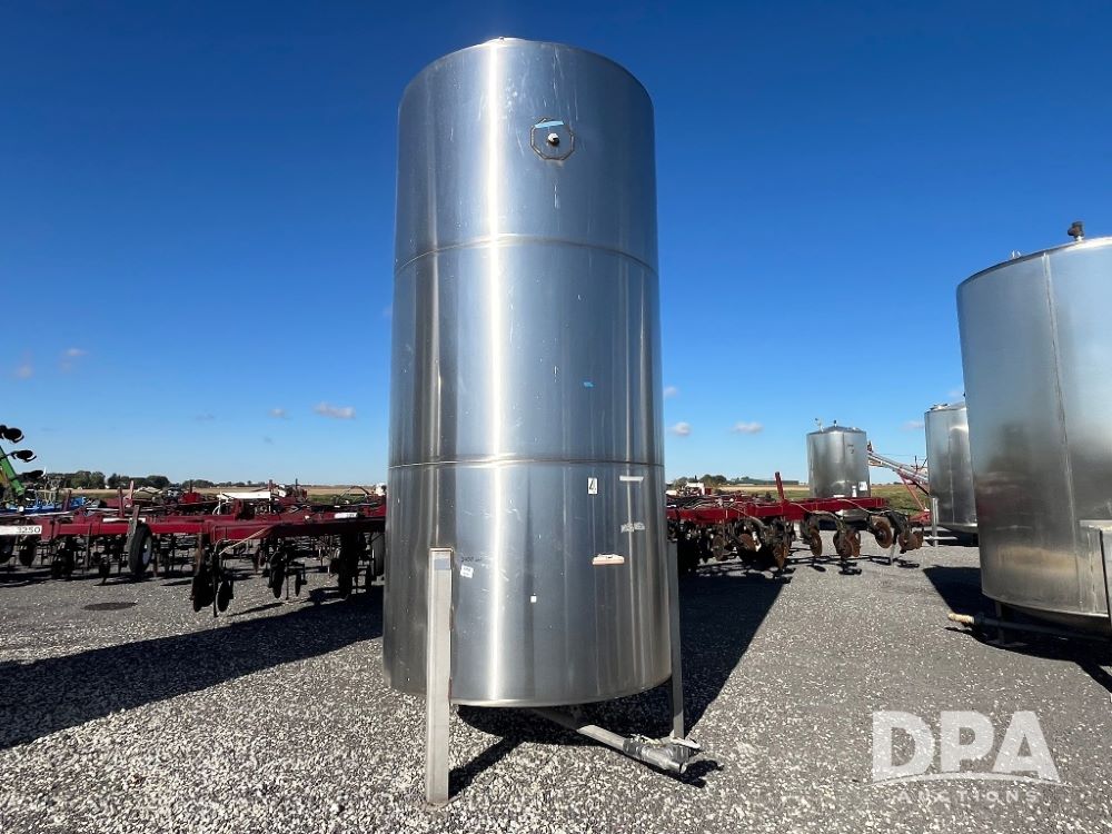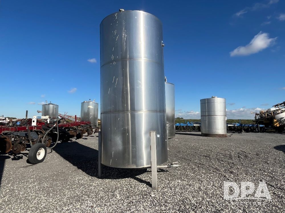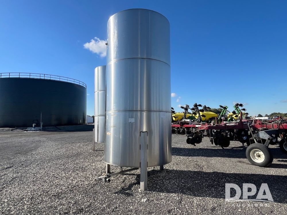 Precision Stainless Steel Liquid Tank (JN3225), Precision 2,400 gallon vertical stainless steel liquid tank, stainless steel stands, valve.