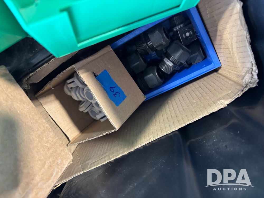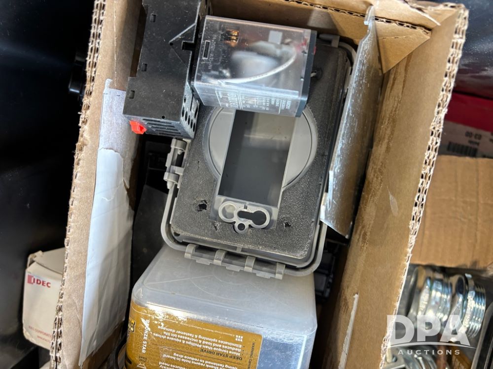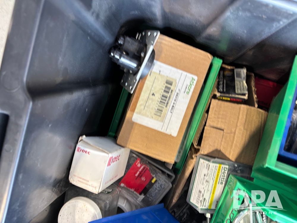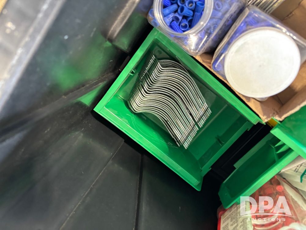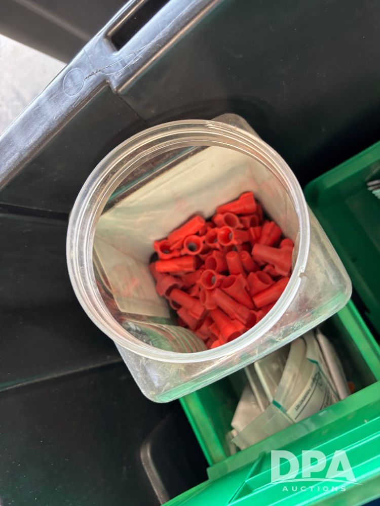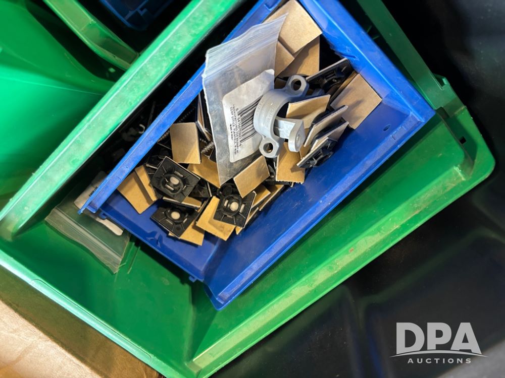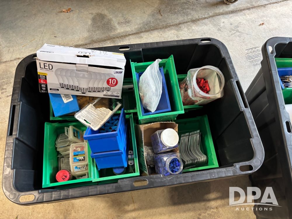 Electrical Hardware (DR12251), (2) totes of assorted electrical hardware, wire nuts, conduit brackets, wire terminals, and pallet covers.