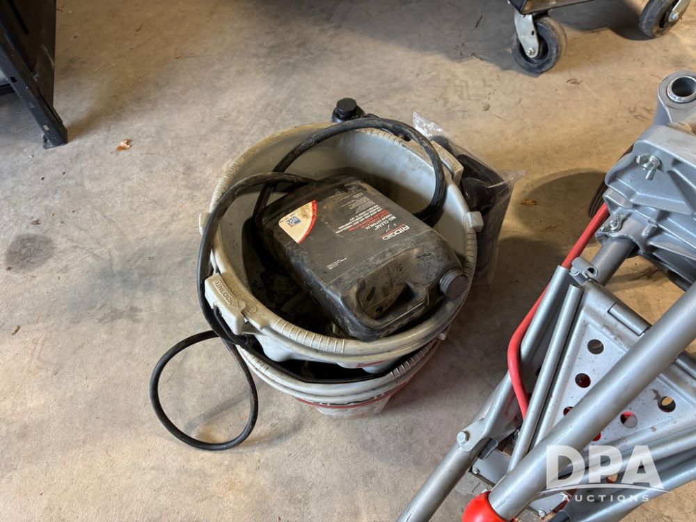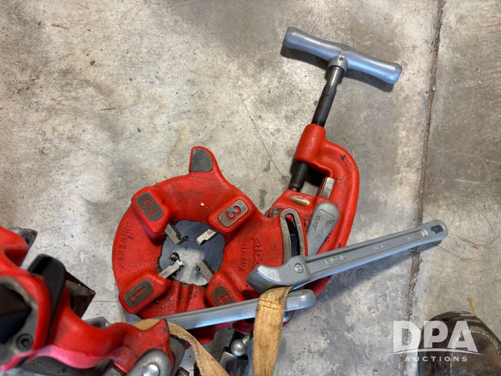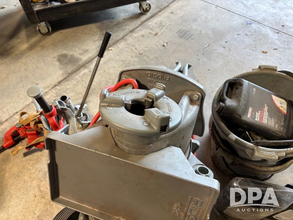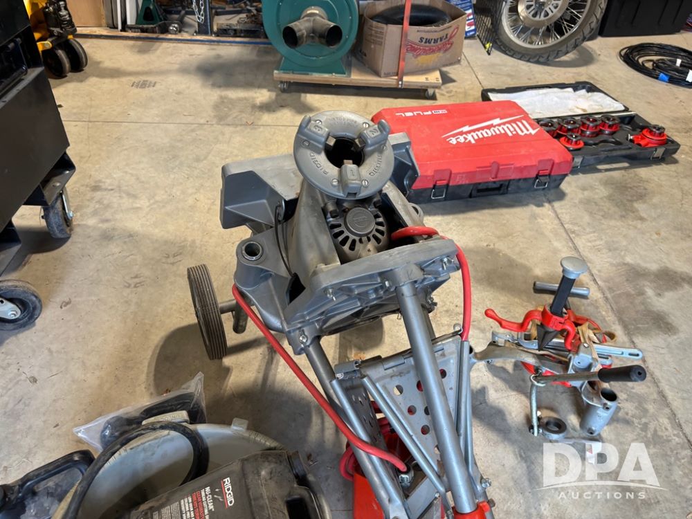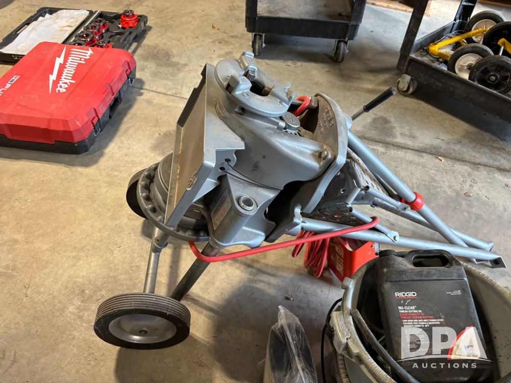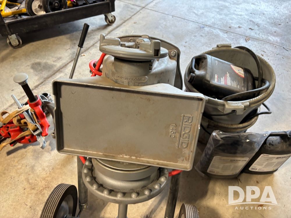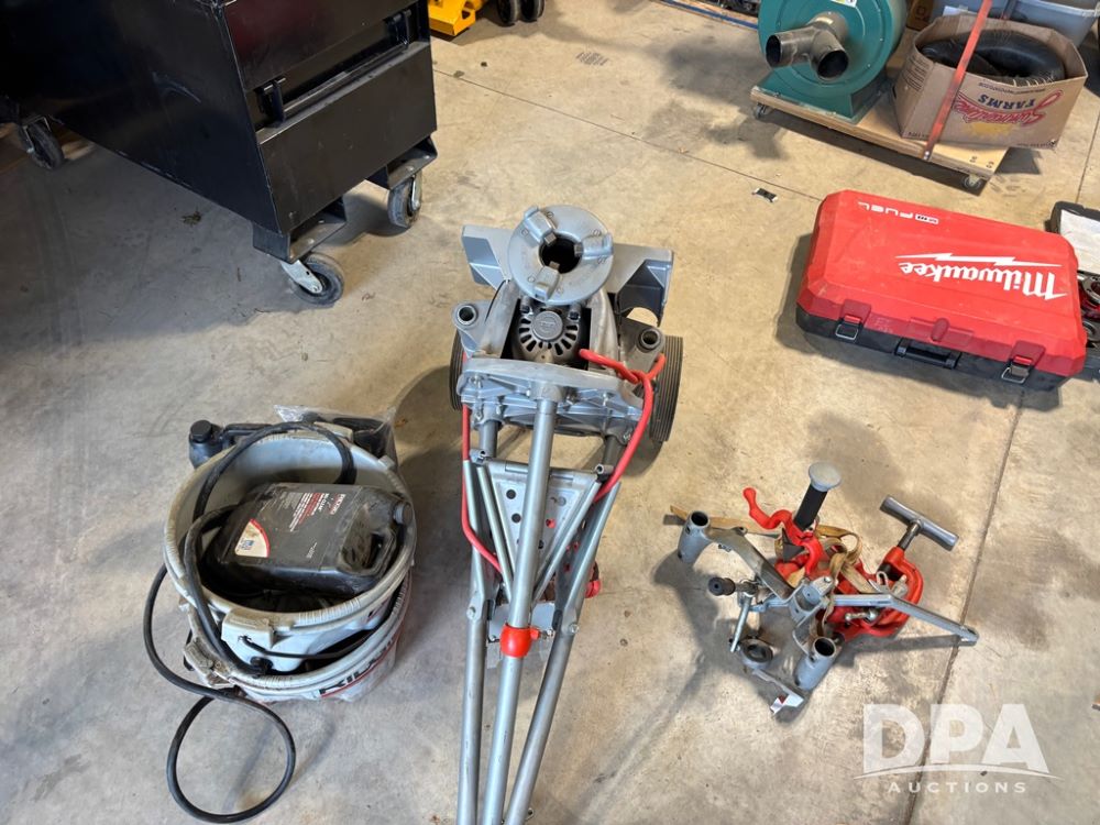 Rigid Electric Threader (DR12460), model 300 electric pipe threader, stand mounted head, pipe reamer, cutting oil.