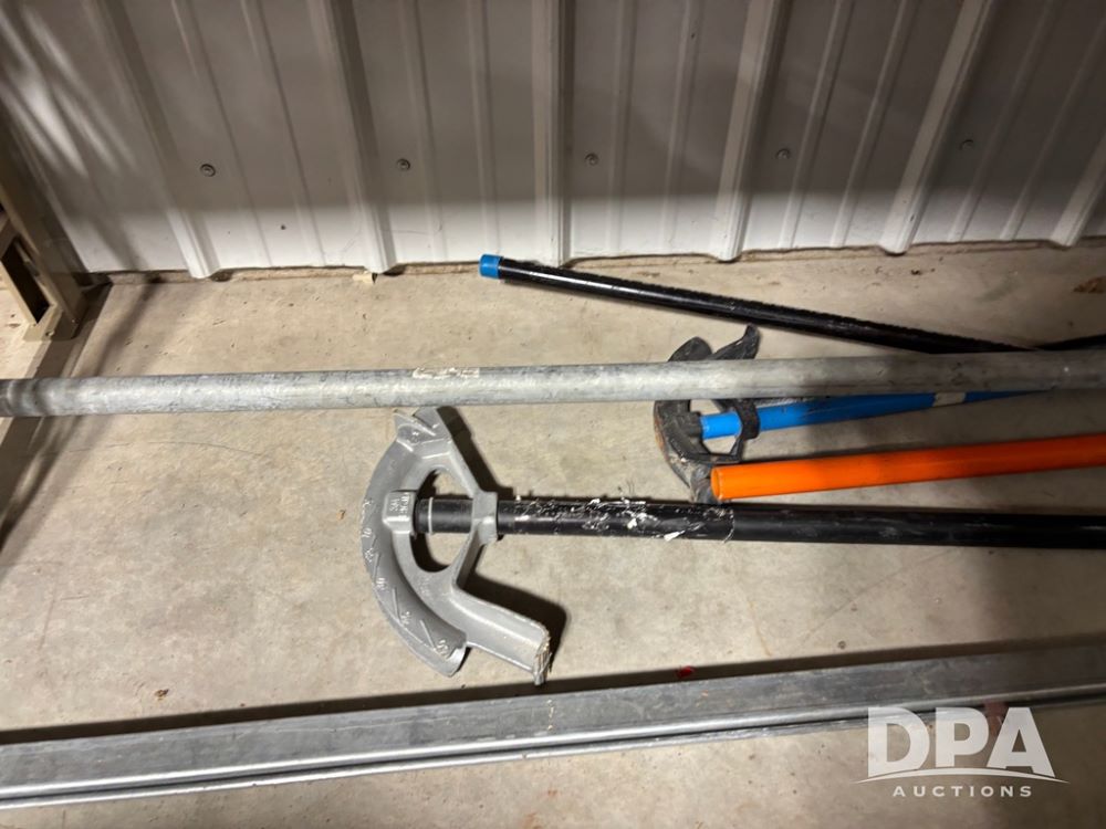 Conduit Benders (DR12473), several hand conduit benders and Rigid pipe stand.