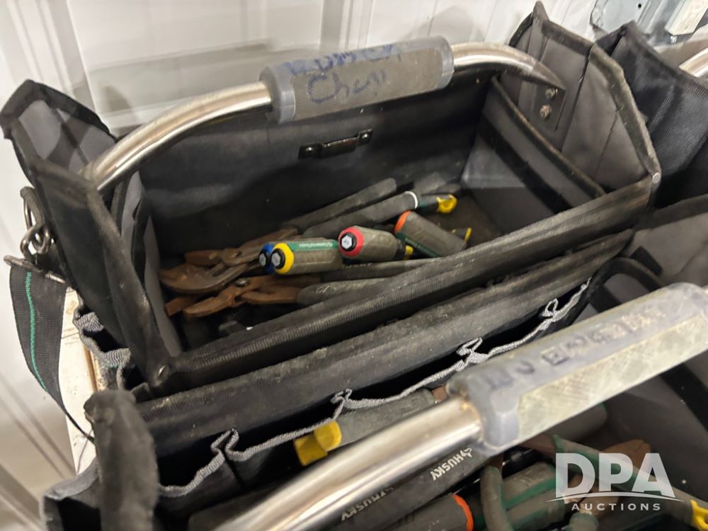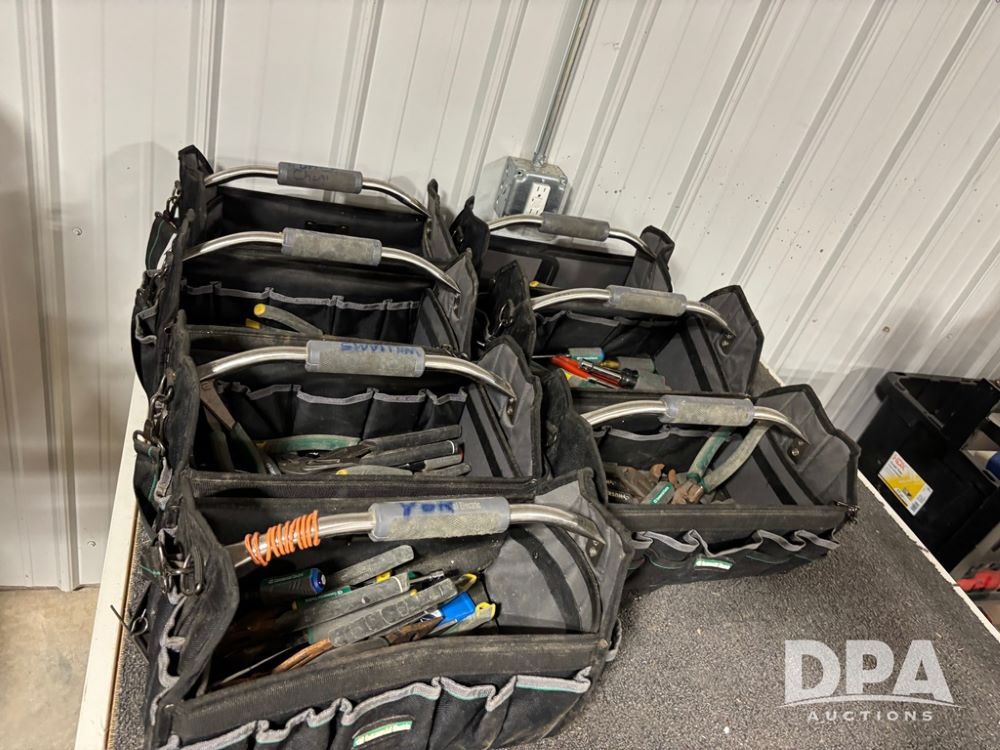 Electric Tool Bags (DR12485), (7) hand tool bags and hand tools. All sell as 1 lot.