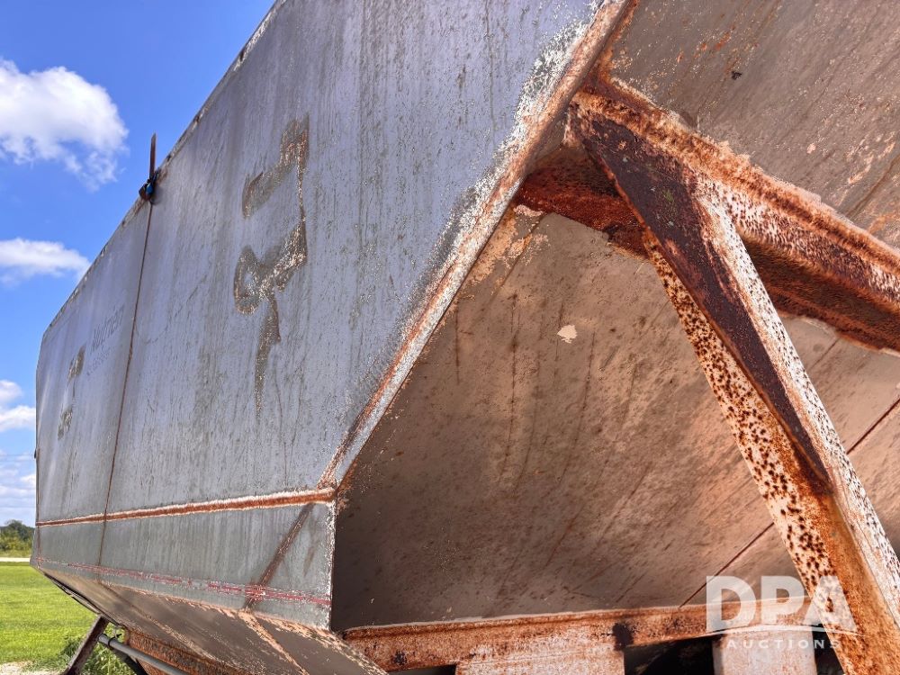 1997 Homemade Dry Tender Trailer (GP11037, Unit 303514), 1997 Homemade dry tender trailer, 16 ton stainless steel dry tender box, rear discharge auger, all hydraulic, tandem axle, 10.00-20 tires.