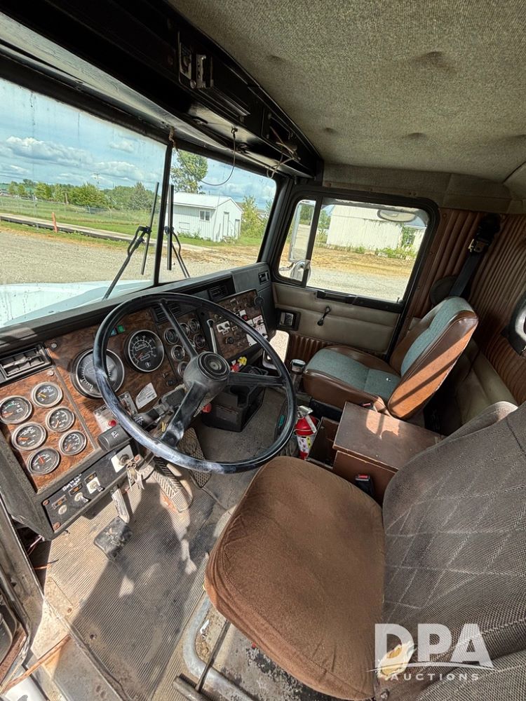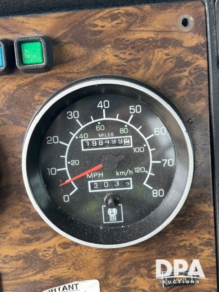 1995 Kenworth T800 Day Cab Truck (PZ13914, Unit 78072), Cat diesel engine, manual transmission, air conditioning, heat, Am/Fm radio, tandem axle, full screw, 5th wheel, shows 1,198,499 miles.
