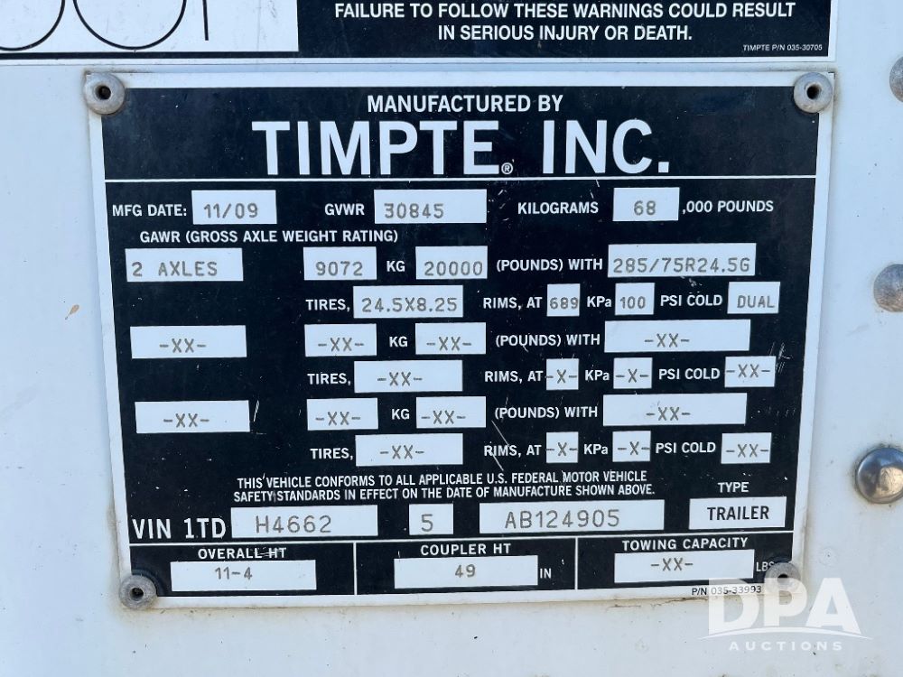 2010 Timpte Super Hopper Grain Trailer (JN3250, Unit 1150), 2010 Timpte Super Hopper aluminum grain trailer, Roll-Rite electric roll over tarp (broke), hand held control, Shurco Smart 3 electric trap openers, tandem spread axle, air ride suspension, 285/75R24.5 tires, aluminum rims.