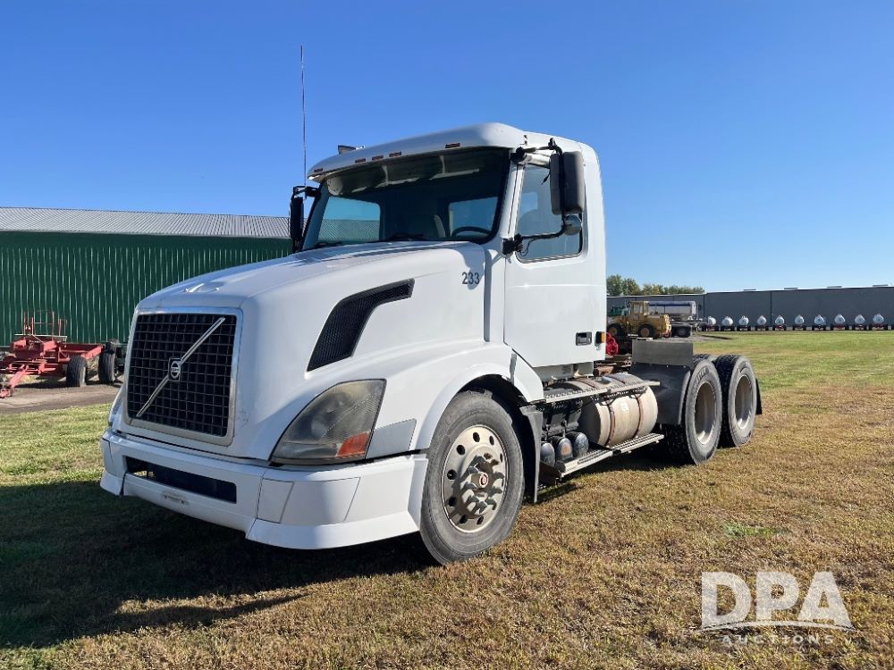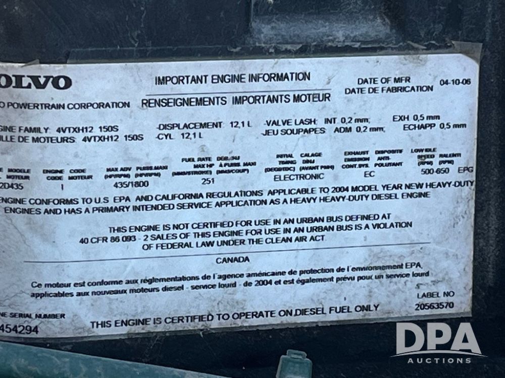2005 Volvo Day Cab Truck (JN3251, Unit 233), Volvo VED12-435 diesel engine, 10 speed transmission, air conditioning, heat, Am/Fm radio, cruise control, engine brake, tandem axle, full screw, air ride suspension, 5th wheel, 11R24.5 tires, aluminum rims, shows 713,961 miles.