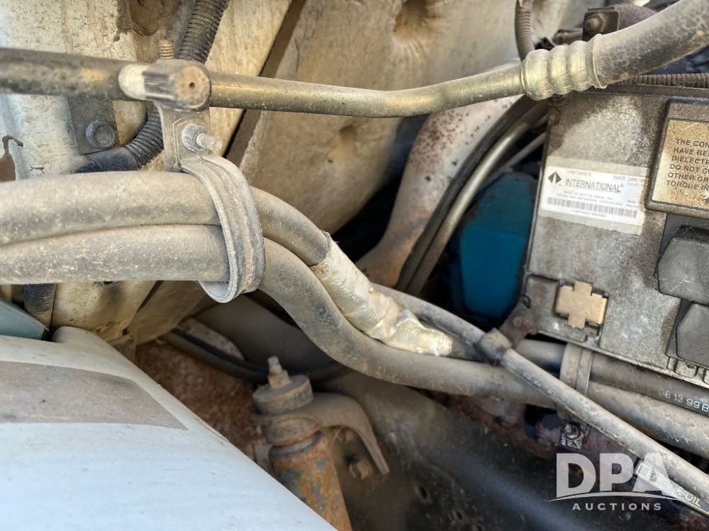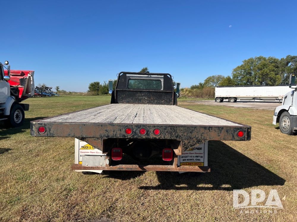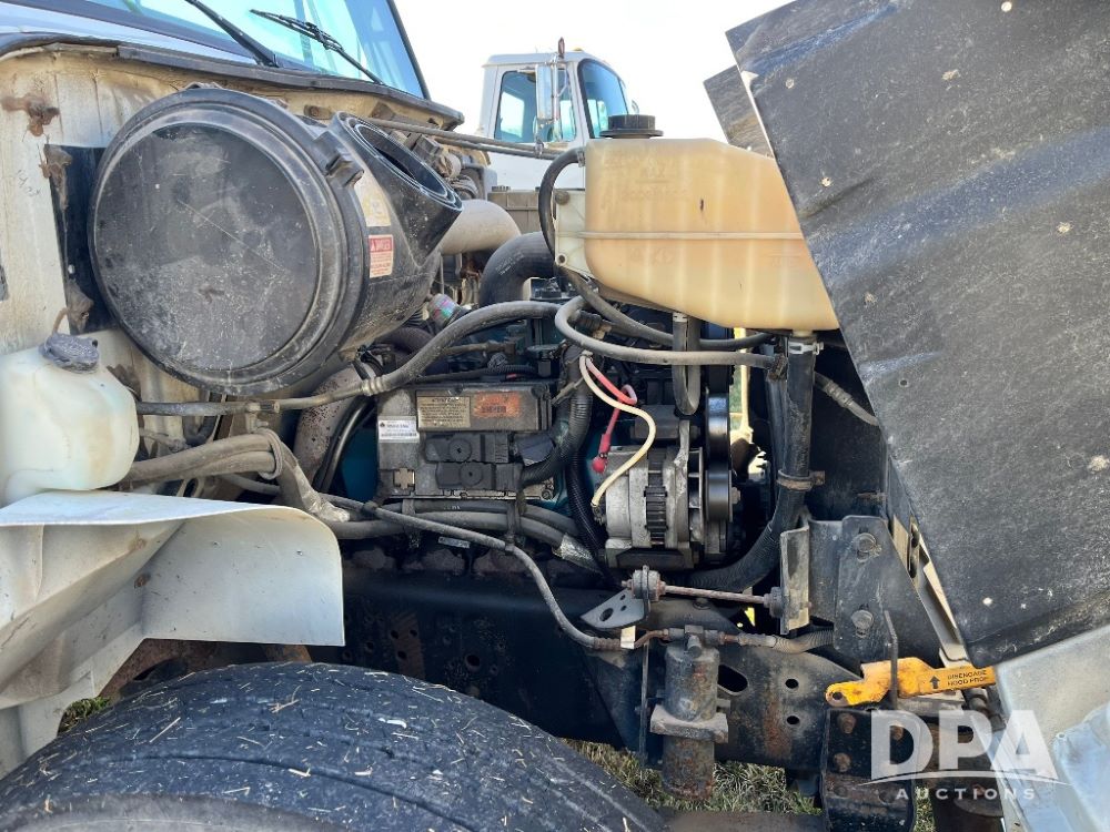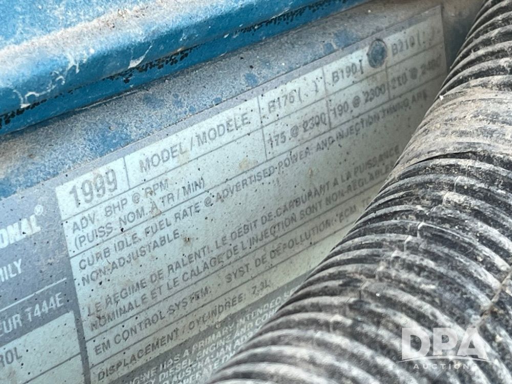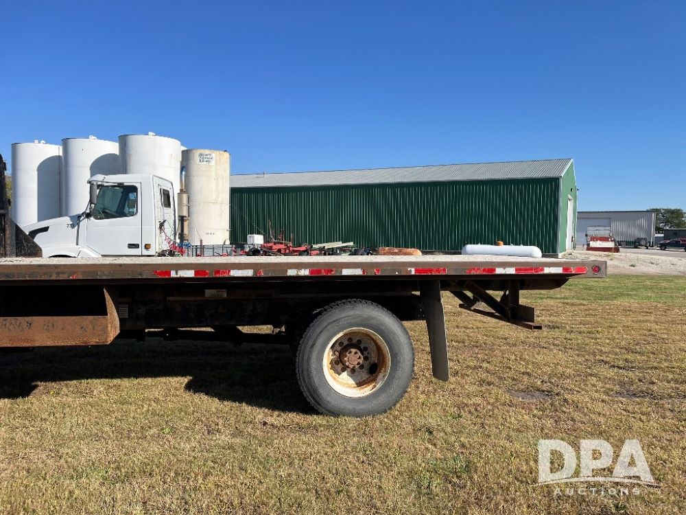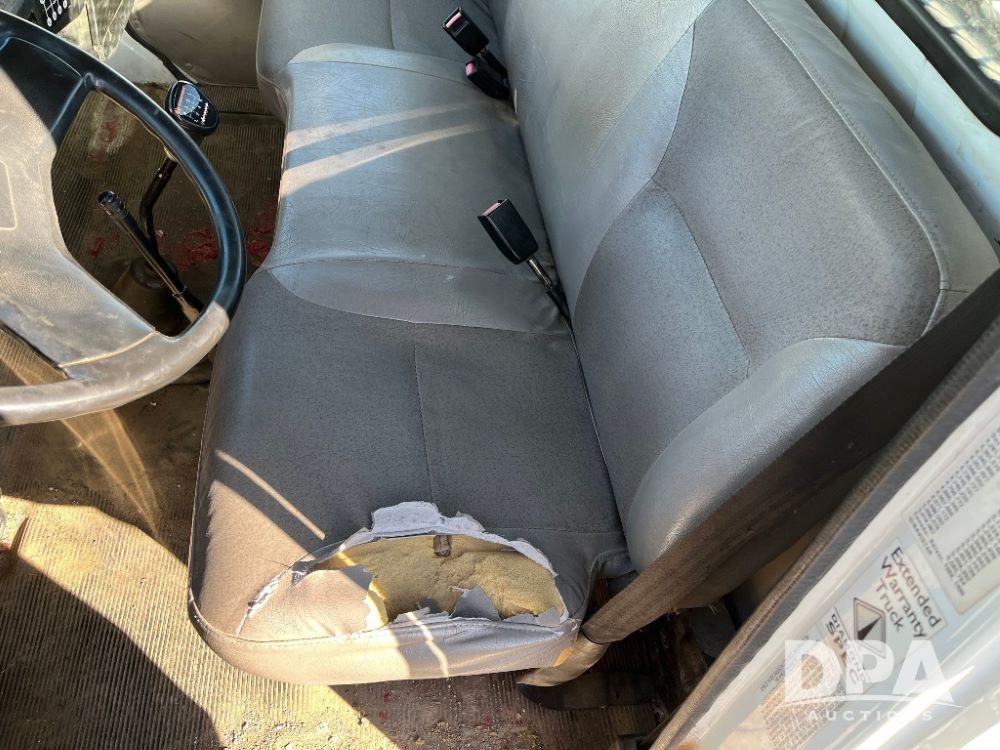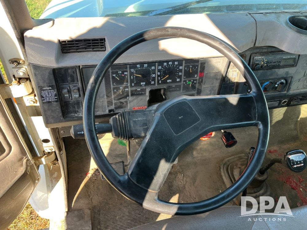 2000 IHC 4700 Flatbed Truck (JN3252, Unit 56), T444E diesel engine, 6 Plus speed transmission, air conditioning, heat, Am/Fm radio, cruise control, single axle, spring suspension, Steel flatbed, wood deck, headache rack, 11R22.5 tires.
