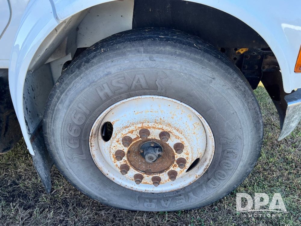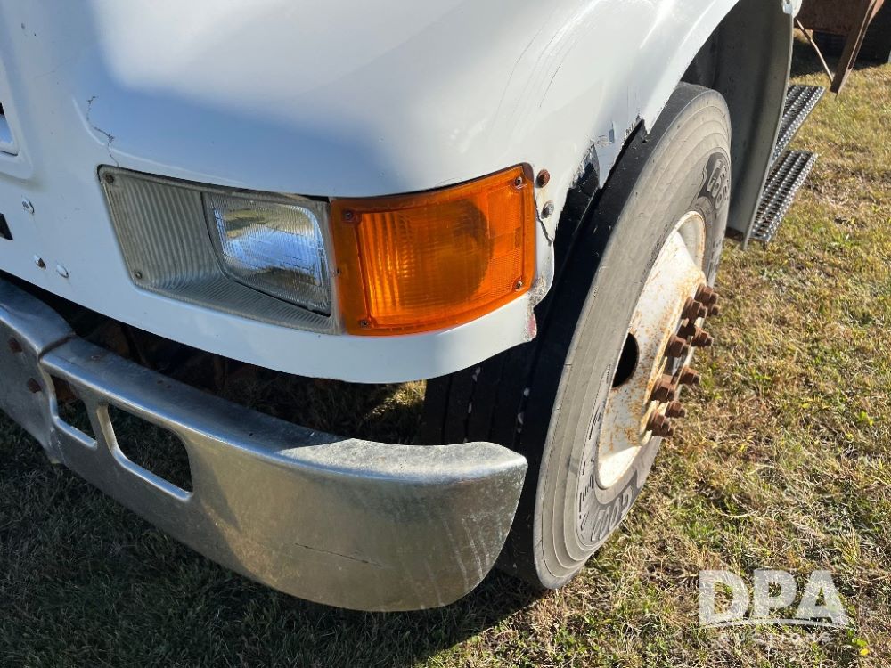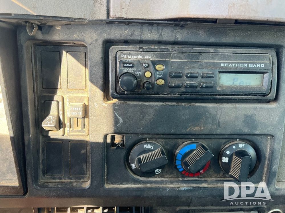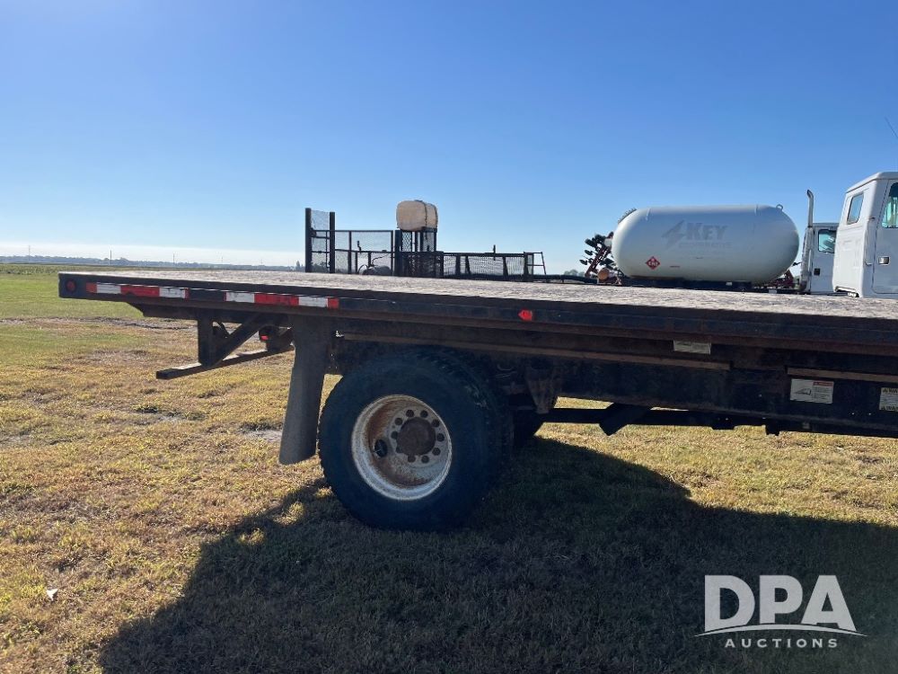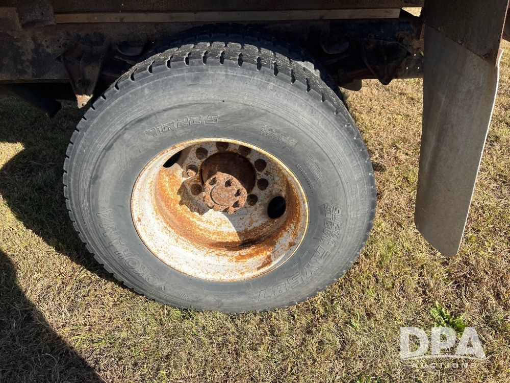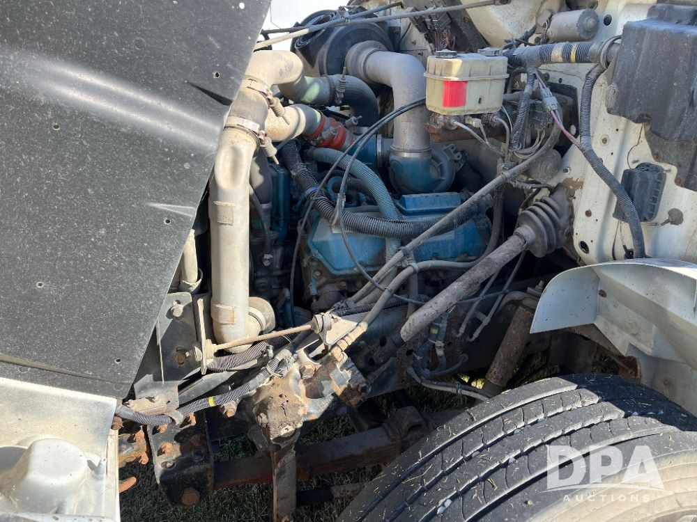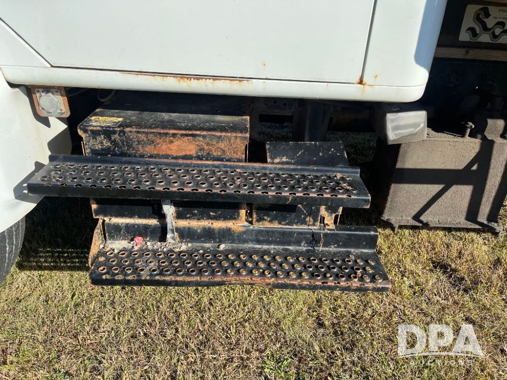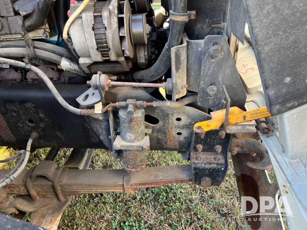 2000 IHC 4700 Flatbed Truck (JN3252, Unit 56), T444E diesel engine, 6 Plus speed transmission, air conditioning, heat, Am/Fm radio, cruise control, single axle, spring suspension, Steel flatbed, wood deck, headache rack, 11R22.5 tires.