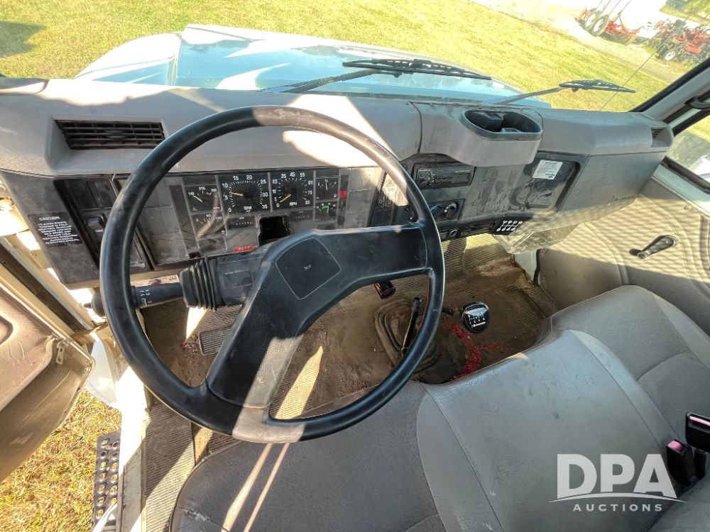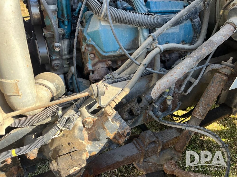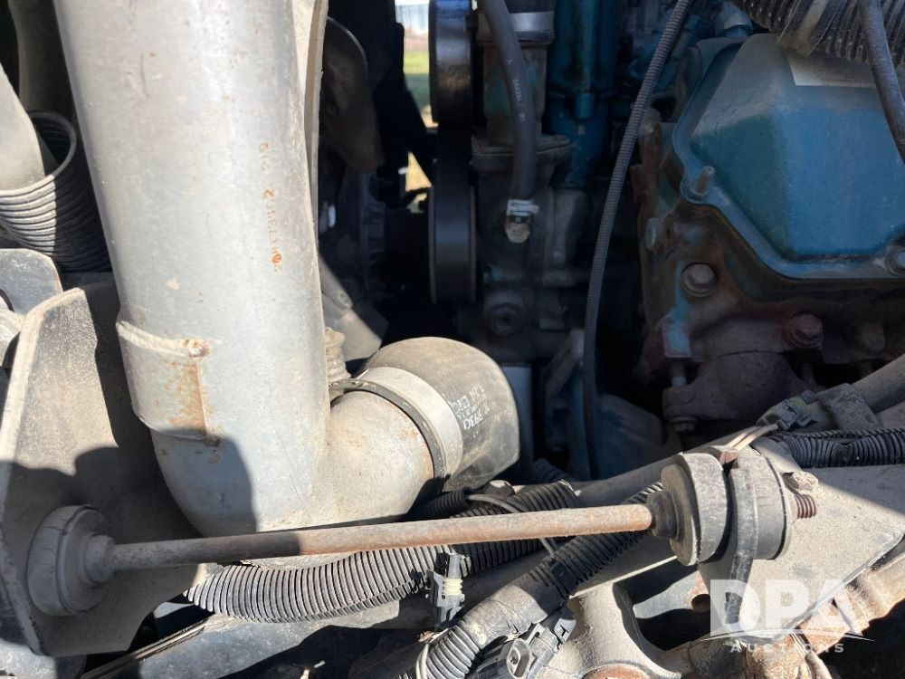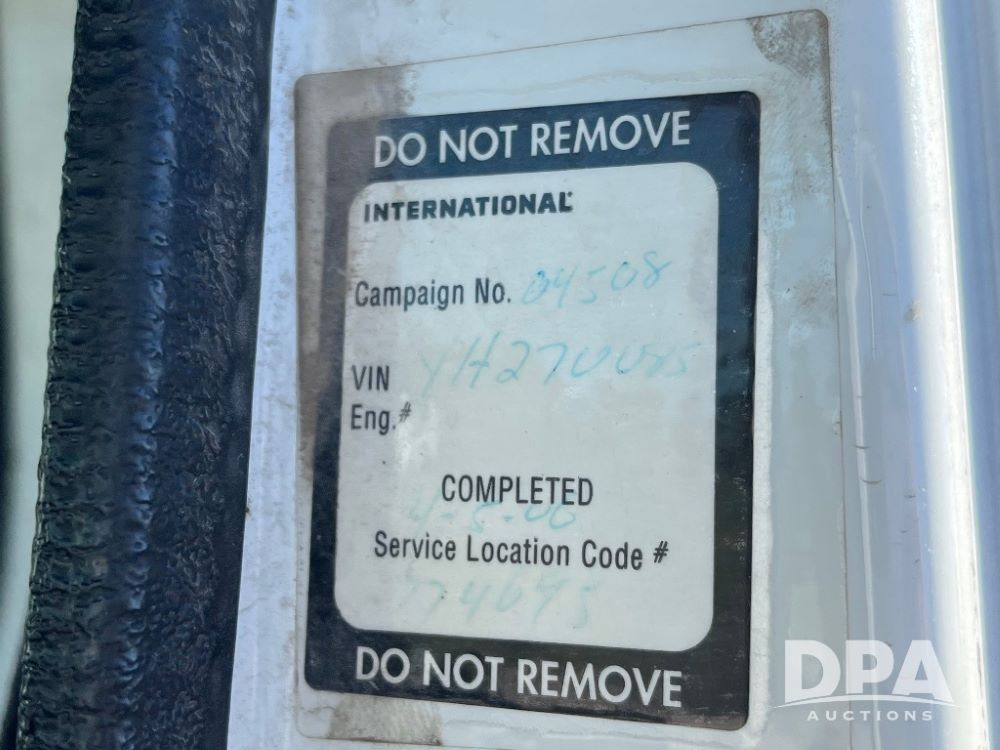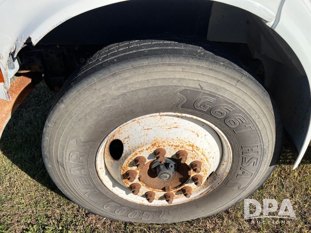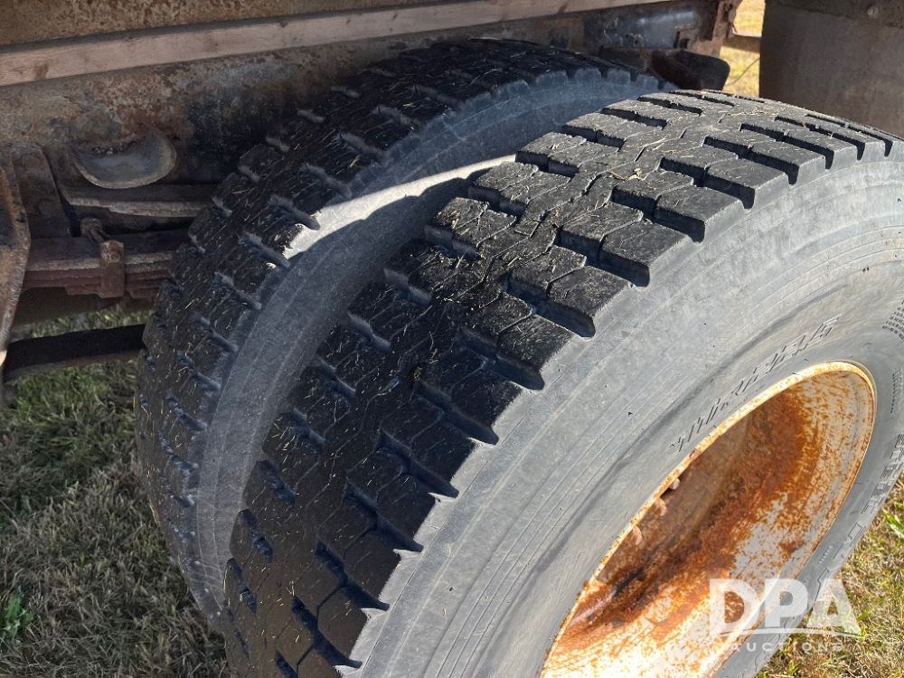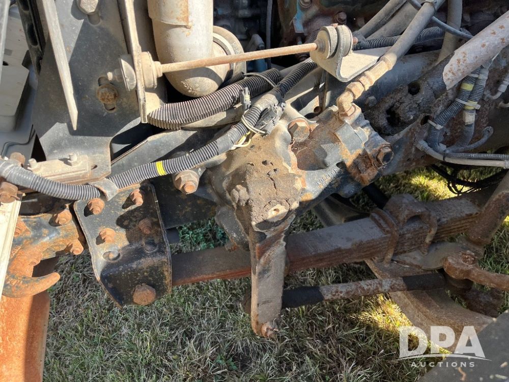 2000 IHC 4700 Flatbed Truck (JN3252, Unit 56), T444E diesel engine, 6 Plus speed transmission, air conditioning, heat, Am/Fm radio, cruise control, single axle, spring suspension, Steel flatbed, wood deck, headache rack, 11R22.5 tires.