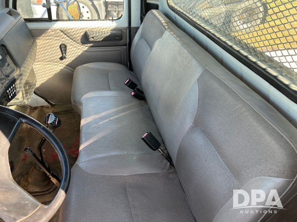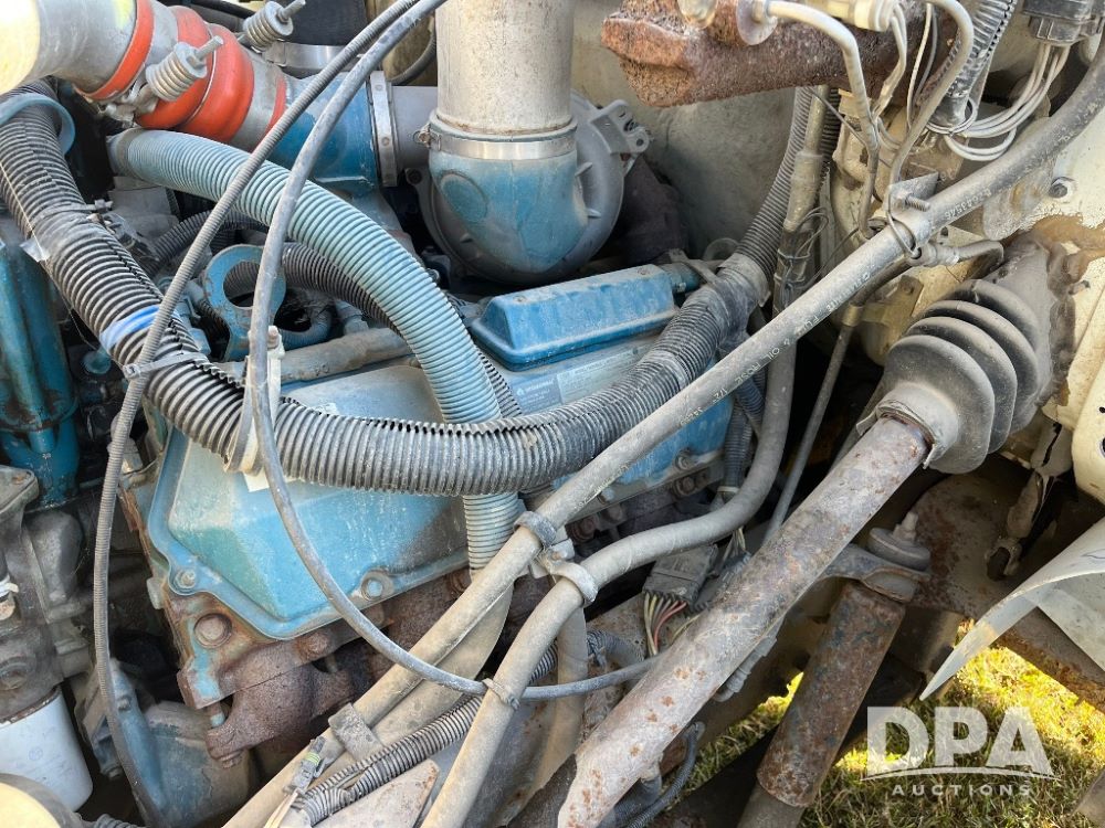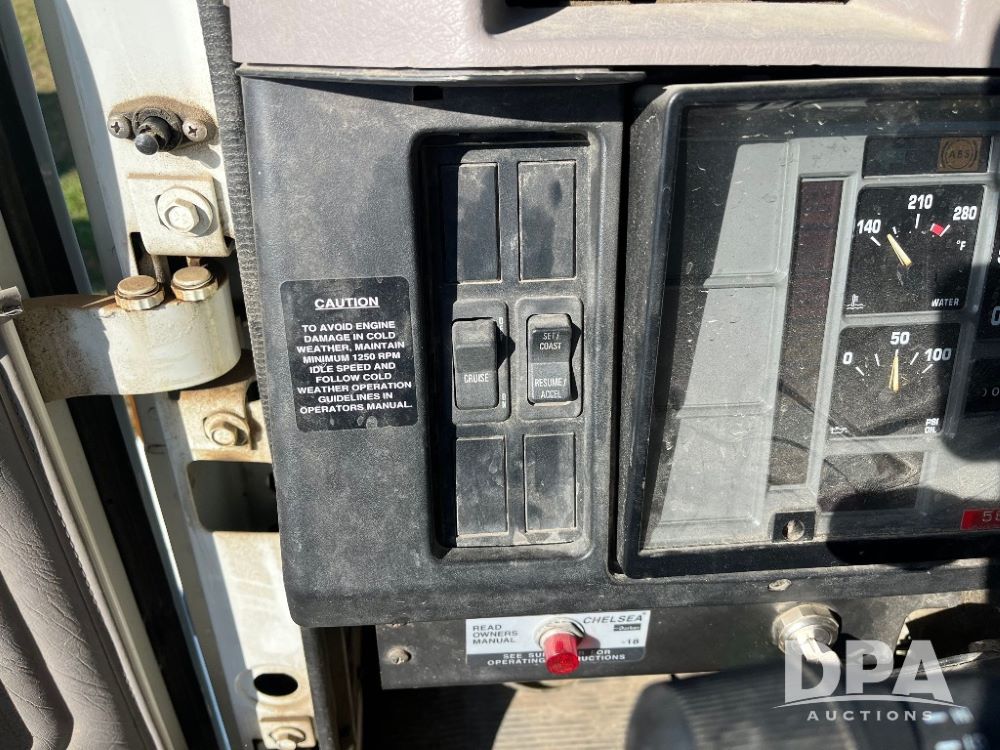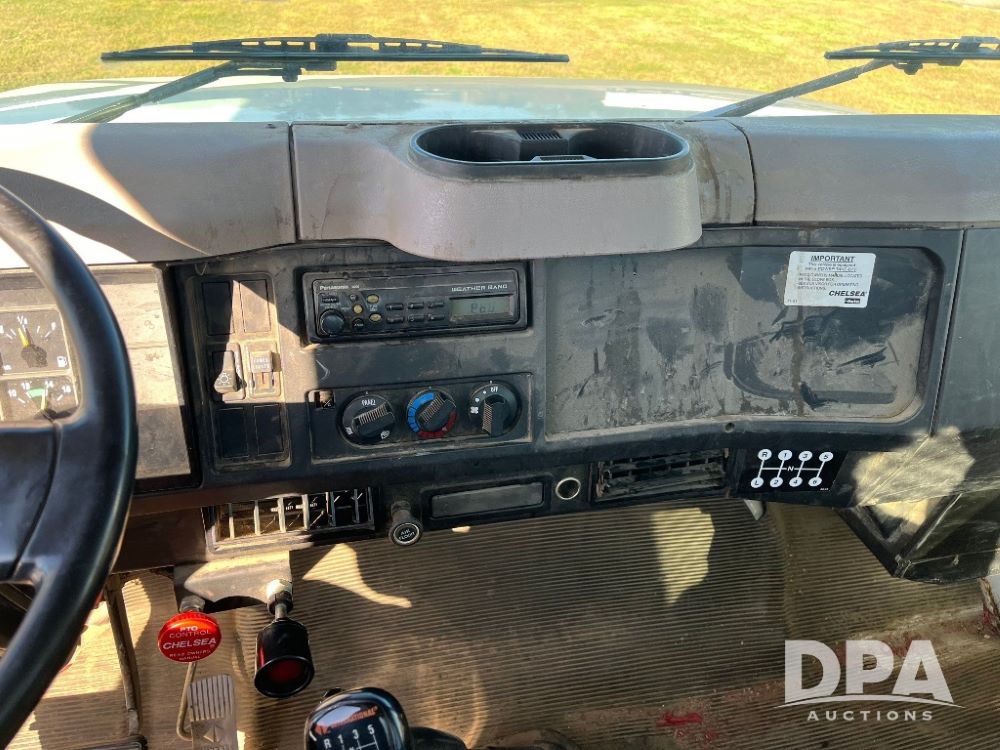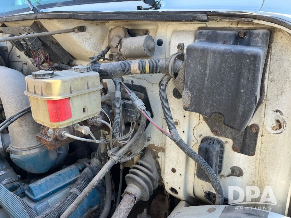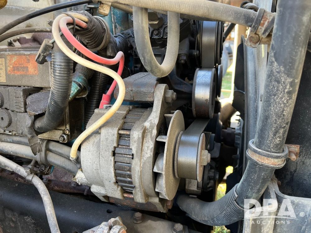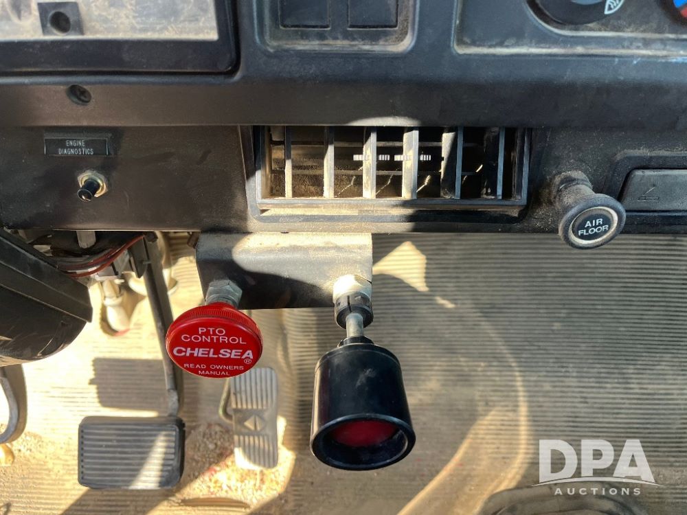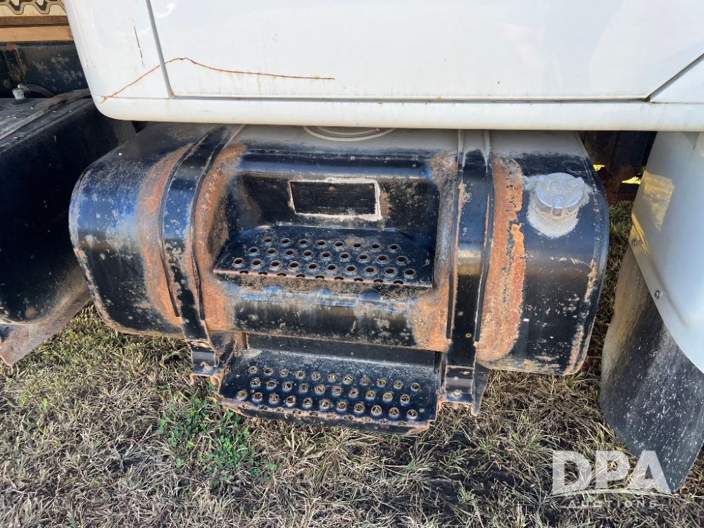 2000 IHC 4700 Flatbed Truck (JN3252, Unit 56), T444E diesel engine, 6 Plus speed transmission, air conditioning, heat, Am/Fm radio, cruise control, single axle, spring suspension, Steel flatbed, wood deck, headache rack, 11R22.5 tires.