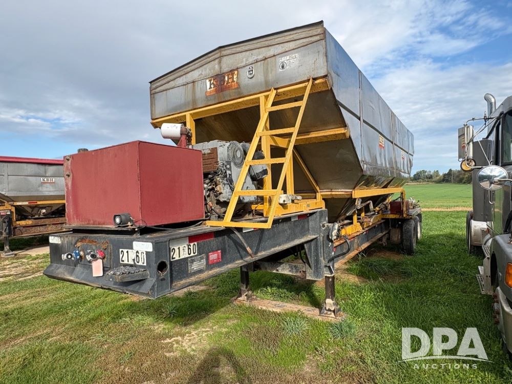 2006 KBH Dry Trailer (DR12529 Unit 21860), stainless steel hydraulic dry tender trailer, self contained hydraulics w/diesel engine, has NO PUMP, rear discharge auger, tandem axle, spring suspension, 255/70R22.5 tires.