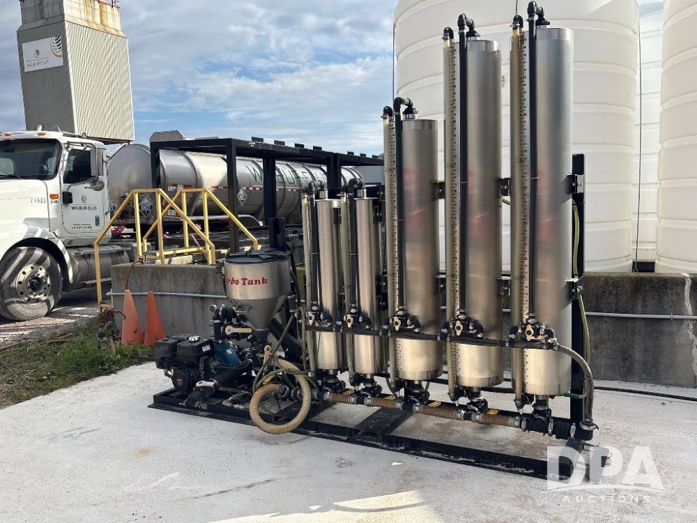 Stainless Steel Mix System (DR12530), stainless steel mix system on skid, stainless steel inductor, gas engine, liquid pump, (5) stainless steel micro tanks.