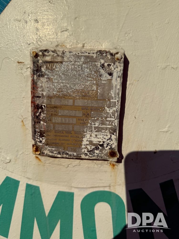 1966 Trinity Nh3 Storage Tank (DR12533), 18,000 gallon Nh3 storage tank, good data tag, sits on concrete saddles, pump and compressor. This tank is empty and bled.