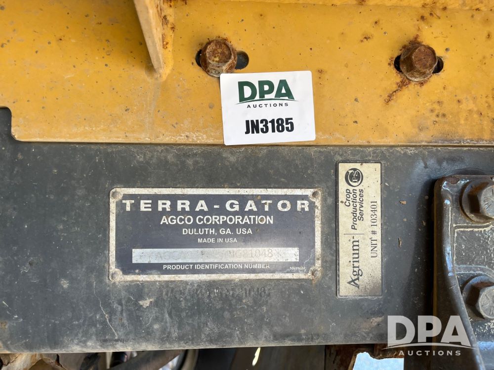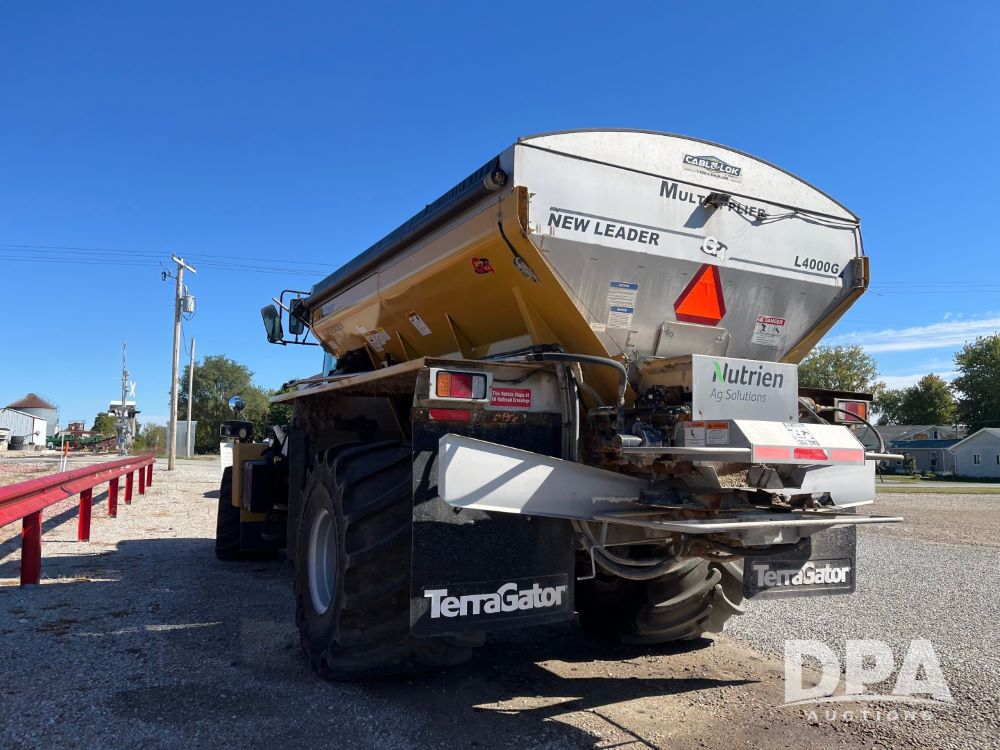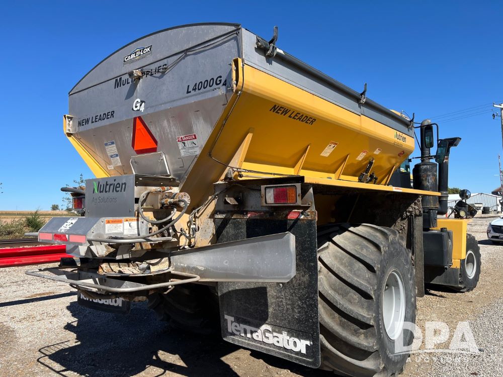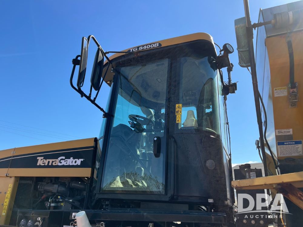 2016 Terra Gator 8400B Dry Floater (JN3185, Unit 103401), AGCO diesel engine, CVT transmission, air conditioning, heat, Am/Fm CD radio, leather seat, buddy seat, beacon light, New Leader L4000 G4 - 14' dry spreader box (S/N 459143), twin spinner, all hydraulic, electric roll over tarp, New Leader 7' stainless steel insert (S/N 459144), Good Year 48x31.00R20 front tires, Good Year Optitorque VF1000/50R25 rear tires, Cab camera, lightbar, Raven Viper 4 monitor.