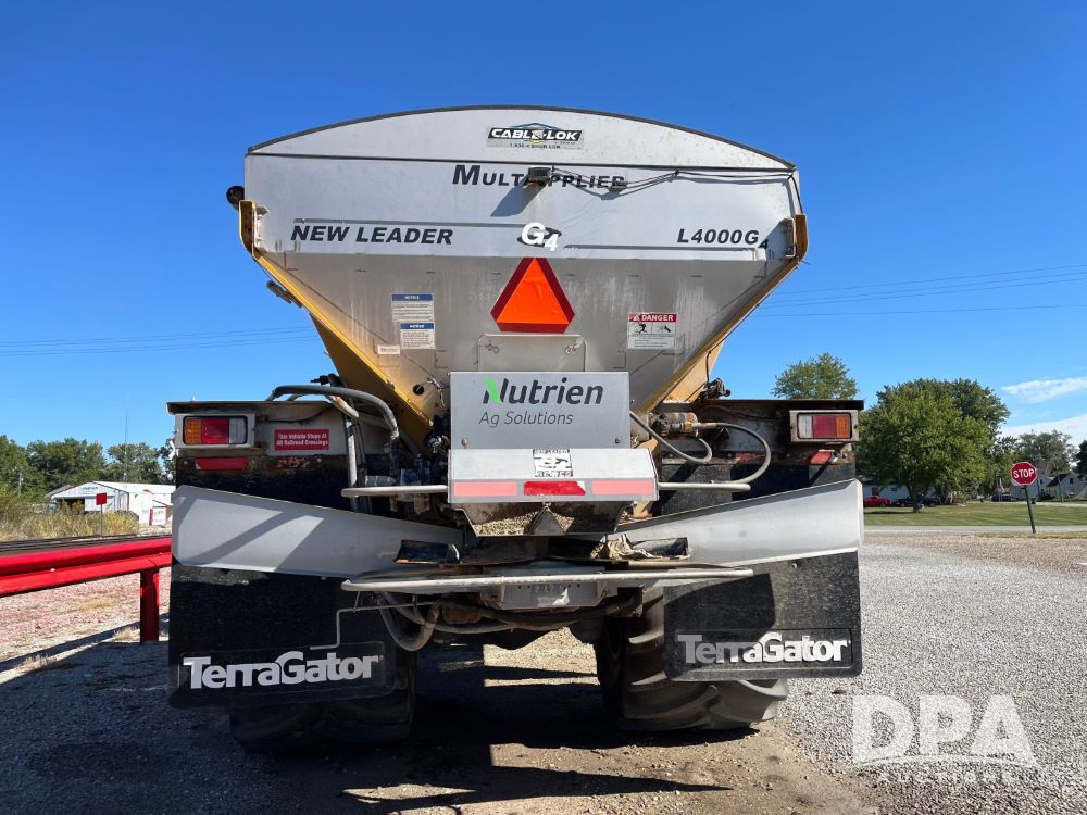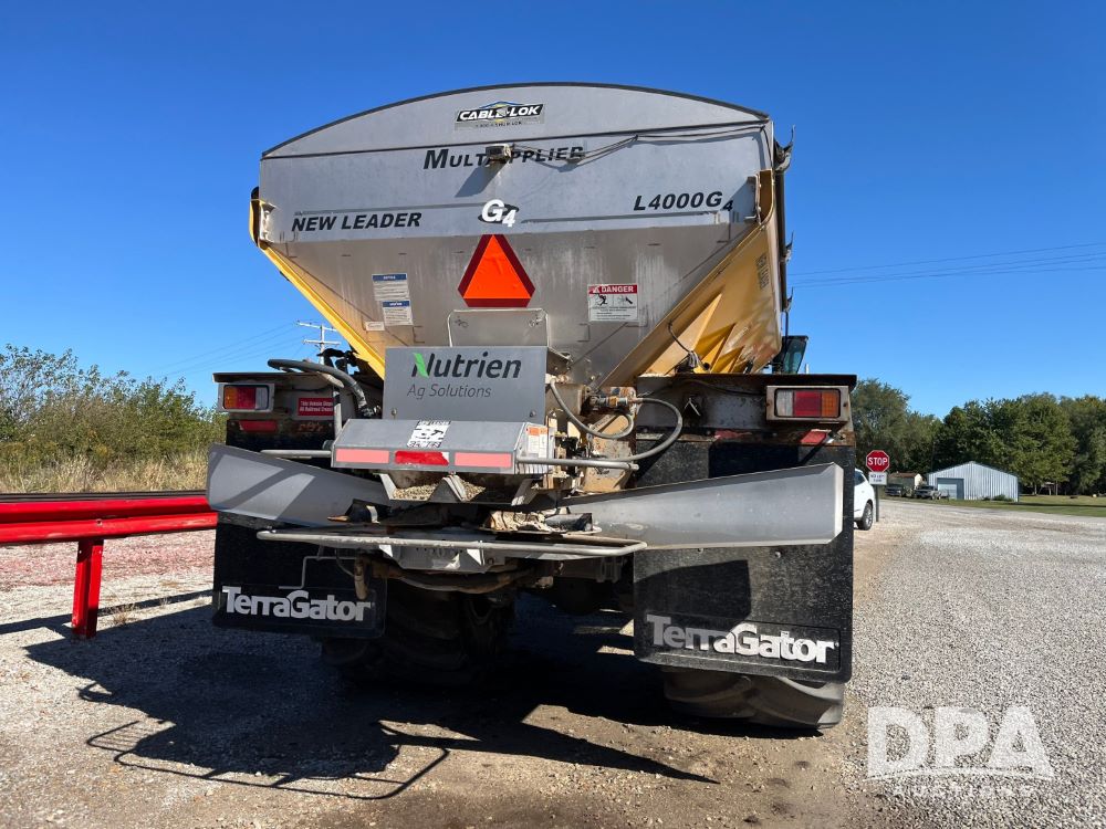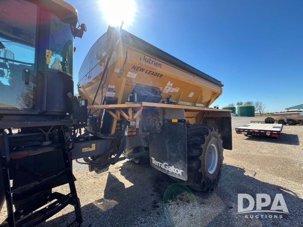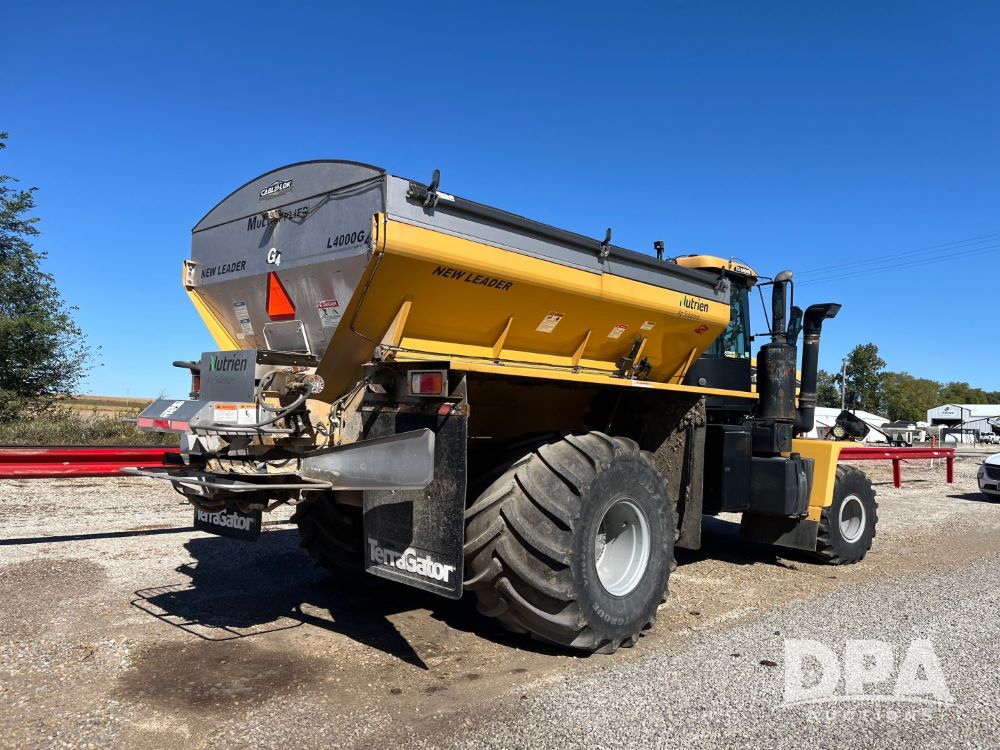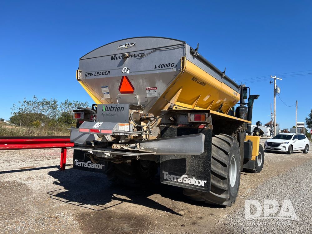 2016 Terra Gator 8400B Dry Floater (JN3185, Unit 103401), AGCO diesel engine, CVT transmission, air conditioning, heat, Am/Fm CD radio, leather seat, buddy seat, beacon light, New Leader L4000 G4 - 14' dry spreader box (S/N 459143), twin spinner, all hydraulic, electric roll over tarp, New Leader 7' stainless steel insert (S/N 459144), Good Year 48x31.00R20 front tires, Good Year Optitorque VF1000/50R25 rear tires, Cab camera, lightbar, Raven Viper 4 monitor.