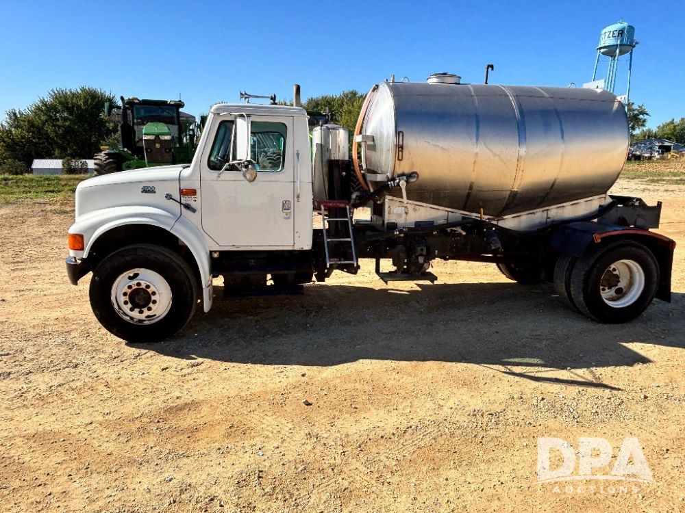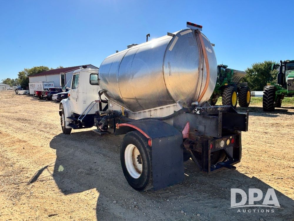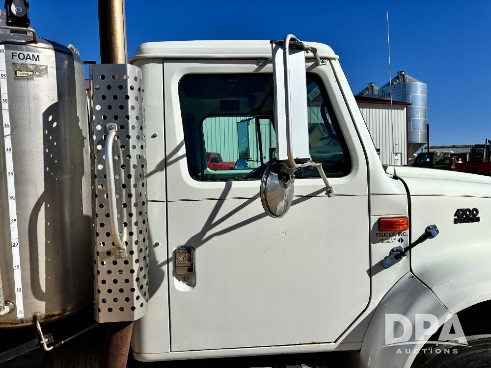 1999 IHC 4700 Liquid Nurse Truck (GP11652, Unit 126458), DT466E diesel engine, 6 speed Plus transmission, air conditioning, heat, Am/Fm radio, cruise control, single axle, spring suspension, 1700 gallon stainless steel conical liquid nurse tank, Briggs & Stratton gas engine, pump, 11R22.5 tires, shows 647,835 miles.