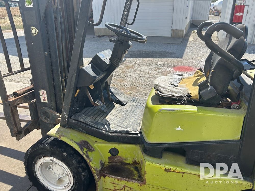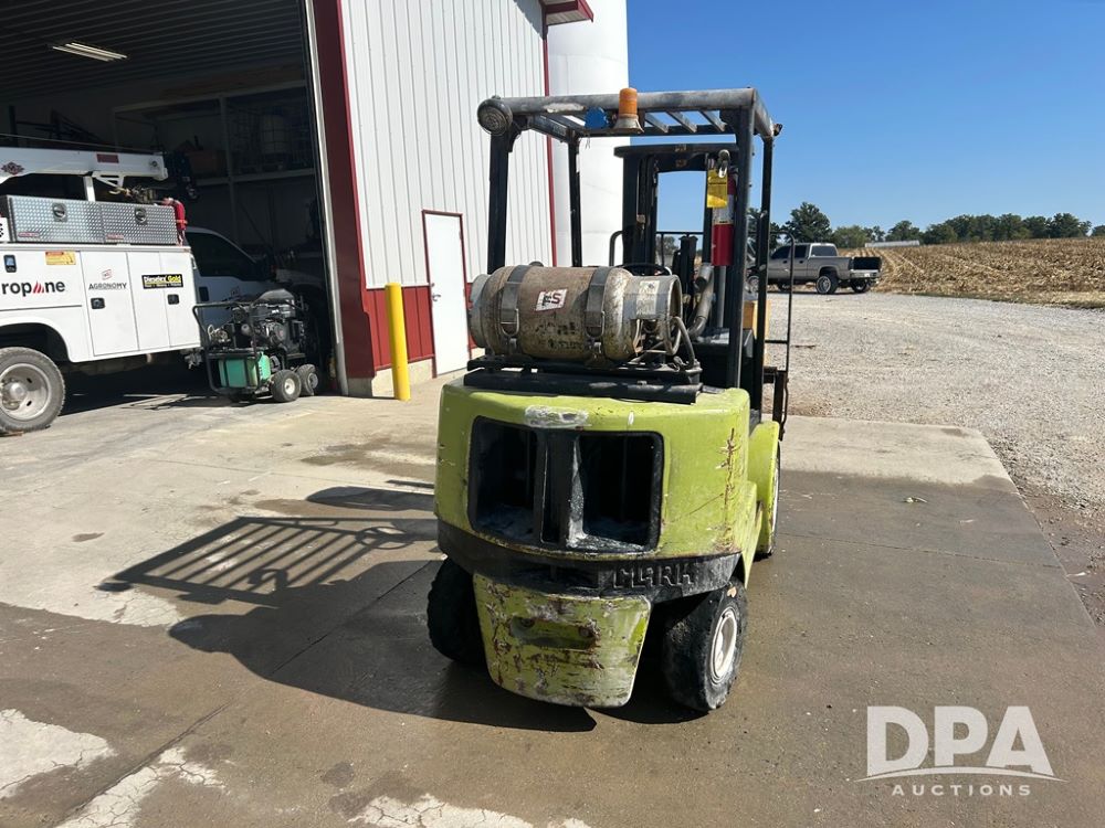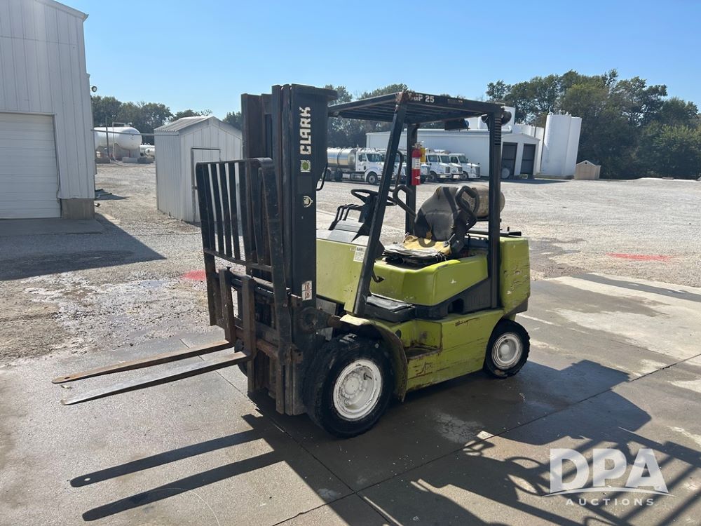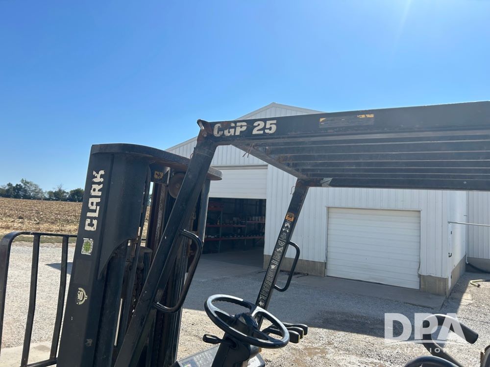 Clark CGP25 Forklift (PZ13958), Clark CGP25 forklift, LP gas engine, shuttle shift transmission, canopy, lights, beacon light, forks, side shift, shows 8,697 hours.