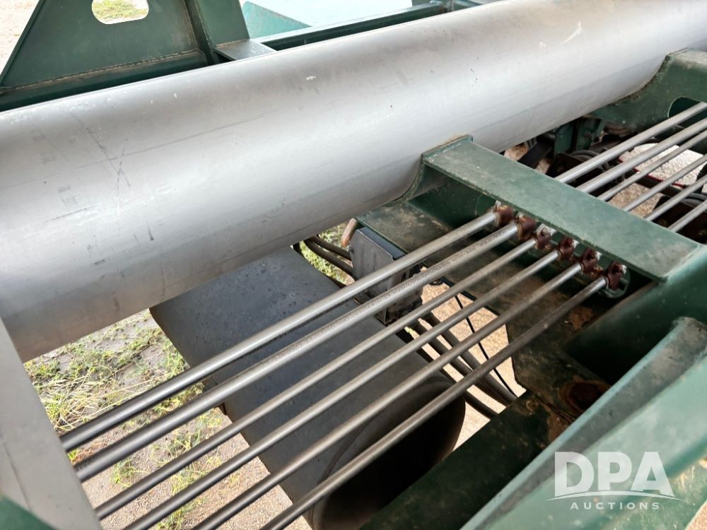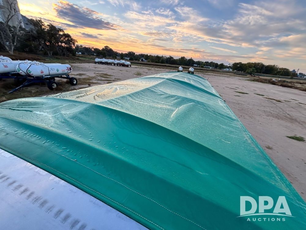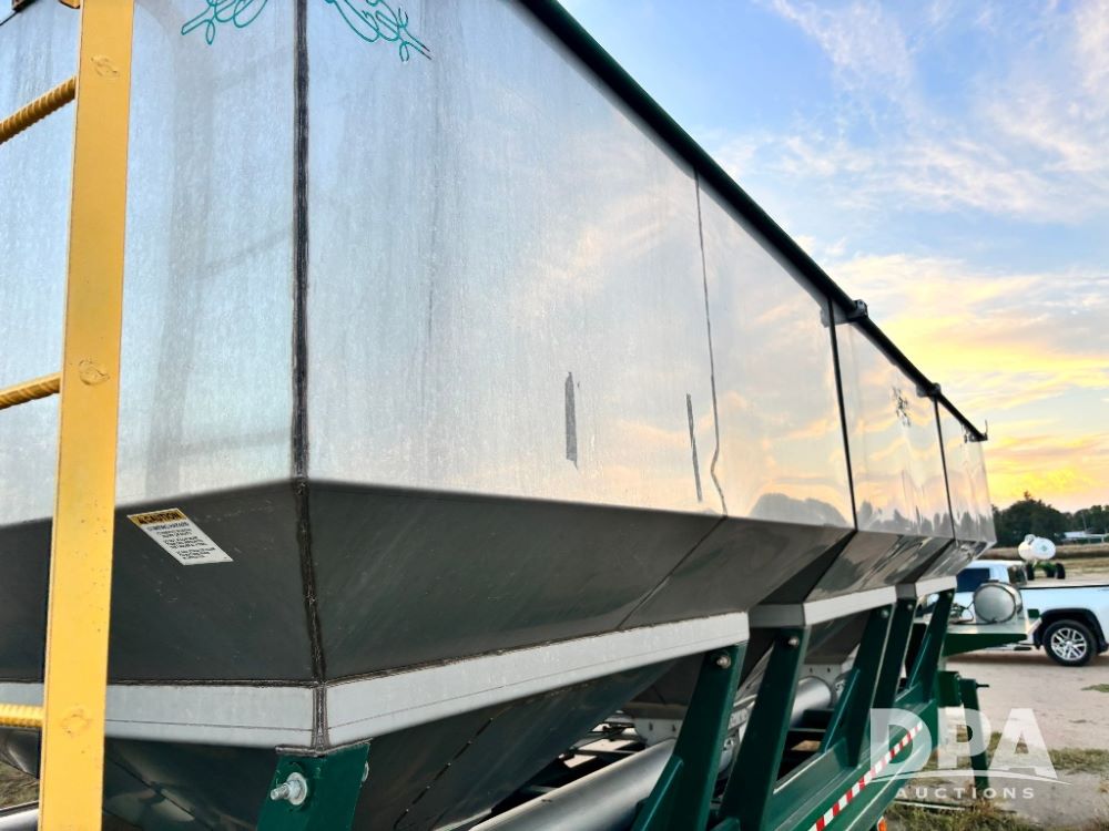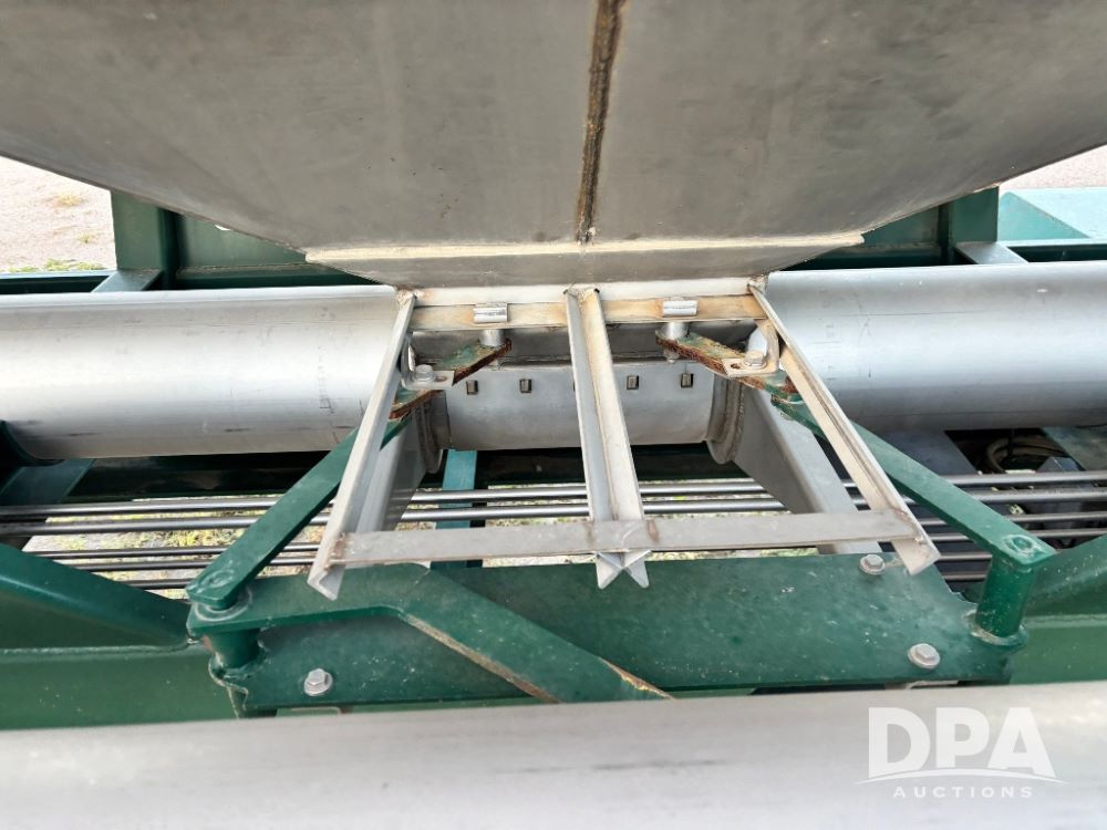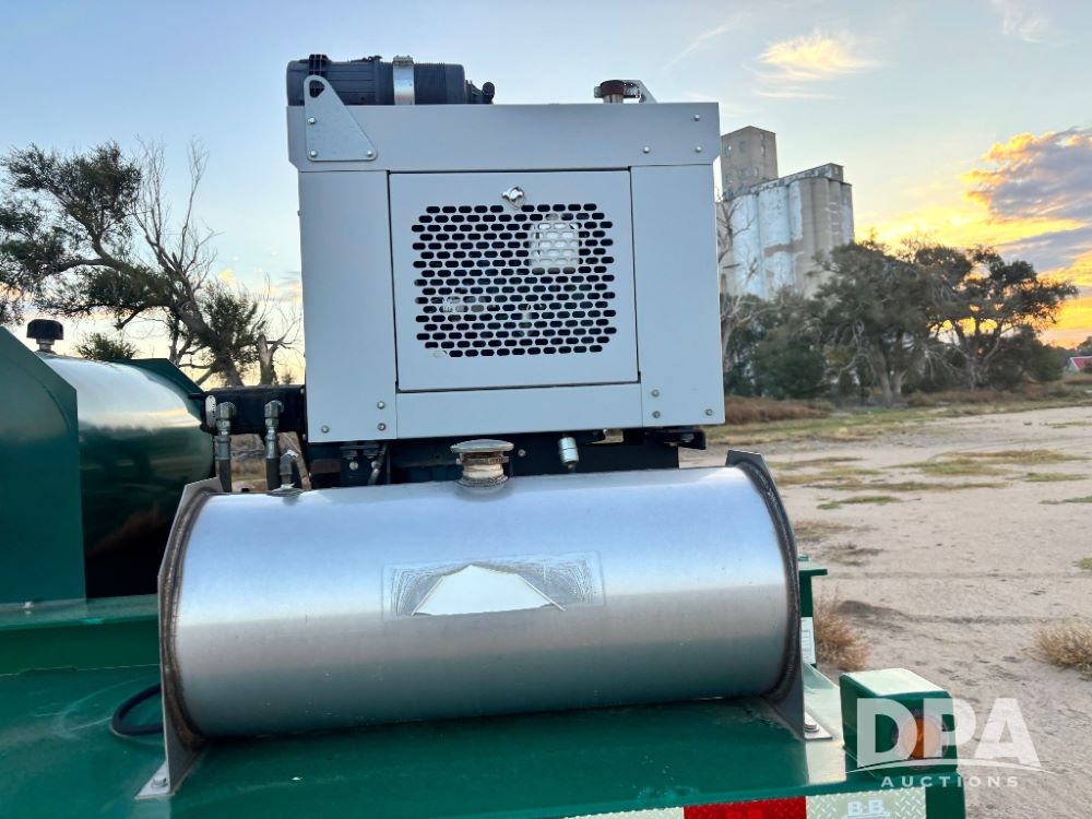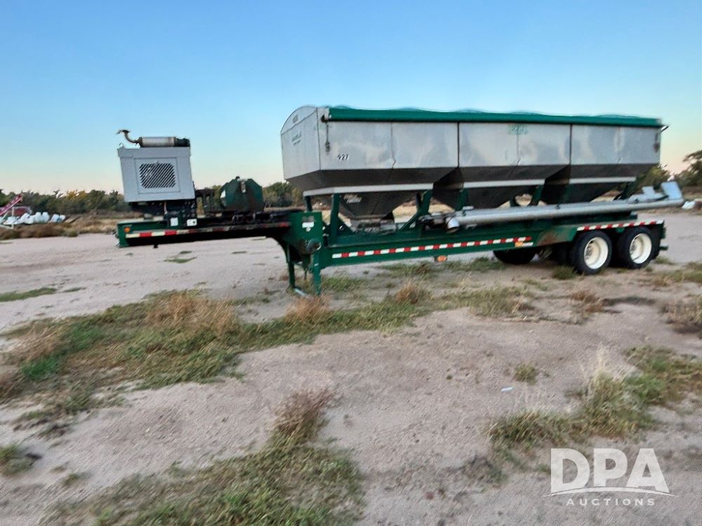 2014 B&B Dry Tender Trailer (GP11697, Unit 927), 2014 B&B Model DDT24 dry tender trailer, Doyle 24 ton stainless steel dry tender box, side discharge auger, hydraulic, roll tarp, rear ladder, self contained diesel engine (shows 282 hours), LOFA Industries electric start control panel, tandem axle, spring suspension, landing gear, 255/70R22.5 tires.
