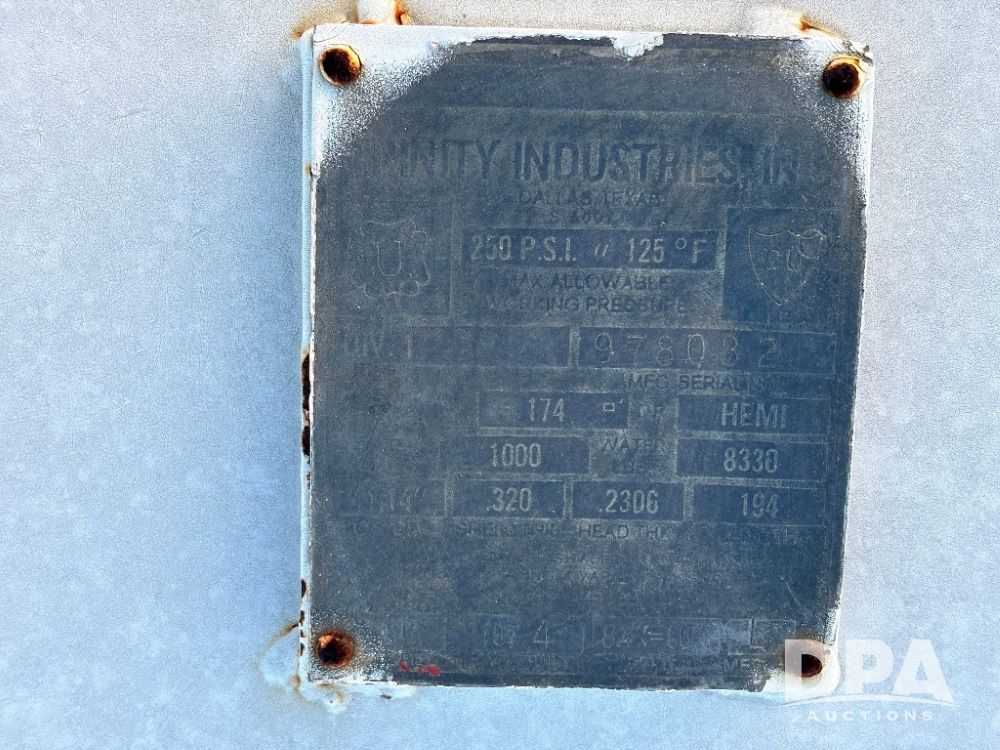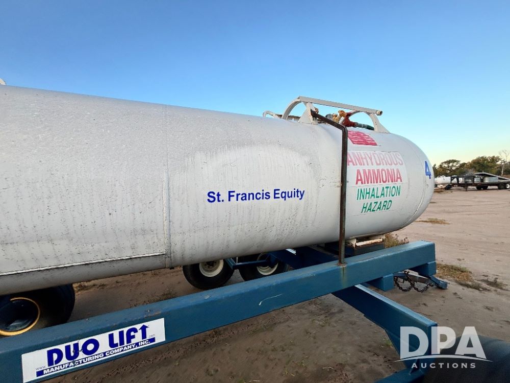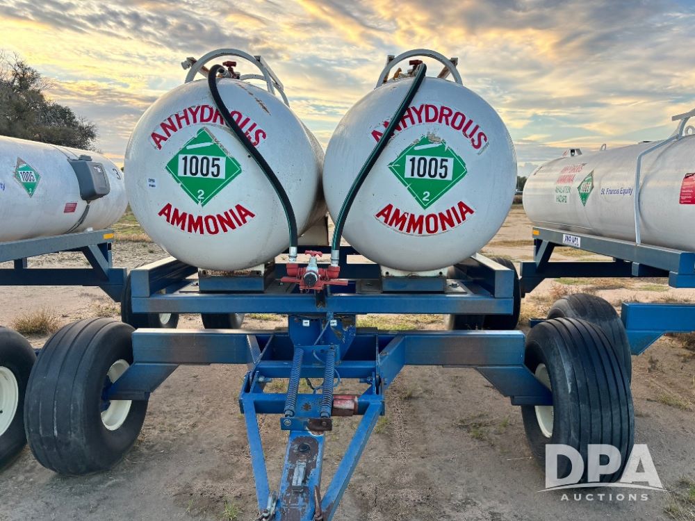 Double NH3 Nurse Tanks (GP11700, Tank 4), (2) Trinity 1,000 gallon NH3 nurse tanks, top front fill, water tank, DUO Lift 4 wheel gear, spring loaded tongue, 16.5L-16.1 flotation tires, data plates.