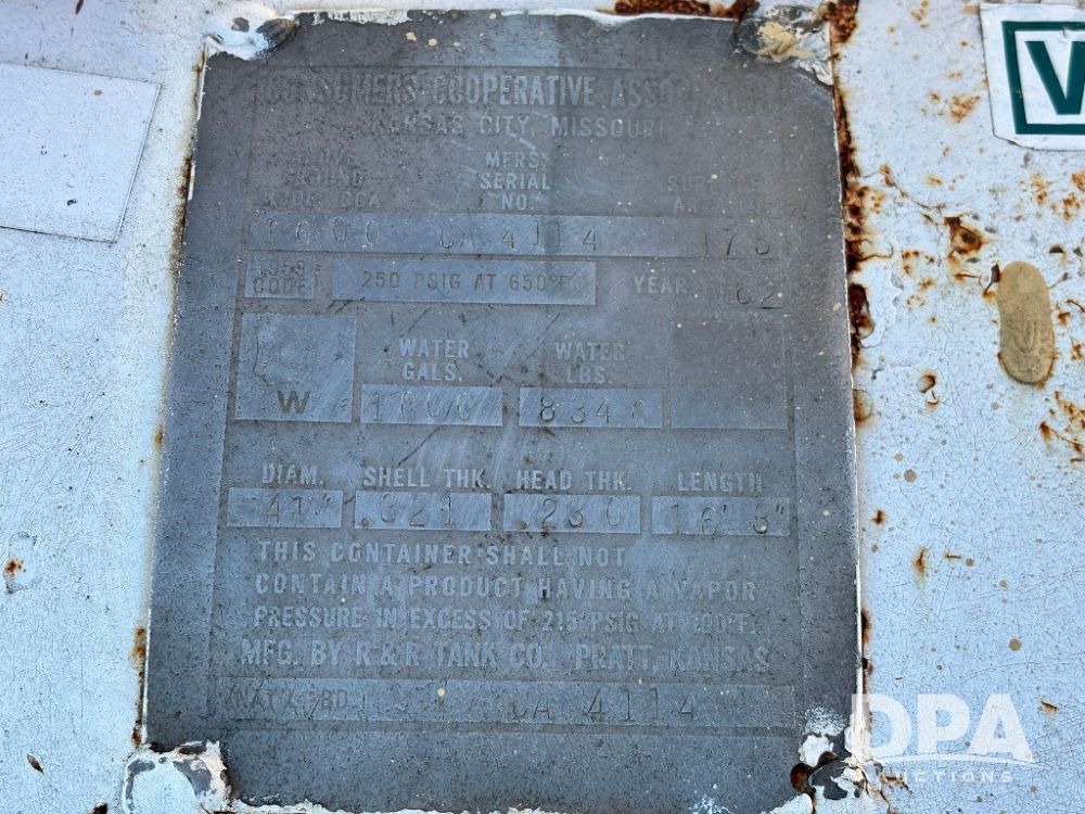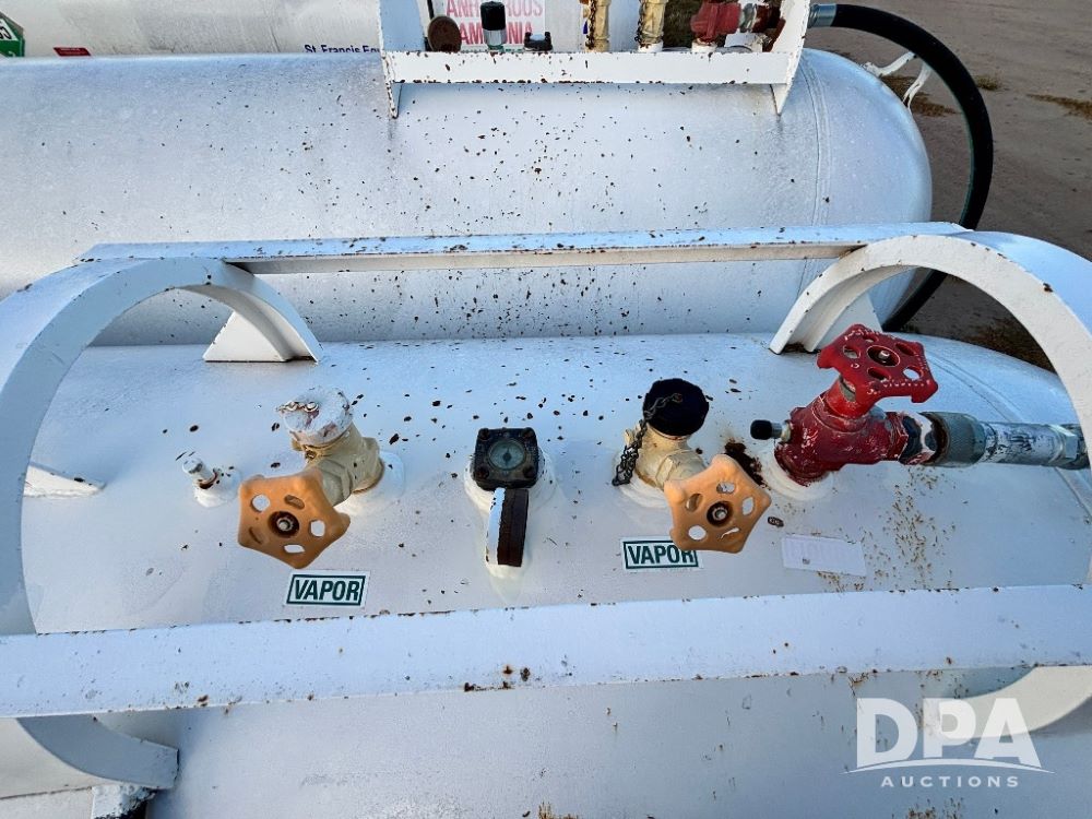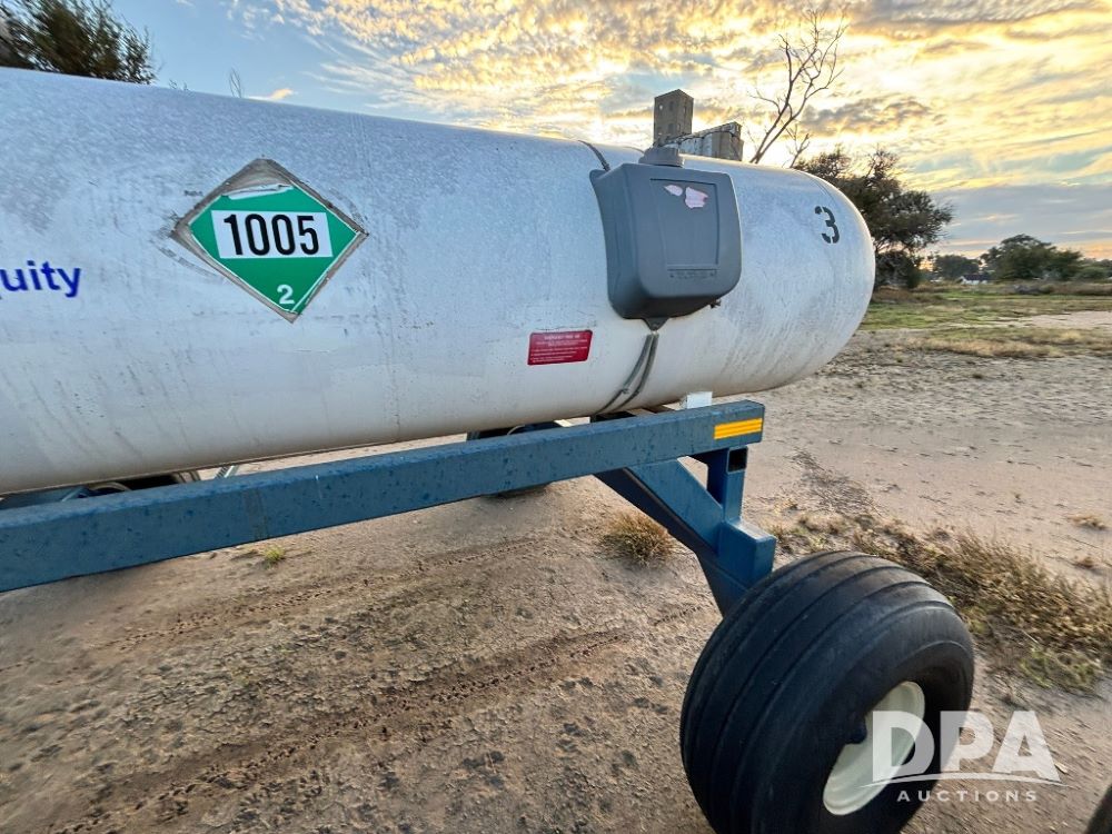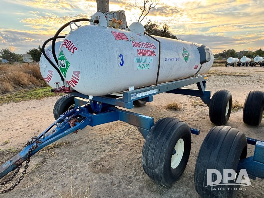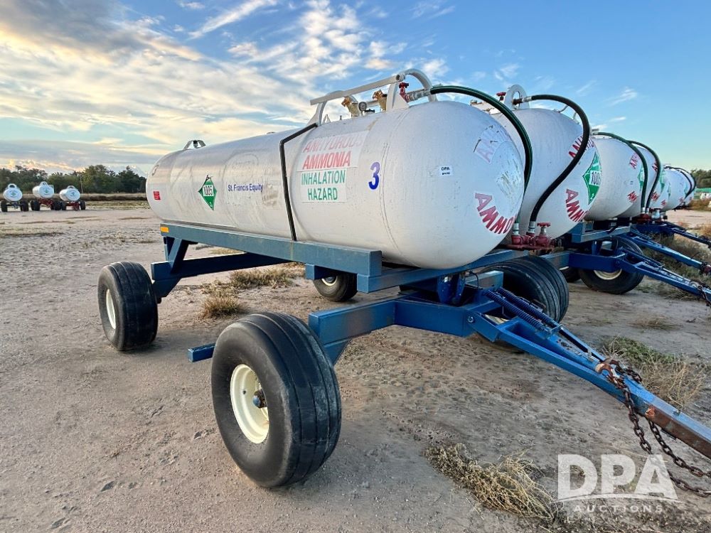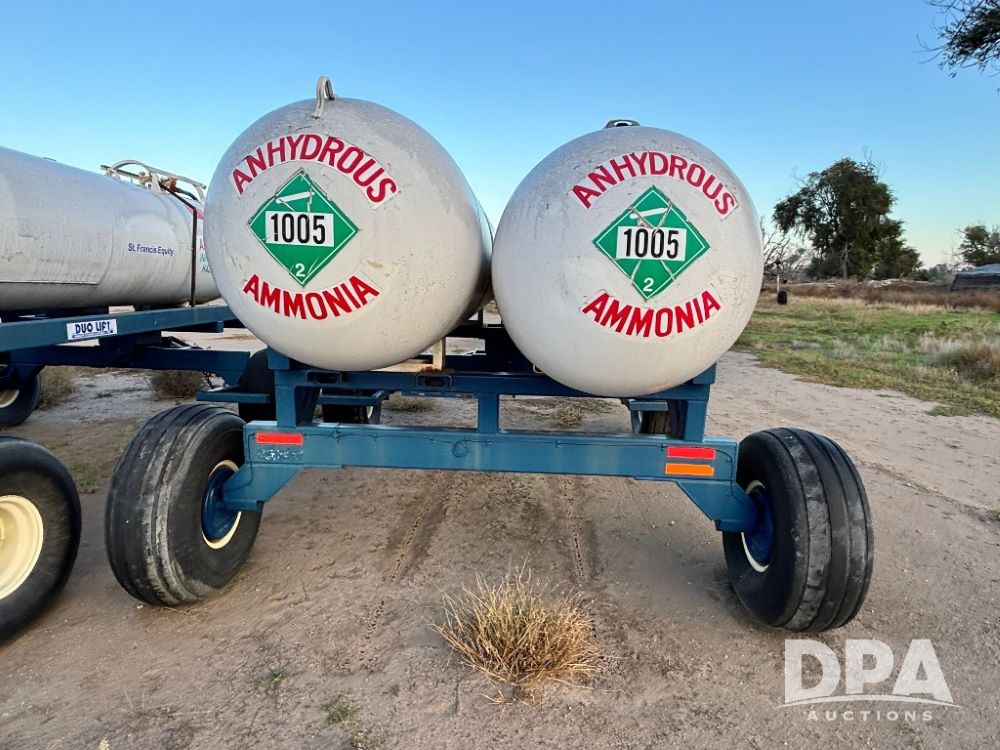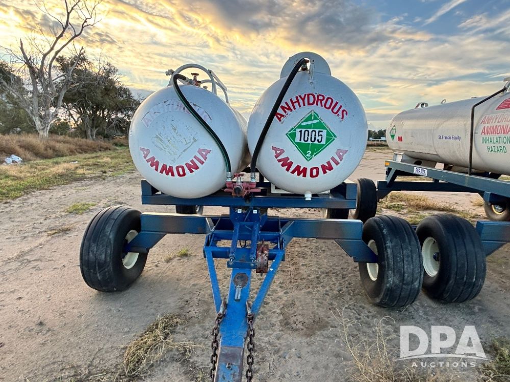 Double NH3 Nurse Tanks (GP11701, Tank 3), (1) Trinity and (1) R&R Tank 1,000 gallon NH3 nurse tanks, top front fill, water tank, DUO Lift 4 wheel gear, spring loaded tongue, 16.5L-16.1 flotation tires, data plates.