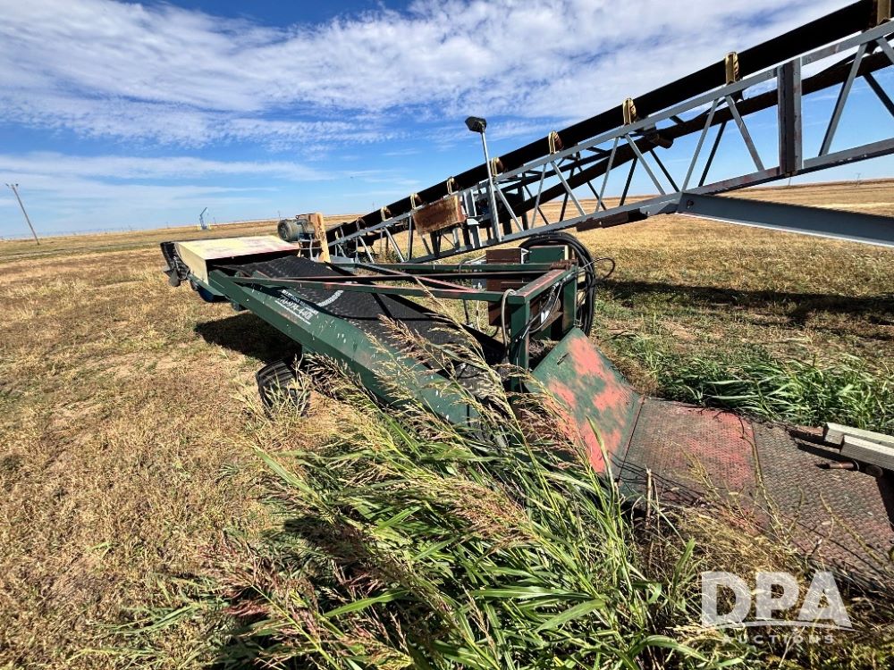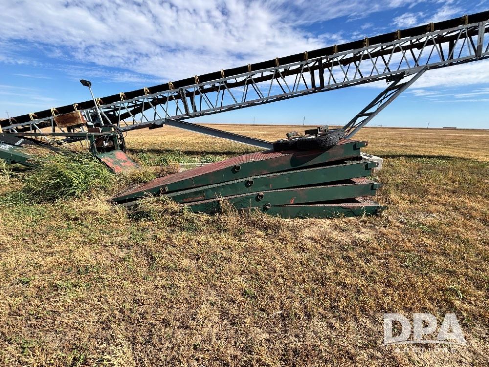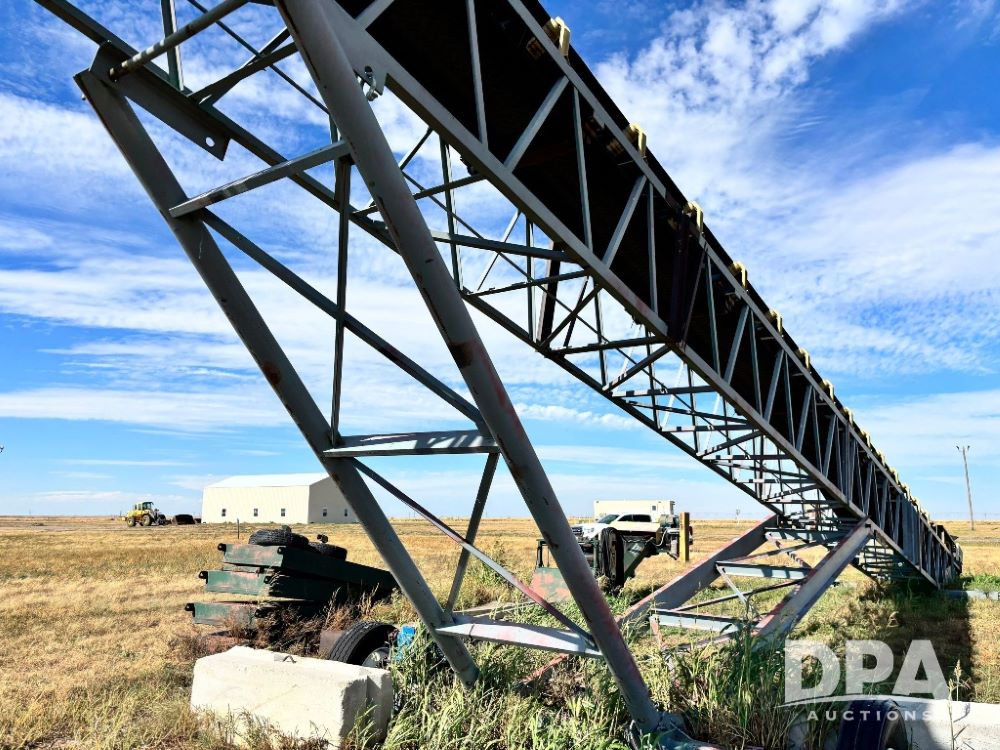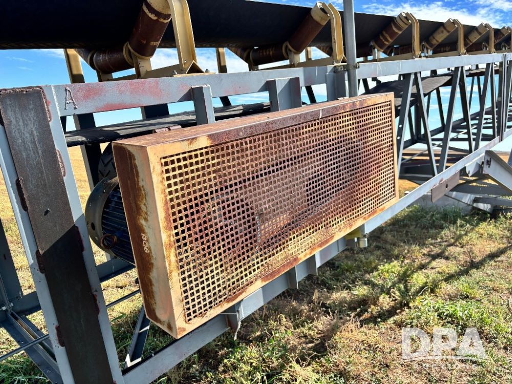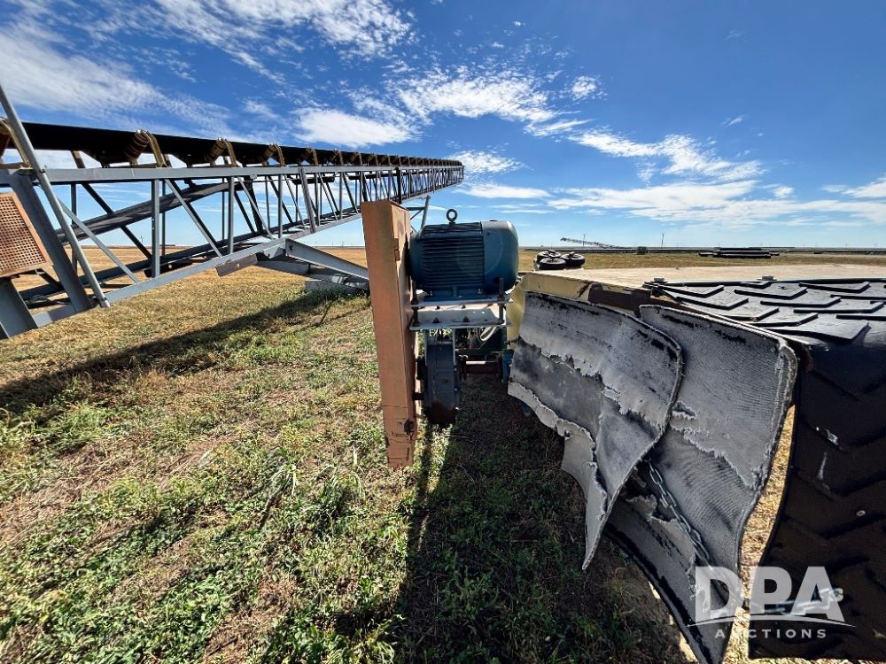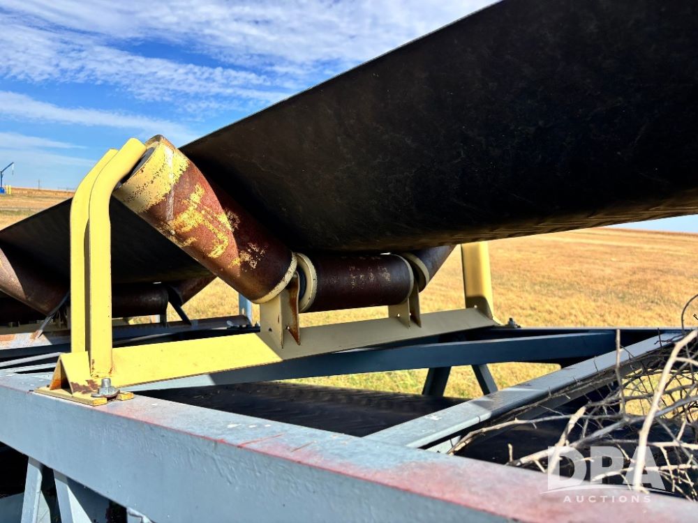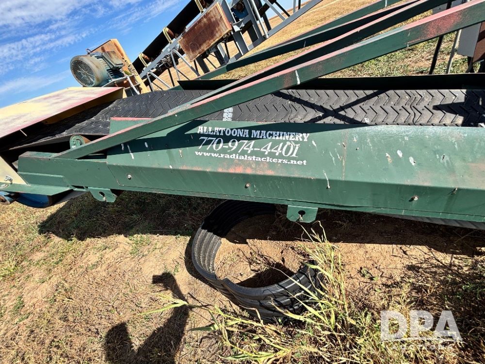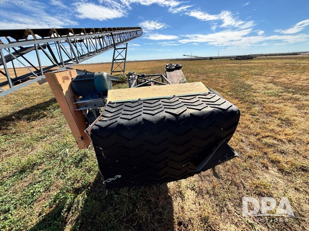 Grain Pile Conveyor (GP11704), grain pile conveyor, portable, approx. 36" belt width, North American Electric 25HP electric motor, Motovario gear box, North American Electric 2HP electric motor, 275/80R24.5 tires, with Allatoona Machinery drive over conveyor, approx. 42" belt width, North American Electric 15HP electric motor, electric control start panel.