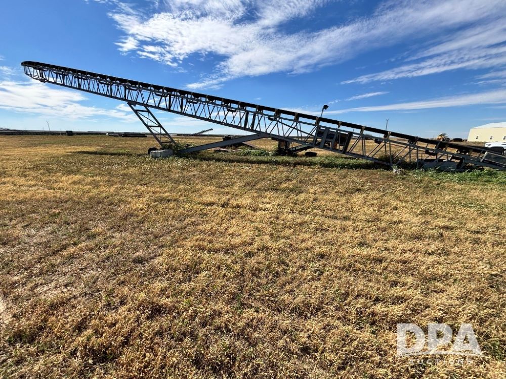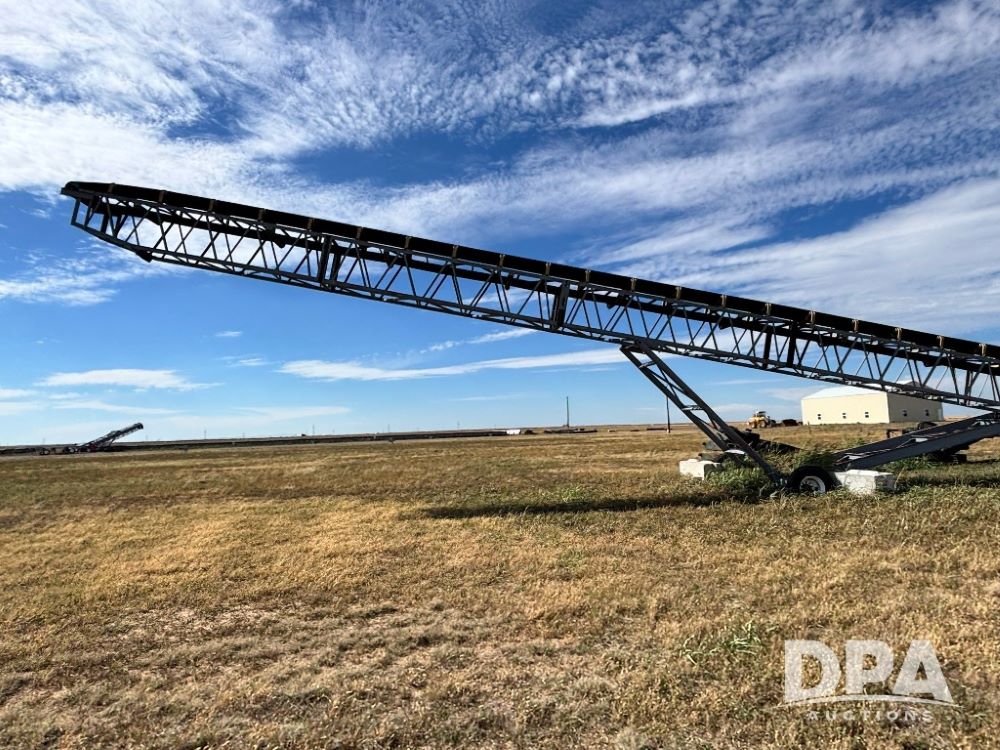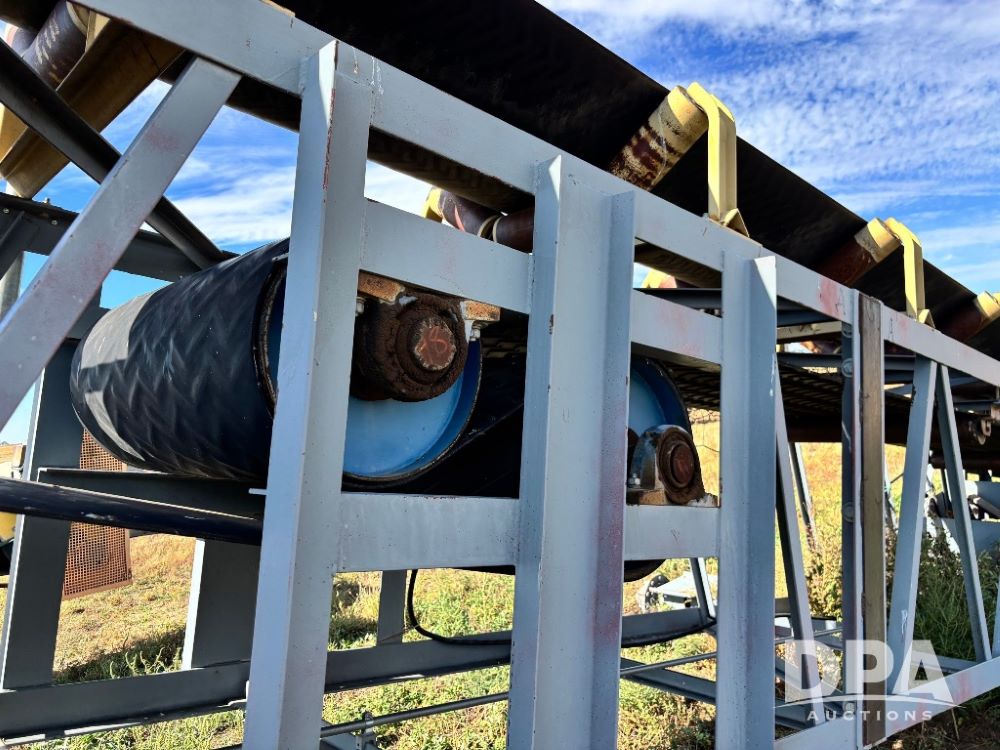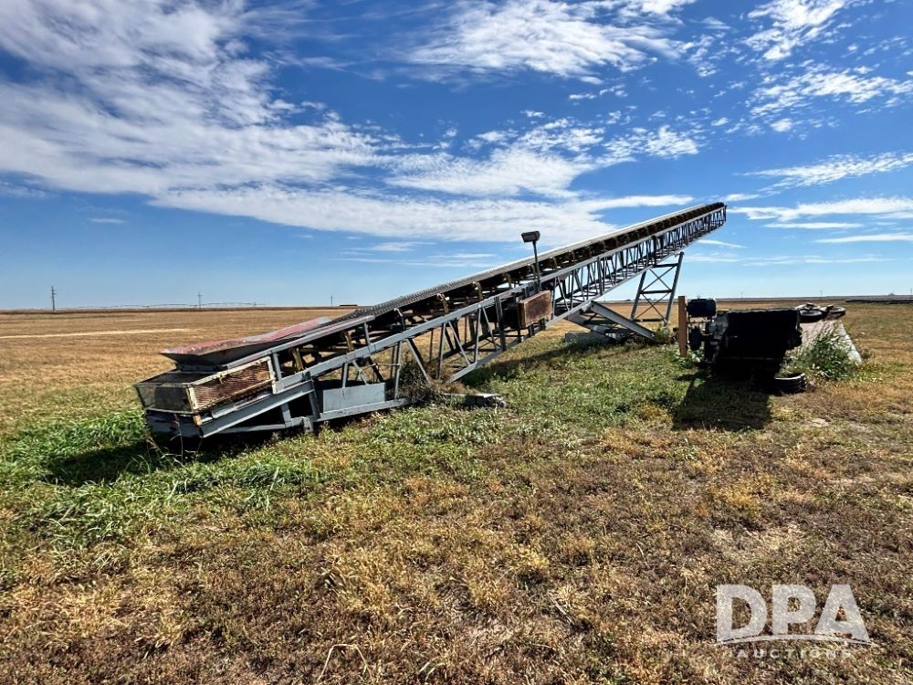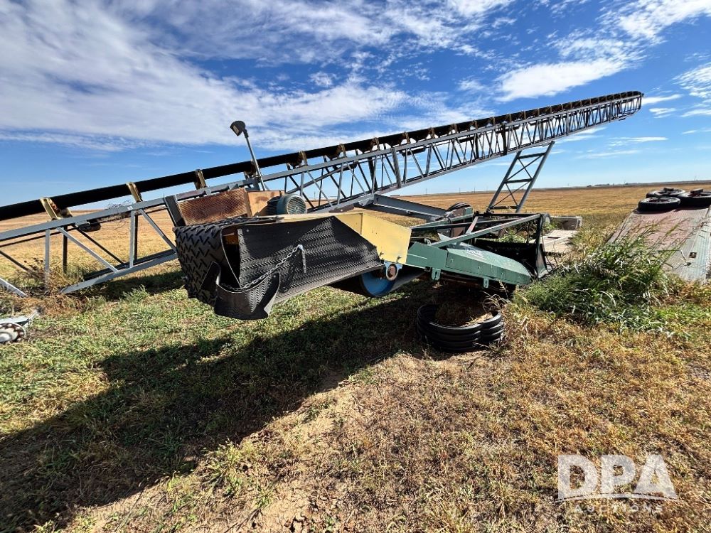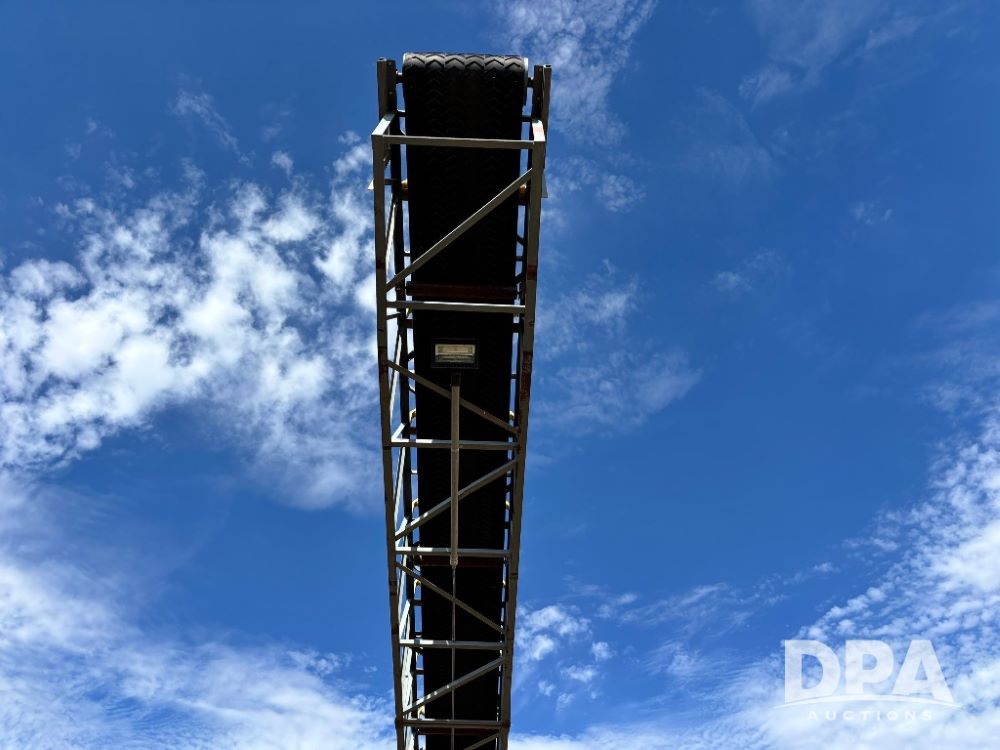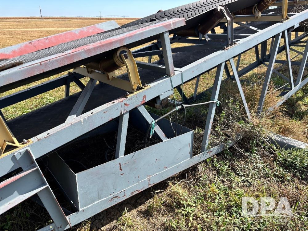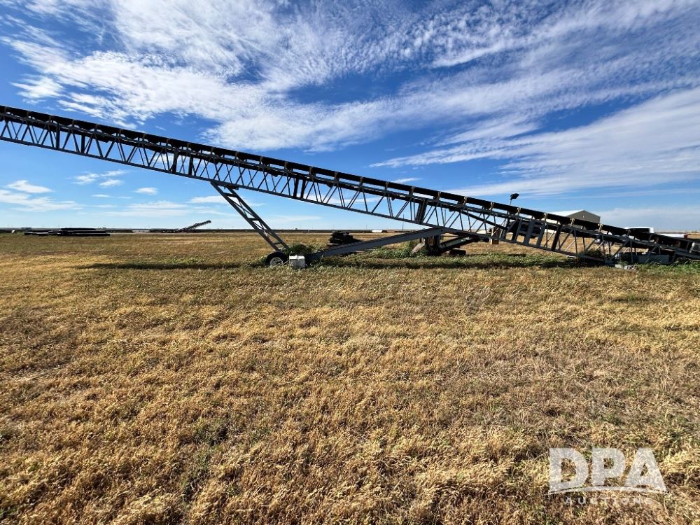 Grain Pile Conveyor (GP11704), grain pile conveyor, portable, approx. 36" belt width, North American Electric 25HP electric motor, Motovario gear box, North American Electric 2HP electric motor, 275/80R24.5 tires, with Allatoona Machinery drive over conveyor, approx. 42" belt width, North American Electric 15HP electric motor, electric control start panel.