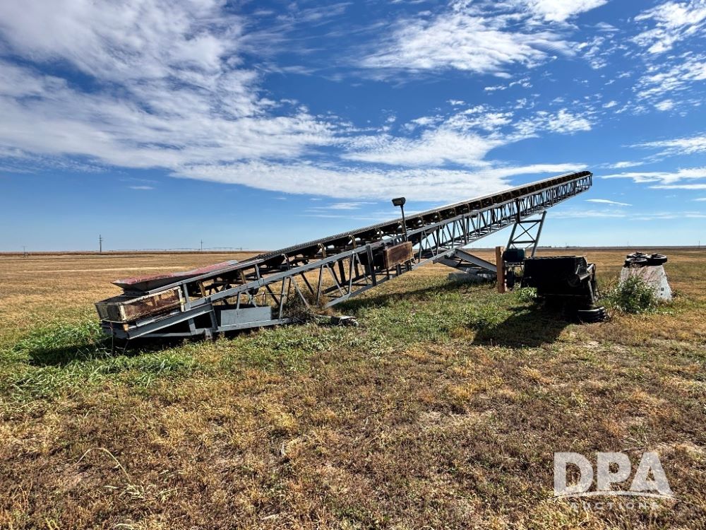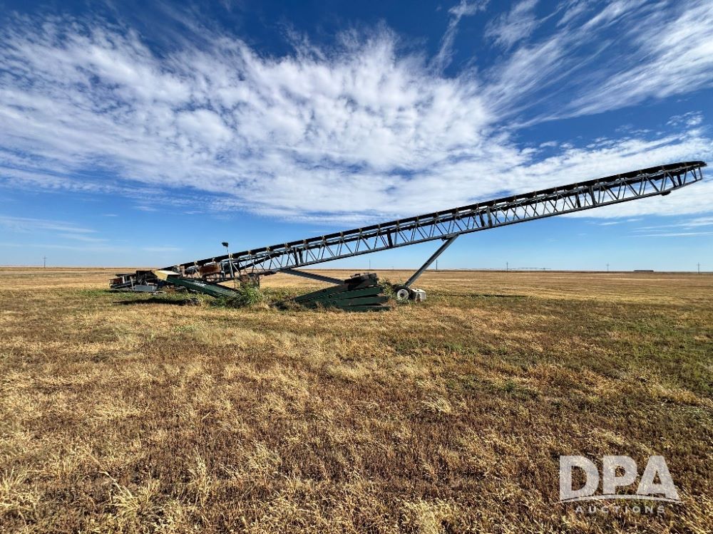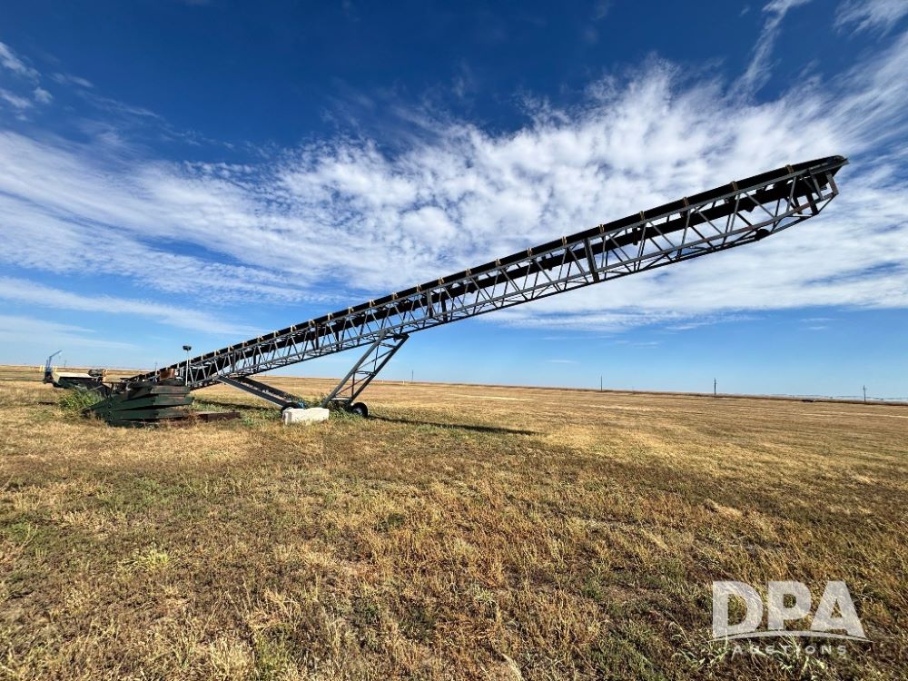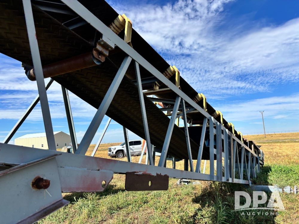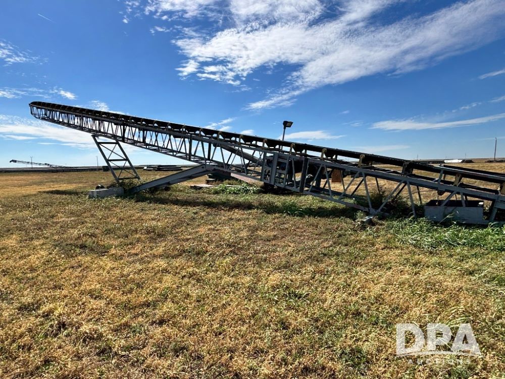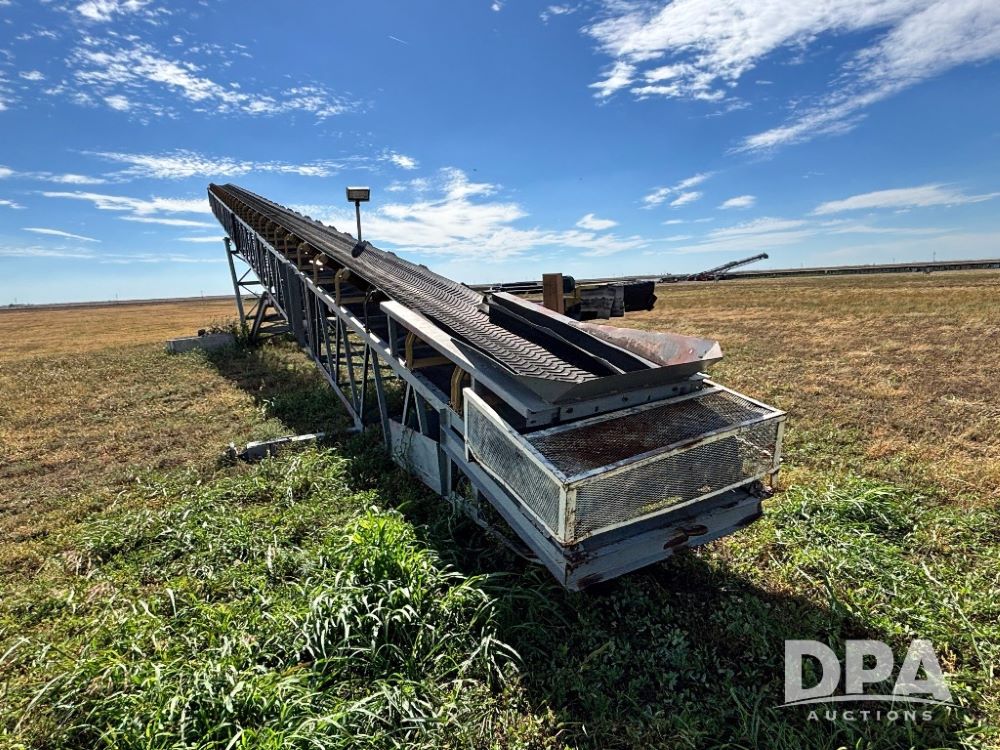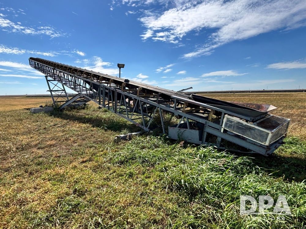 Grain Pile Conveyor (GP11704), grain pile conveyor, portable, approx. 36" belt width, North American Electric 25HP electric motor, Motovario gear box, North American Electric 2HP electric motor, 275/80R24.5 tires, with Allatoona Machinery drive over conveyor, approx. 42" belt width, North American Electric 15HP electric motor, electric control start panel.
