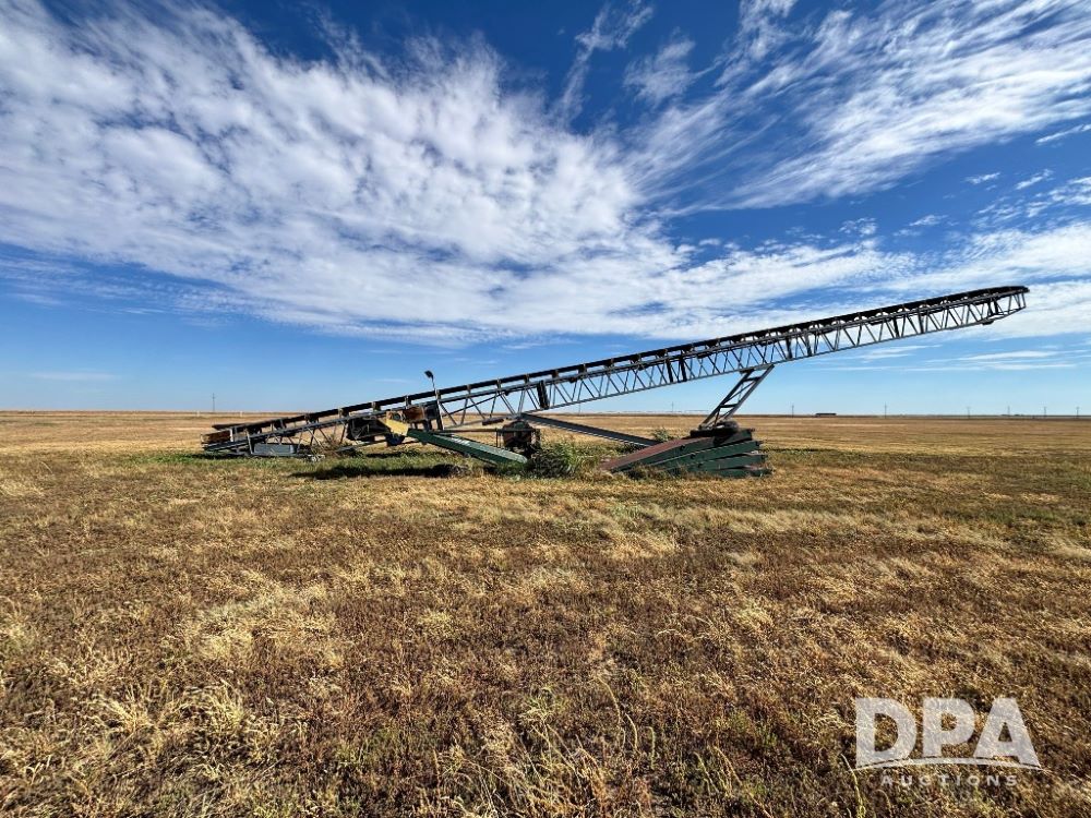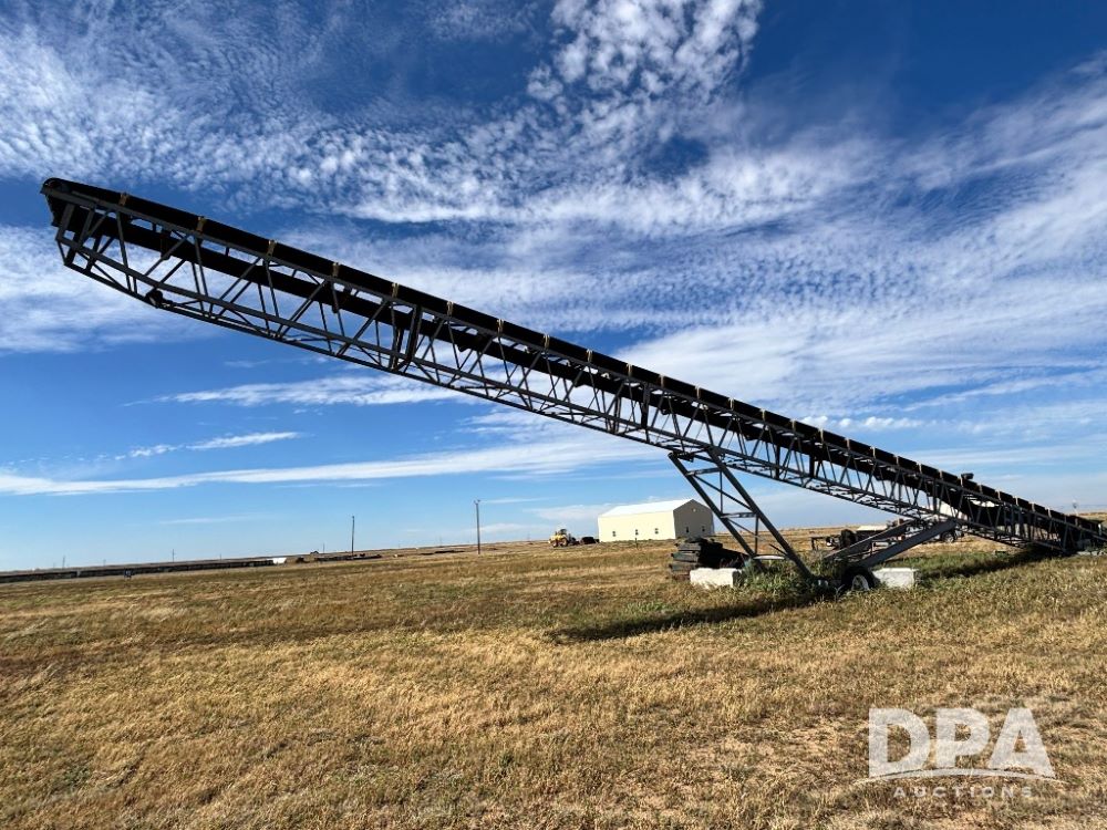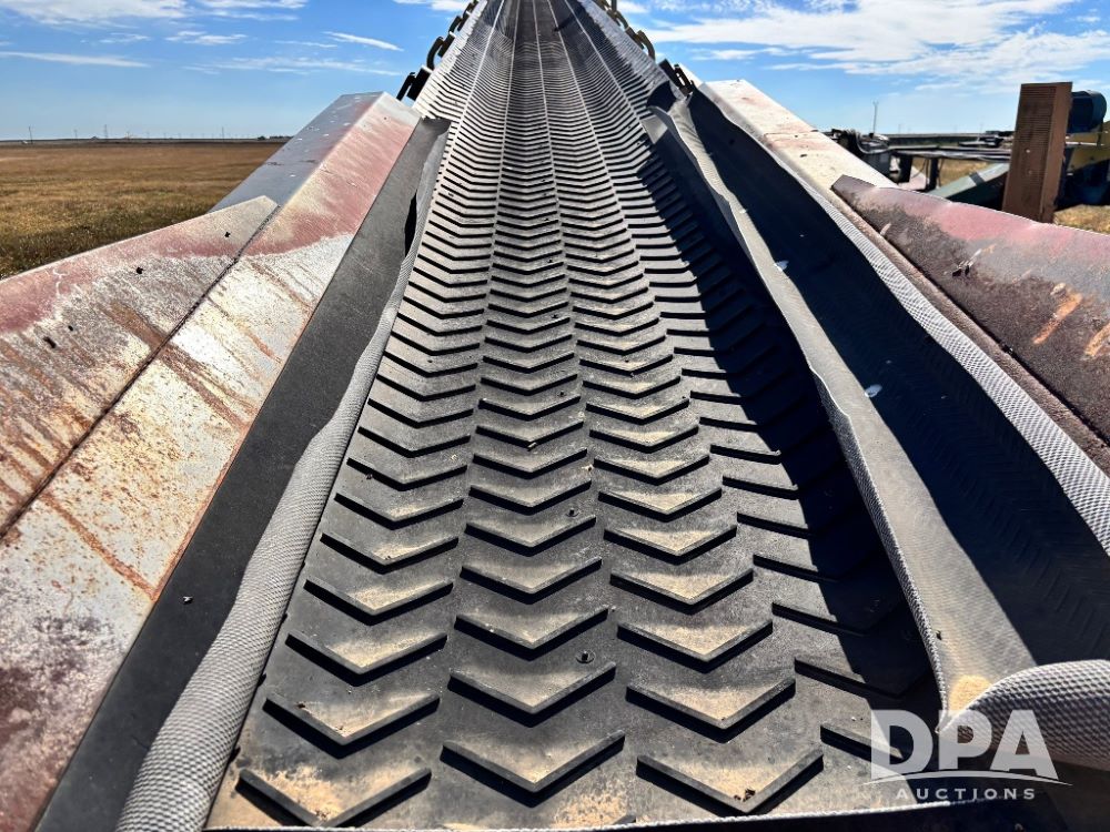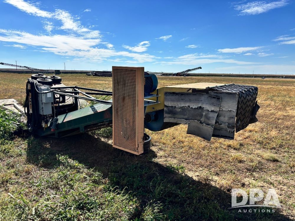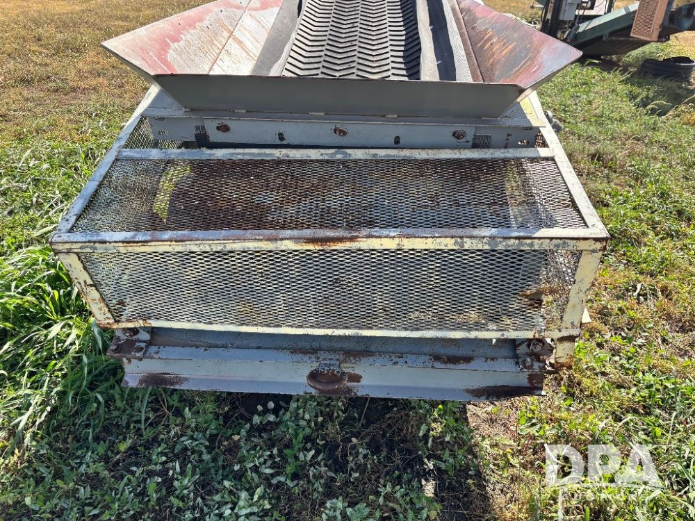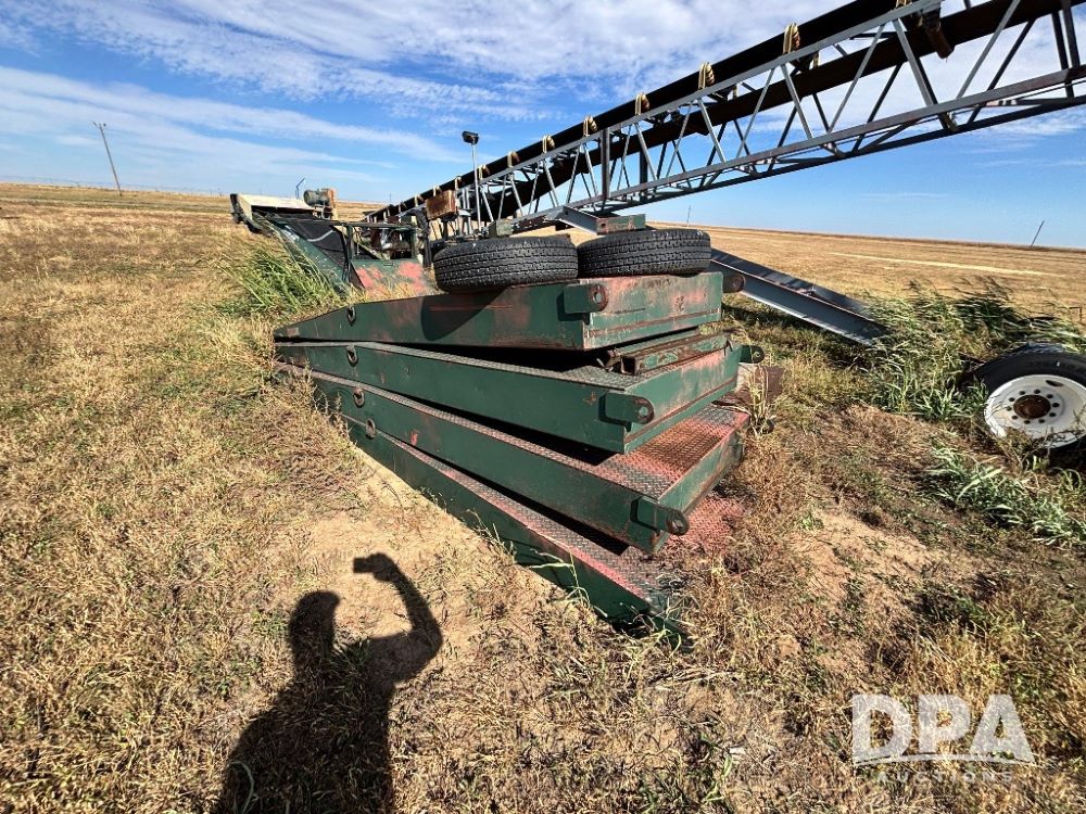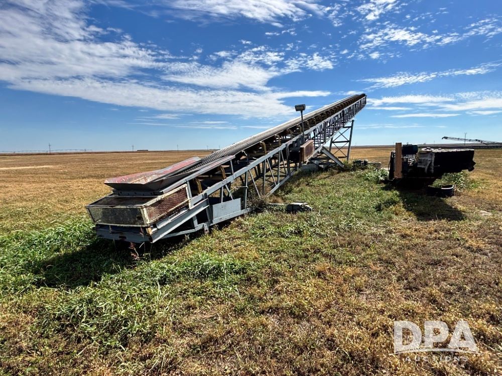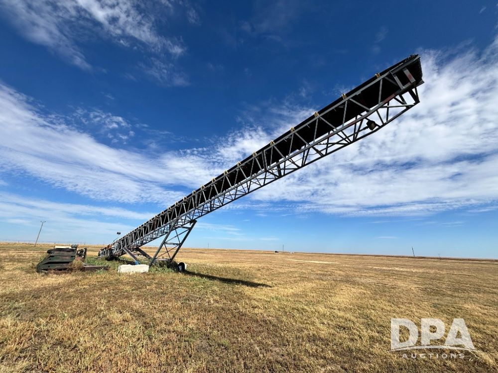 Grain Pile Conveyor (GP11704), grain pile conveyor, portable, approx. 36" belt width, North American Electric 25HP electric motor, Motovario gear box, North American Electric 2HP electric motor, 275/80R24.5 tires, with Allatoona Machinery drive over conveyor, approx. 42" belt width, North American Electric 15HP electric motor, electric control start panel.