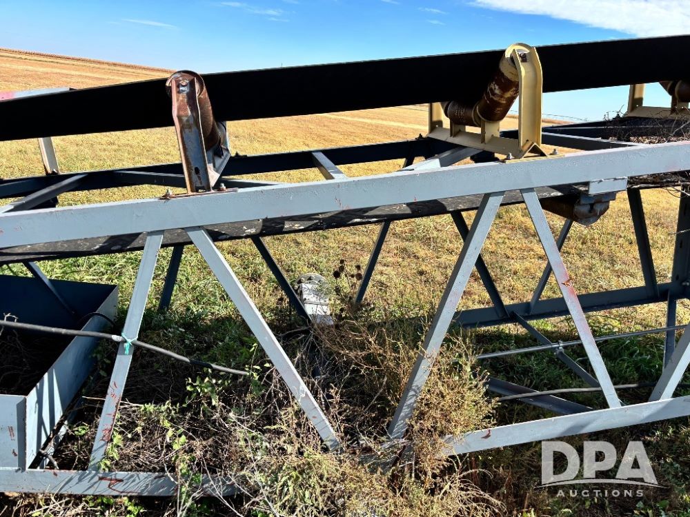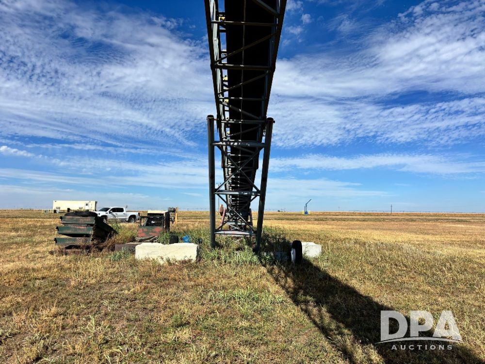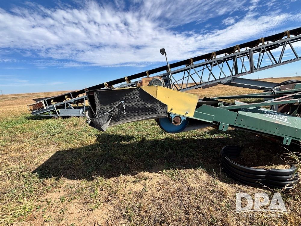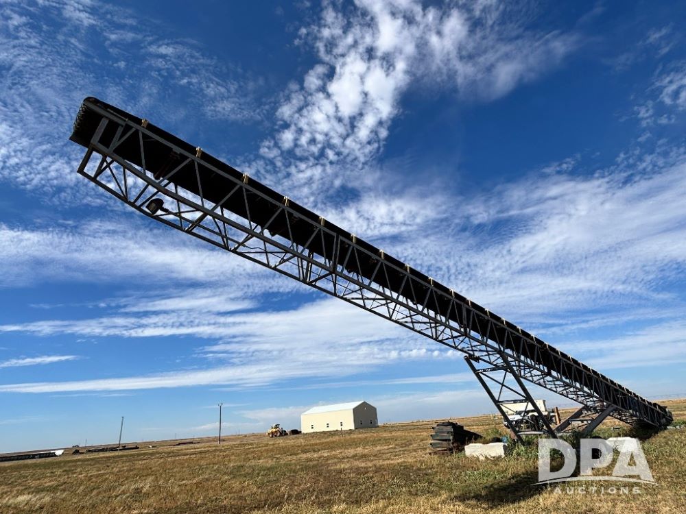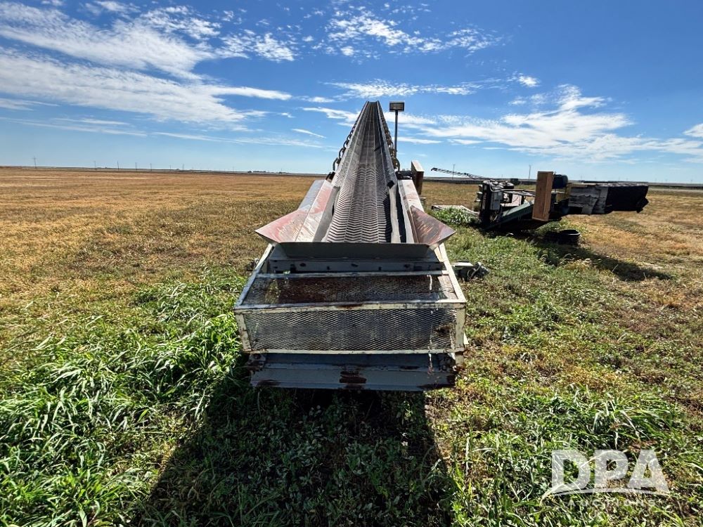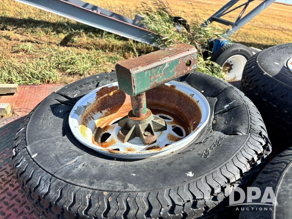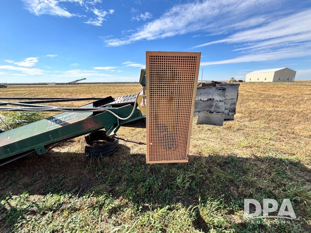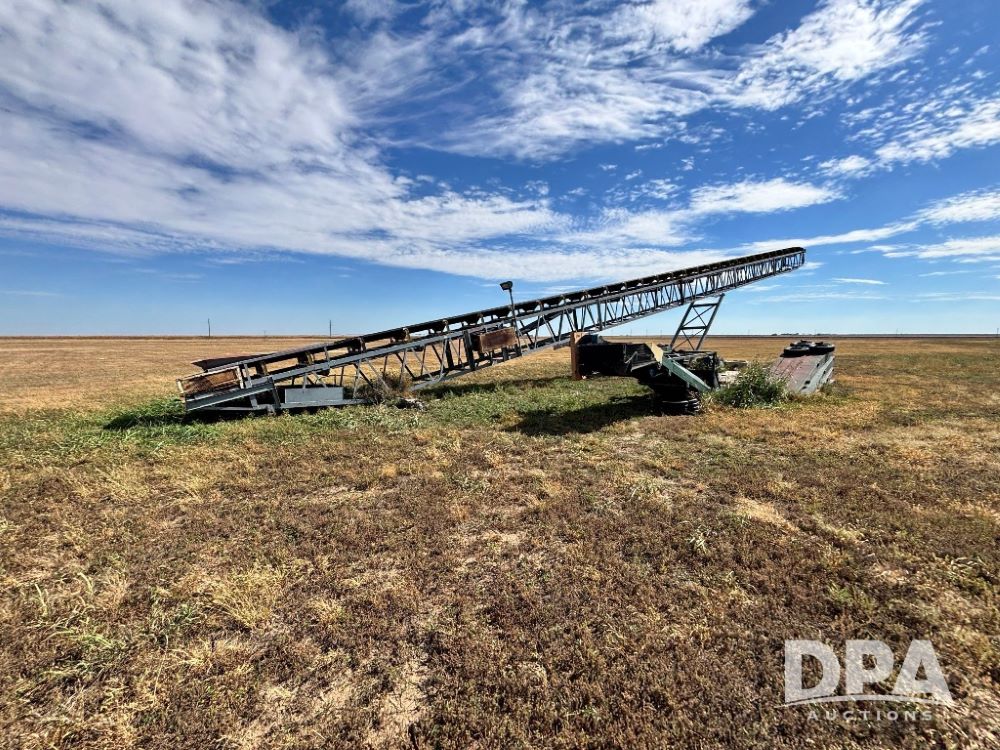 Grain Pile Conveyor (GP11704), grain pile conveyor, portable, approx. 36" belt width, North American Electric 25HP electric motor, Motovario gear box, North American Electric 2HP electric motor, 275/80R24.5 tires, with Allatoona Machinery drive over conveyor, approx. 42" belt width, North American Electric 15HP electric motor, electric control start panel.