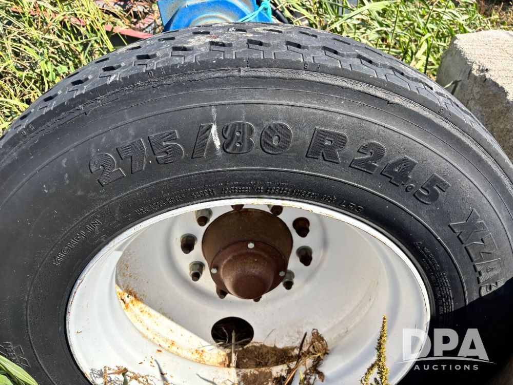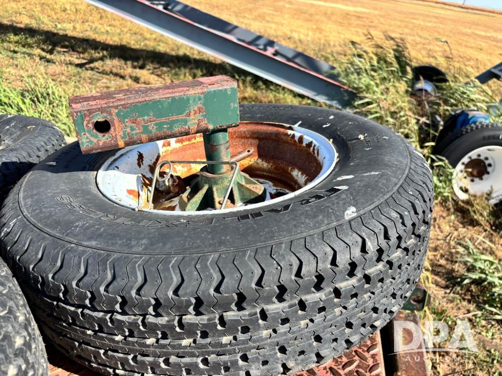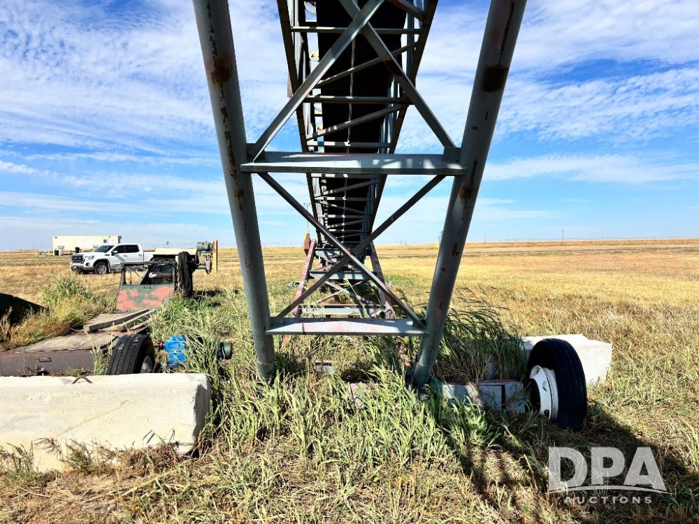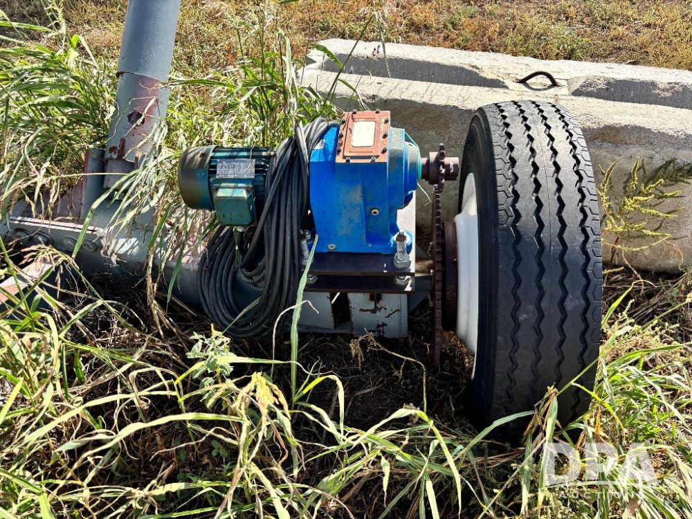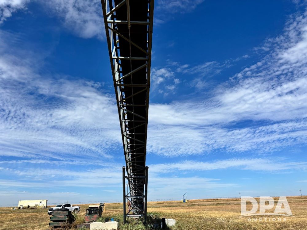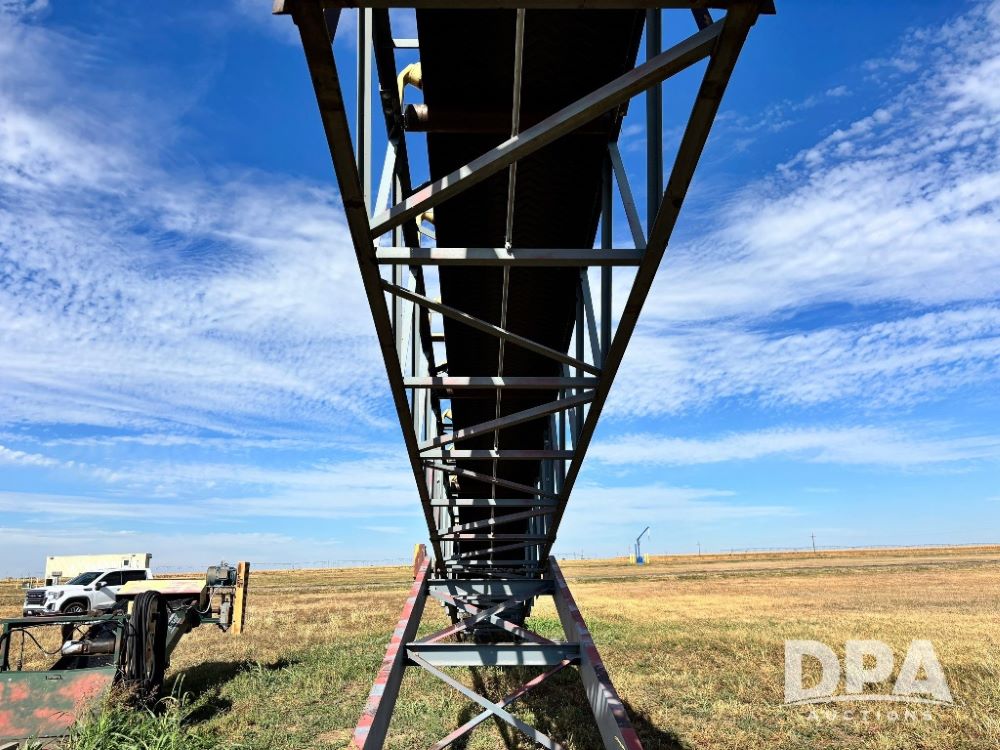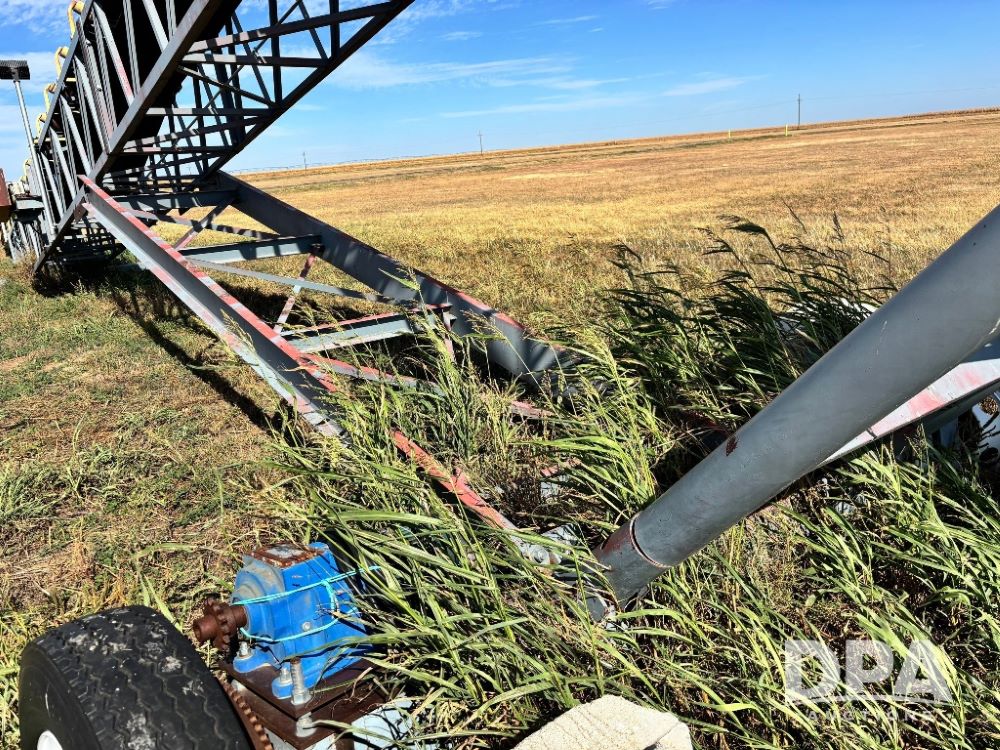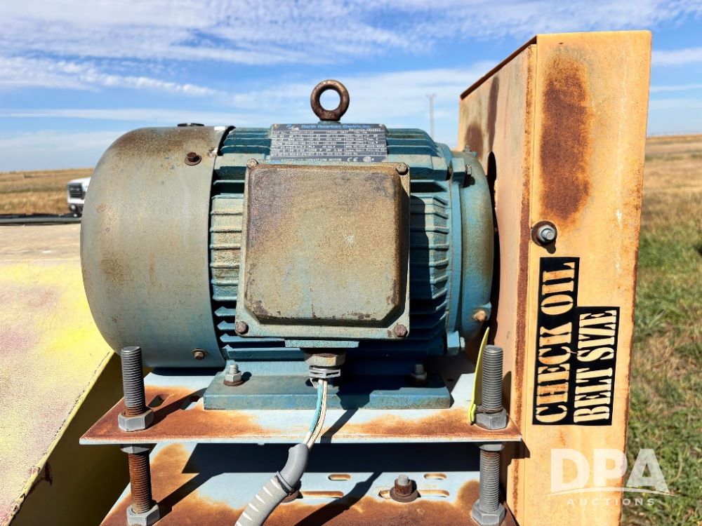Grain Pile Conveyor (GP11704), grain pile conveyor, portable, approx. 36" belt width, North American Electric 25HP electric motor, Motovario gear box, North American Electric 2HP electric motor, 275/80R24.5 tires, with Allatoona Machinery drive over conveyor, approx. 42" belt width, North American Electric 15HP electric motor, electric control start panel.