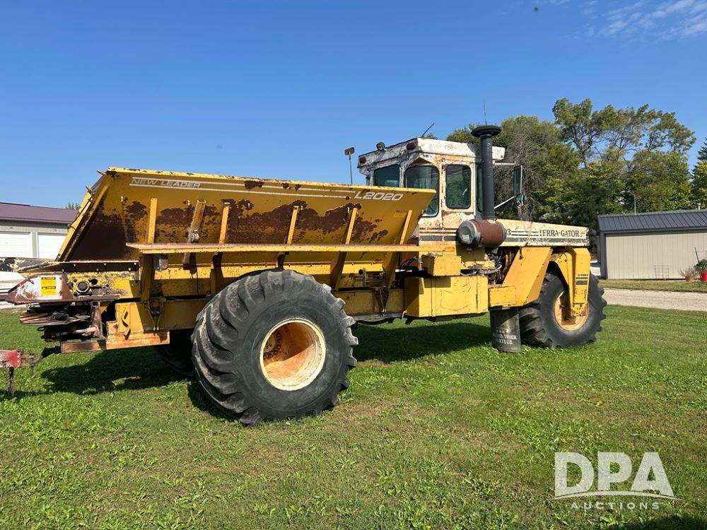 Ag-Chem TerraGator 1603 Dry Floater (CP1156), CAT 3208 diesel engine, 210 hp, 5-speed manual transmission, New Leader L2020 spreader box, Mark III controller, tires- 66x43.00-25, hours- 3,414.
