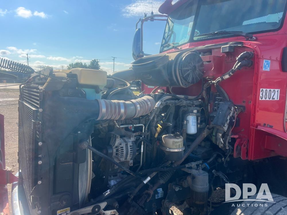 2012 Peterbilt 384 Day Cab Truck (PZ13965, Unit 38021), Paccar diesel engine, Eaton Fuller 10 speed transmission, air conditioning, heat, Am/Fm radio, cruise control, engine brake, tandem axle, full screw, air ride suspension, 5th wheel, 11R22.5 tires, aluminum rims.