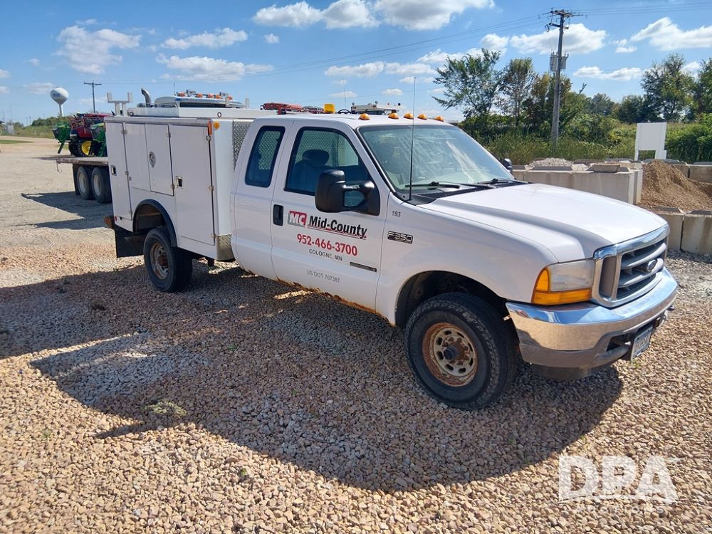 2001 Ford F350 Service Truck (LT1434), 7.3 Powerstroke Diesel Engine, propane service truck, shows 273,823 miles.