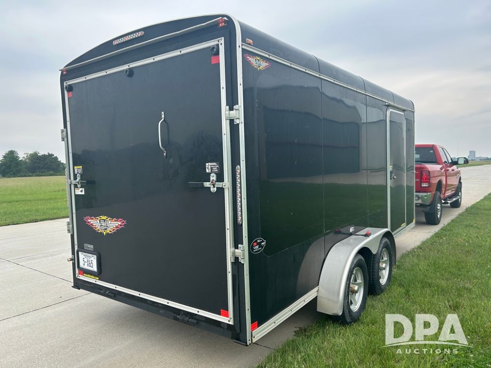 2011 H&H Enclosed Trailer (DPA4000), 2011 H&H enclosed trailer, approx. 16' x 7', tandem axle, 3,500 pound axles, rear ramp door, side access door, cargo light, recently updated light kit, bumper hitch, 2 5/16" ball, ST205/75R15 tires, GVWR 7,000 pounds.