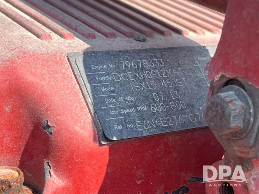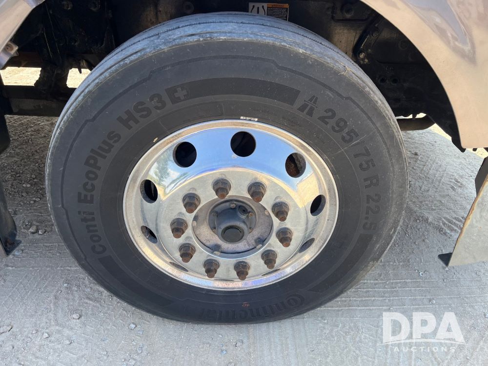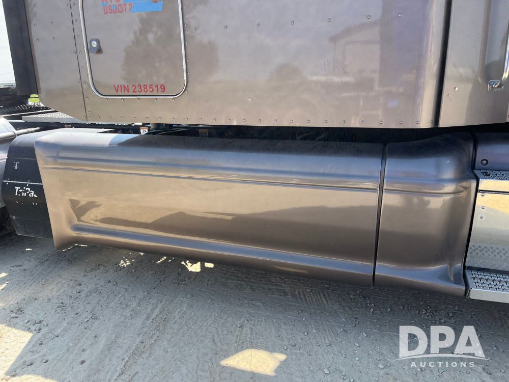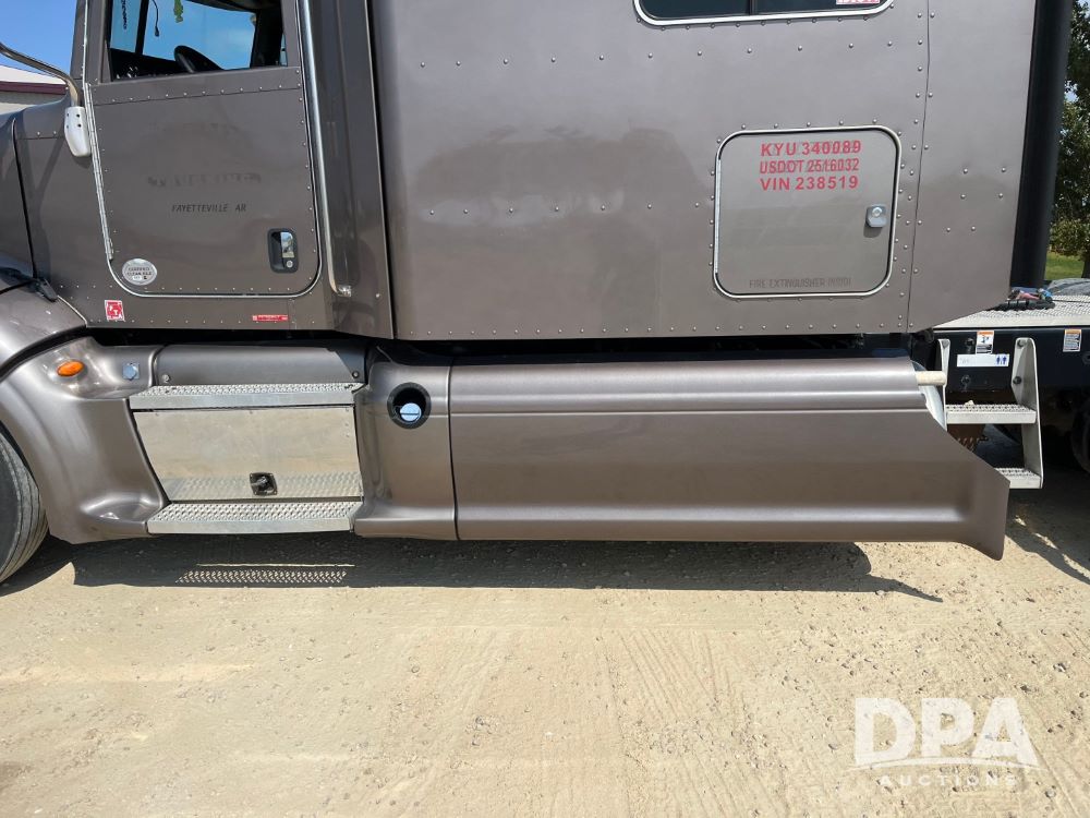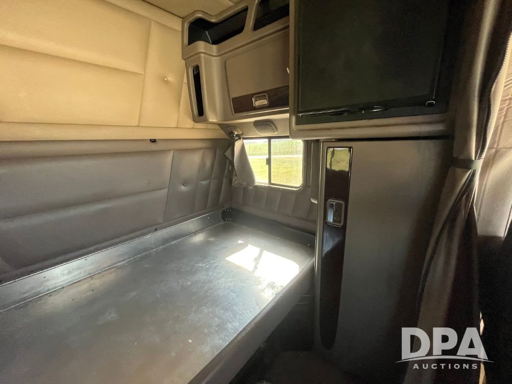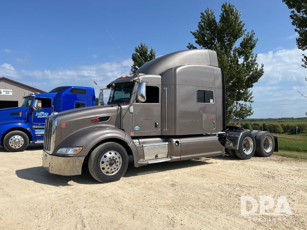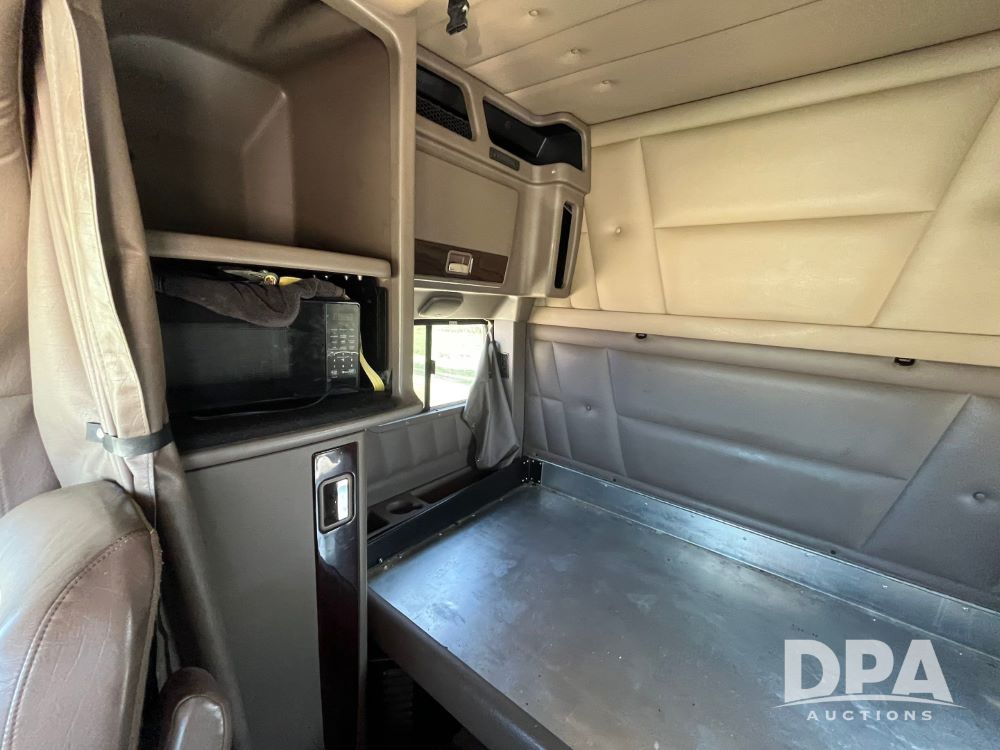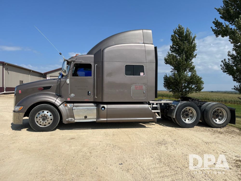 2014 Peterbilt 386 Sleeper Truck (JN3049), Cummins ISX15 450ST diesel engine, Eaton Fuller 18 speed transmission, heat, air conditioning, Am/Fm radio, sleeper, cruise control, touch screen, microwave, refrigerator, air ride cab, tandem axle, air ride suspension, sliding 5th wheel plate, 295/75R22.5 front tires, 285/75R24.5 rear tires, engine heater, dual fuel tanks, shows 1,335,542 miles.