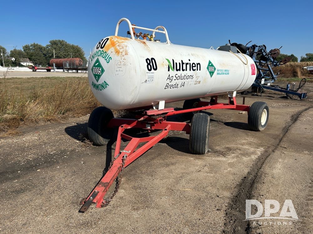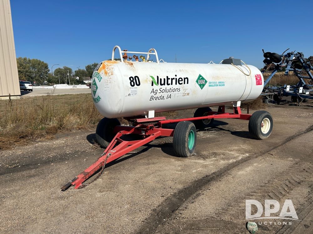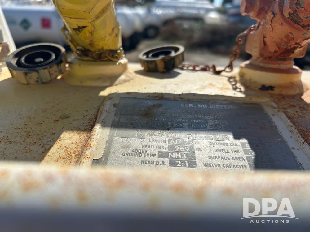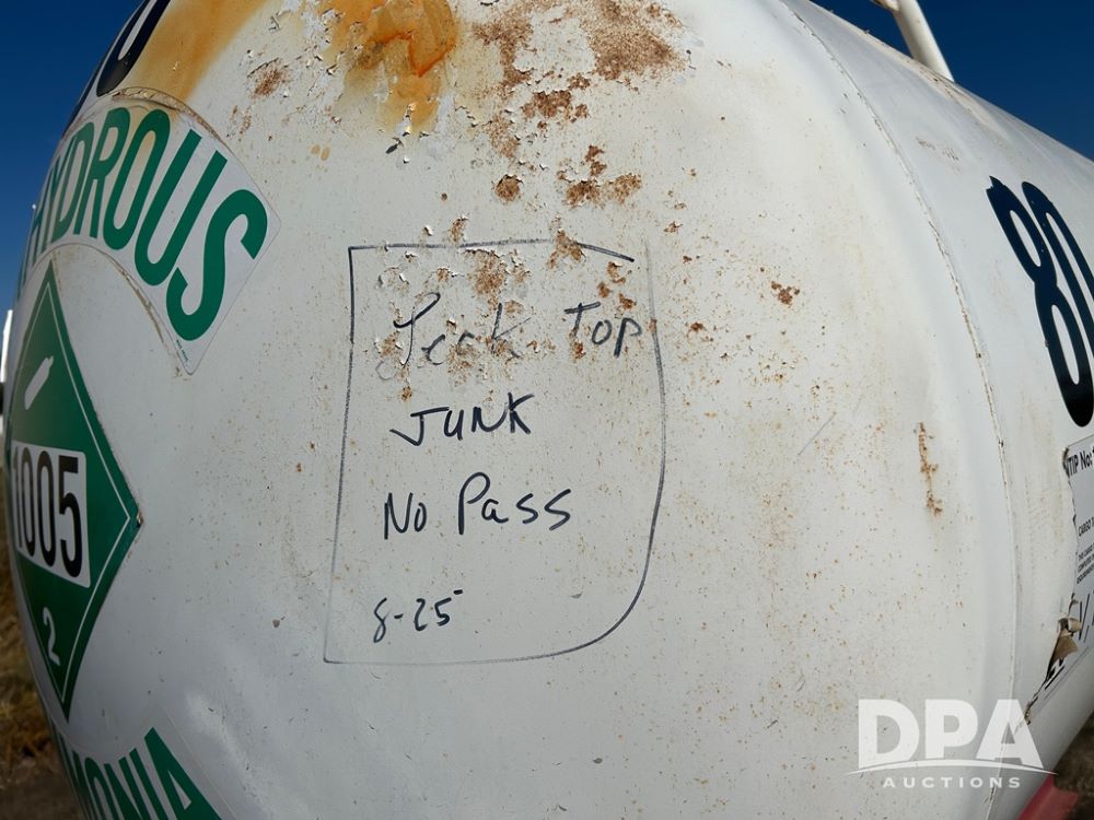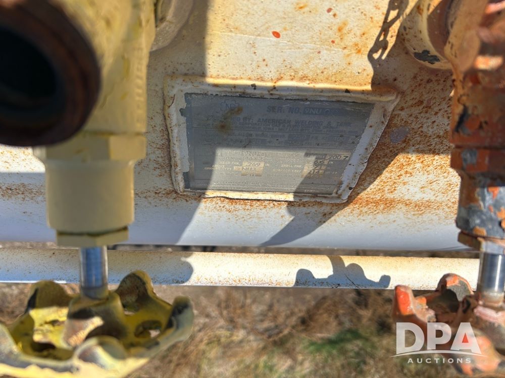 2007 American Welding & Tank NH3 Nurse Tank (CP1201, Unit 93440), 2007 American Welding & Tank 1450 gallon NH3 nurse tank, top front fill, poly water tank, data plate, VTP 20, 2007 Datlon 5th wheel running gear, 12.5L-15 flotation tires.