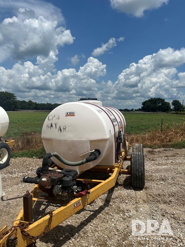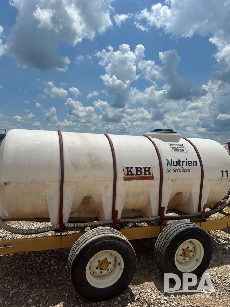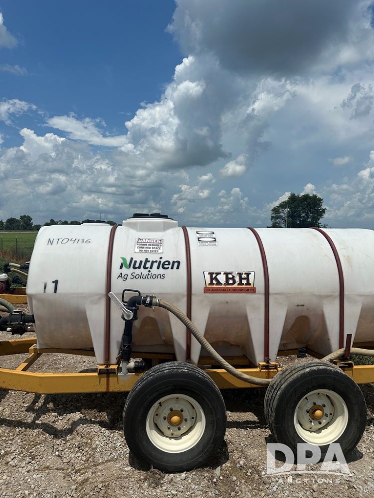 2013 KBH Liquid Nurse Tank (PZ13971, Unit 69194), 2013 KBH 1000 gallon poly liquid nurse tank, gas engine, pump, tandem axle, 11L-15 flotation tires.
