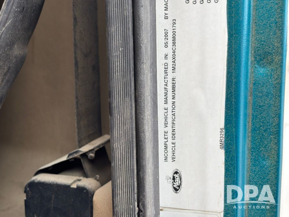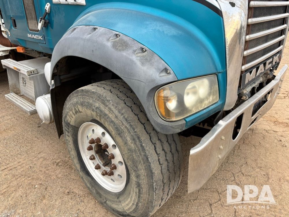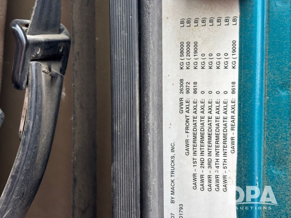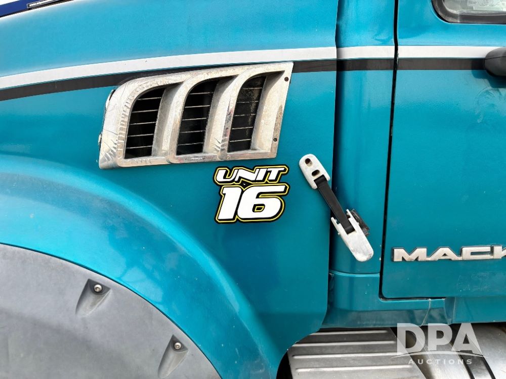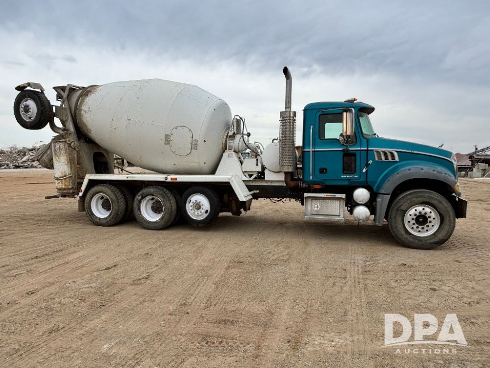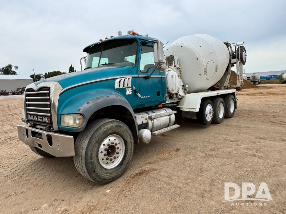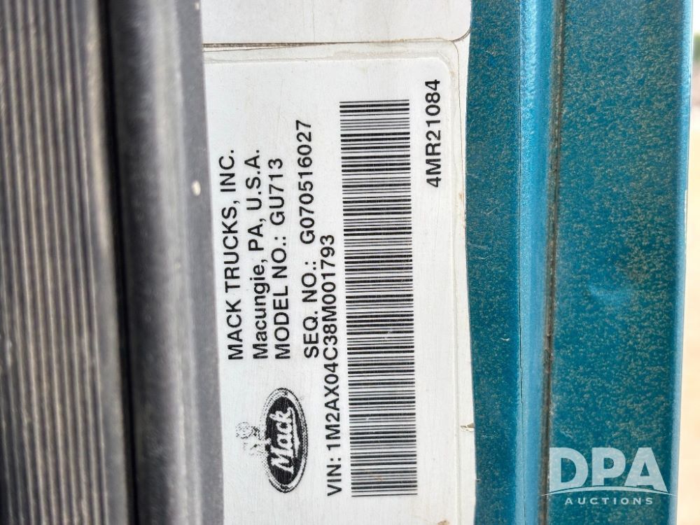 2008 Mack Granite GU713 Mixer Truck (GP11573), MP7 diesel engine, Eaton Fuller 9 speed transmission, air ride day cab, air conditioning, heat, radio, power locks and windows, Terrex 10.5 cubic yard mixer, rear discharge, NEW computer, drum controls, Hendrickson Haulmaax suspension, tandem axle, with 2 air tag axles, 11R22.5 tires, 255/70R22.5 front tag axle tires, shows 136,622.2 miles.
