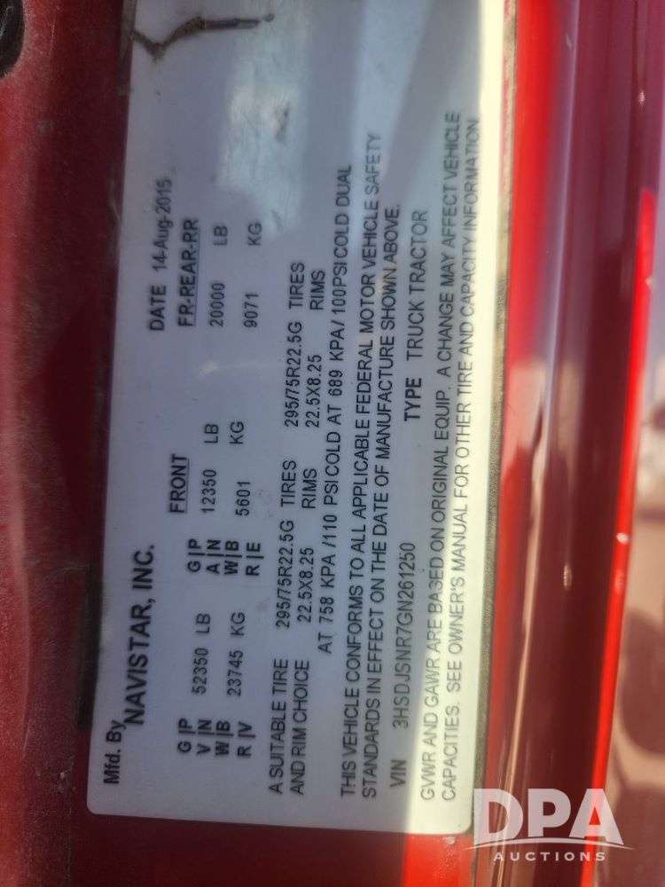 2016 International ProStar Truck (JM639), Maxxforce diesel engine, automatic 10 speed transmission, air ride suspension, air brakes, AM/FM/CD radio, no idle heat and air with auto start, automatic windows and locks, cruise control, air conditioning, heat, 72 inch mid roof sleeper, 6 aluminum rims, super singles, front tires- 295/75R22.5, rear tires- super singles, miles- 775,979.