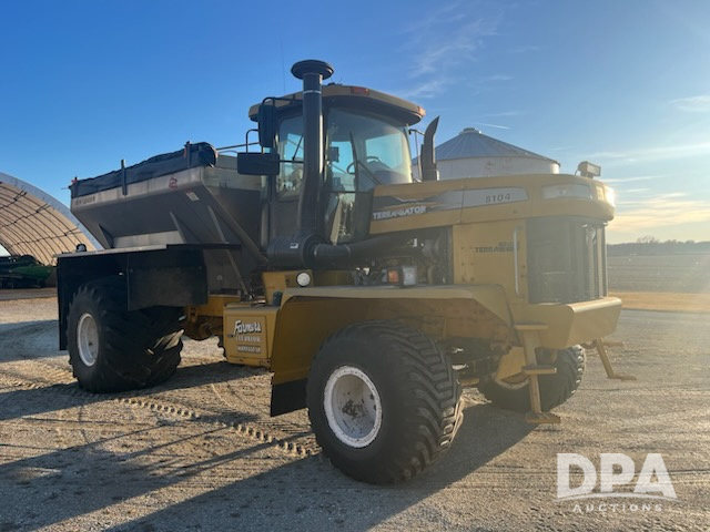 2006 Terra Gator 8104 Dry Floater (ED5268), 2006 Terra Gator 8104 dry floater, John Deere diesel engine, Terra Shift transmission, heat, AC (needs charged), AM/FM radio, New Leader 3020G4 stainless steel box, 12.5ft, dual spinners, roll tarp, New leader controller, 66x43.00-25NHS tires, shows 2,160 hours.