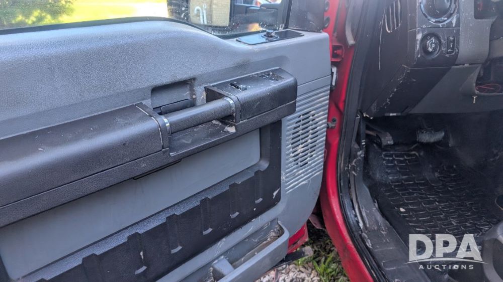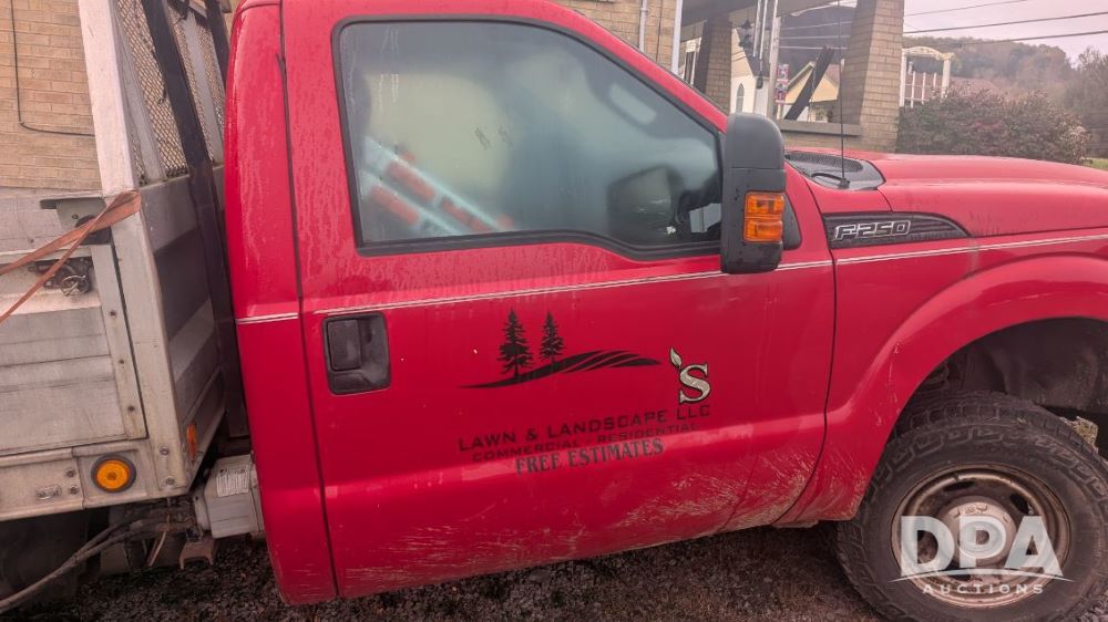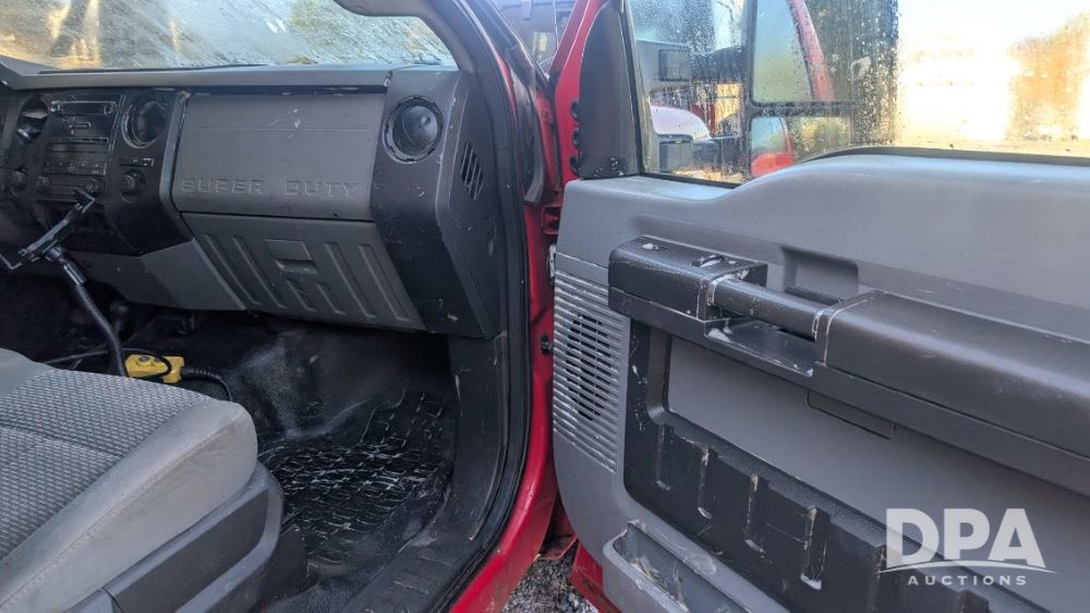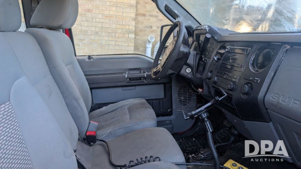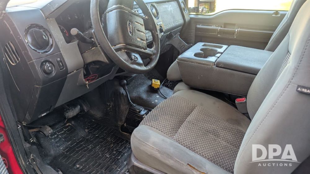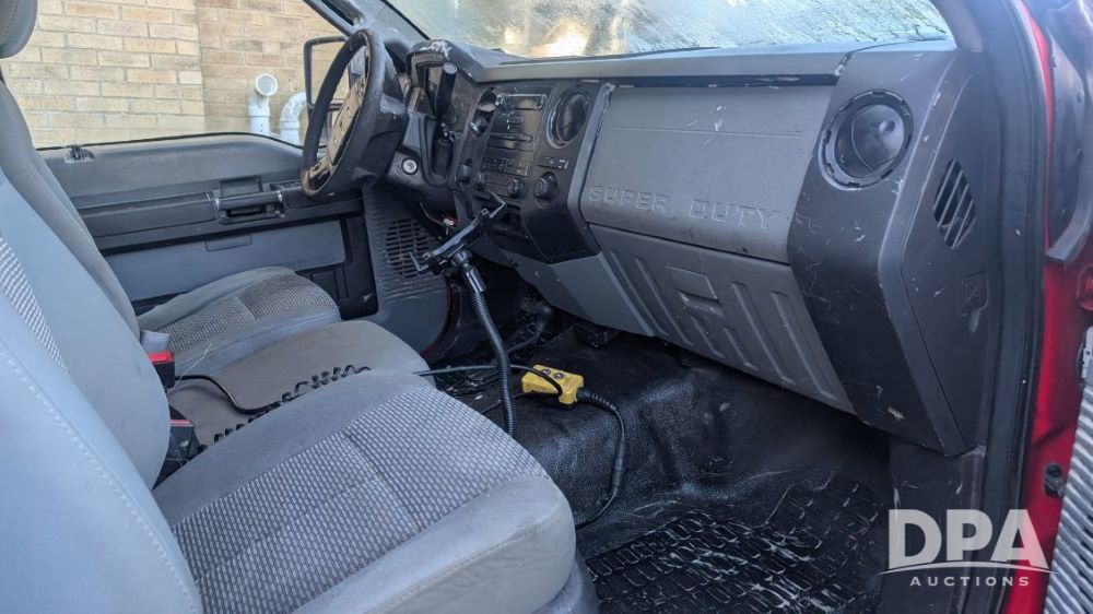 2011 Ford F250 Super Duty Dump Truck (NJP391), 6.2L gas engine, auto transmission, 4x4, power mirrors, power locks, heat/ac, am/FM radio, dump bed 6.5ft wide x 8.5ft long, cover for box, LT245/75R17 tires, shows 84,508 miles.