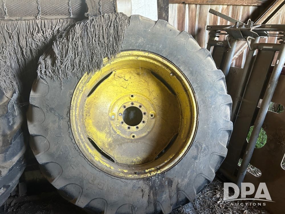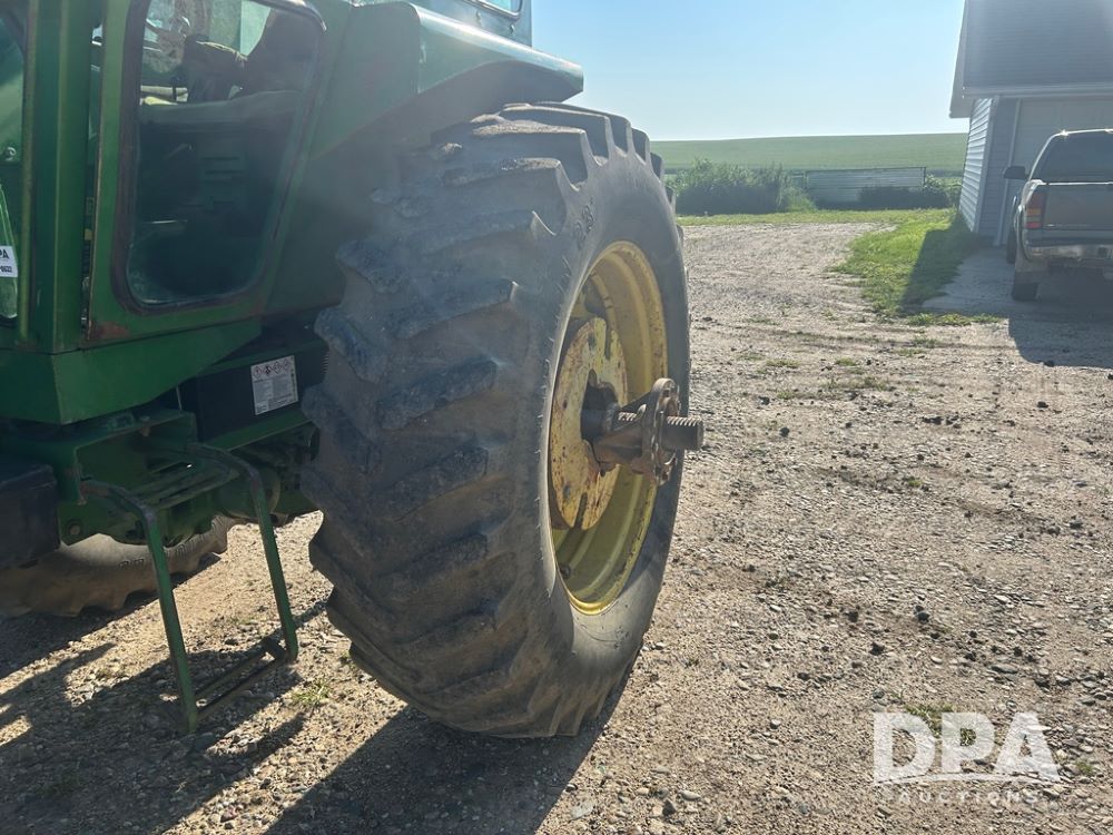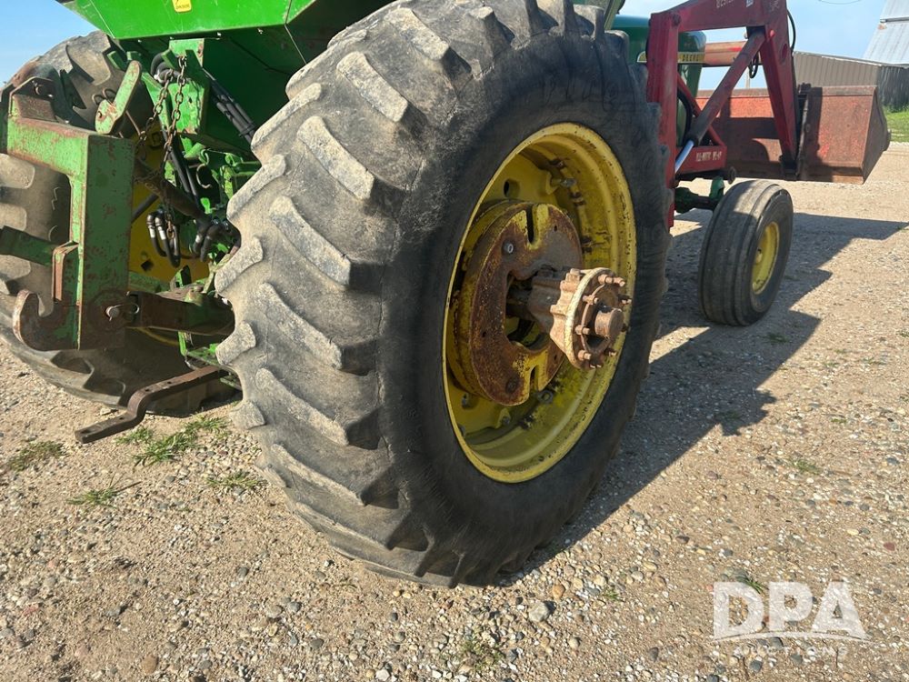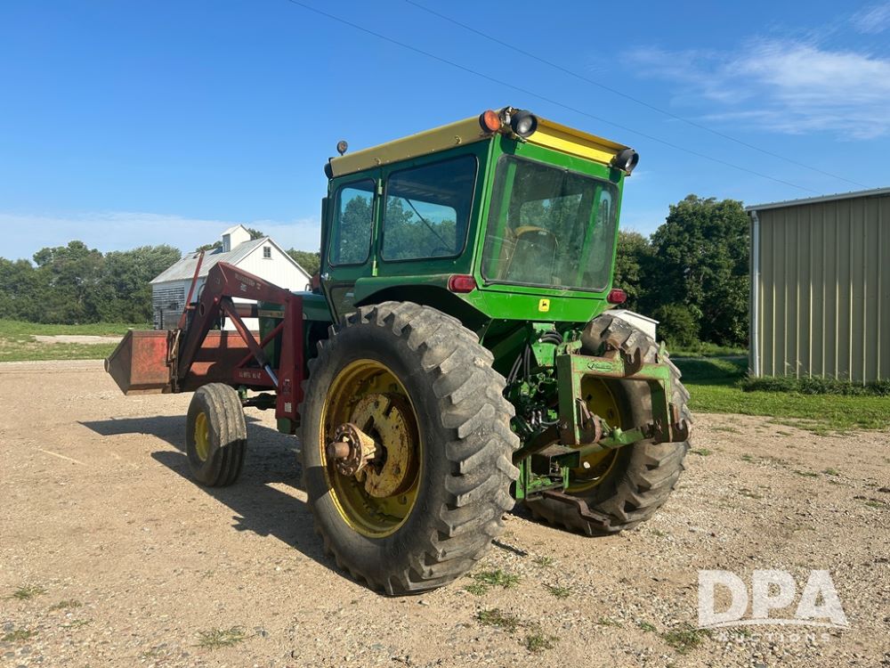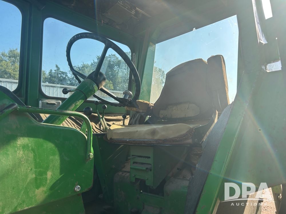 1972 John Deere 4320 Tractor (NJP383), John Deere 6.6L 6-cyl diesel engine, 8-speed partially synchronized transmission, 127.8hp, pto, 3pt, fast hitch, 600Ibs wheel weights, enclosed cab, heat, AM&FM radio, Westendorf loader, 7ft bucket, front tires 11.00-16, rear tires 18.4 R38, shows 3,857 hours.
