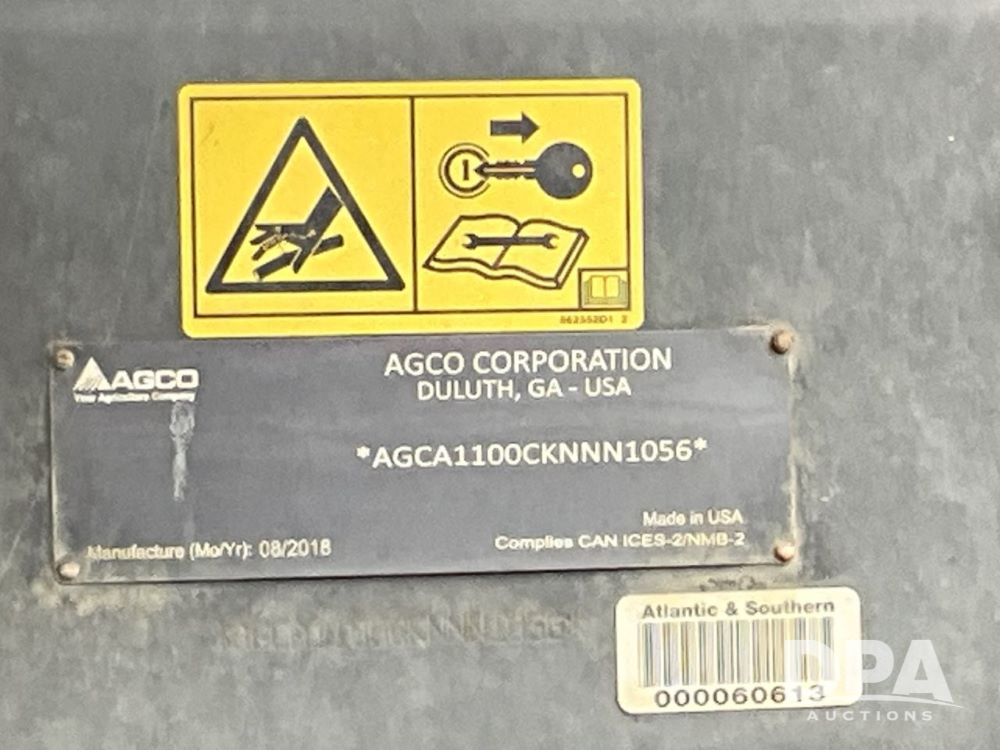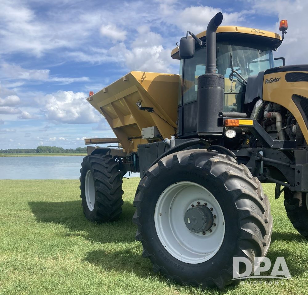 2019 RoGator 1100C Dry Machine (PZ13973), AGCO diesel engine, hydrostatic transmission, air conditioning, heat, Am/Fm radio, Advanced cab, LED light package, leather seat, buddy seat, beacon lights, New Leader L4258 Edge G4 dry spreader box, (FF-#4-409-MC), twin spinner, all hydraulic, auto hydraulic track adjustment, Alliance 650/65R38 flotation tires, fenders, VD03 GSM control, Raven Viper 4 monitor, approx. 4,785 hours.