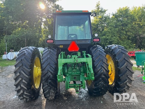 1989 John Deere 4555 Tractor (NJP398), John Deere 7.6L 6-cyl diesel engine, 15 speed powershift, 173hp, 2wd, 1000 PTO, 3 point, front weights, rear duals, cab, heat/ac, AM/FM radio, rear tire size 480/80R42, front tire size 14L-16, 275 hours on engine rebuild, shows 8,121 hours.