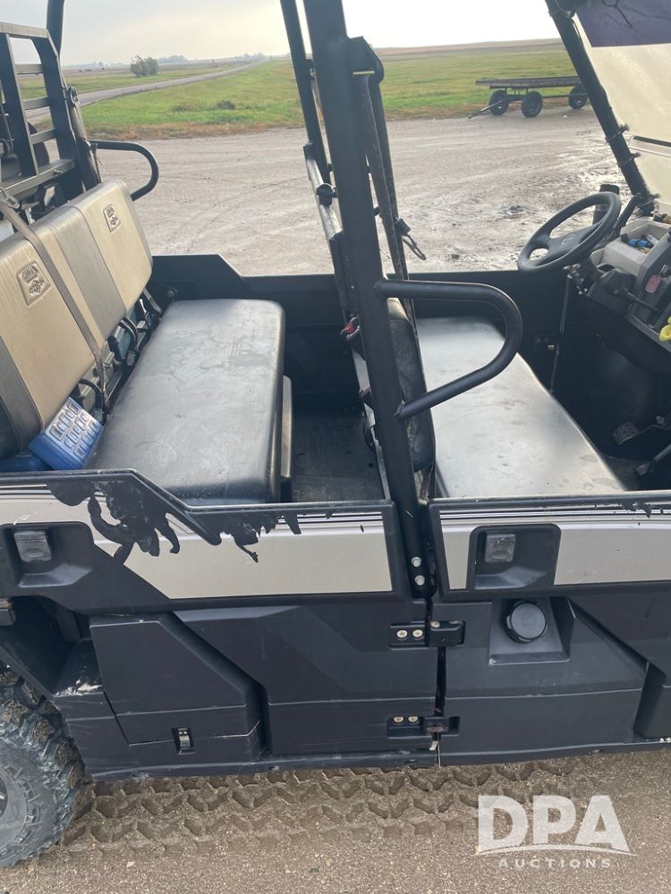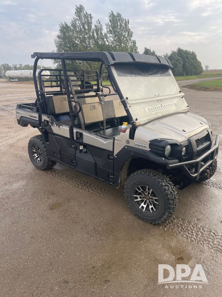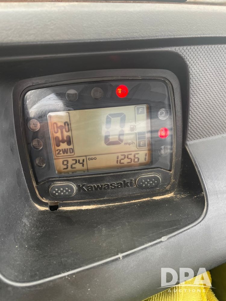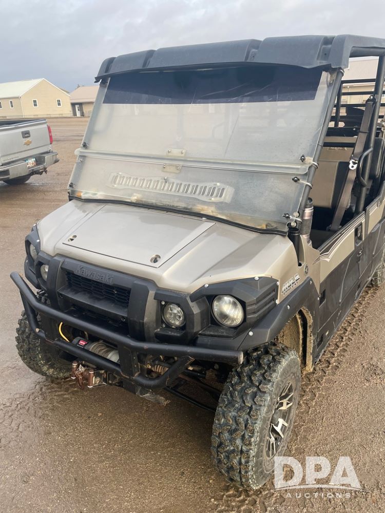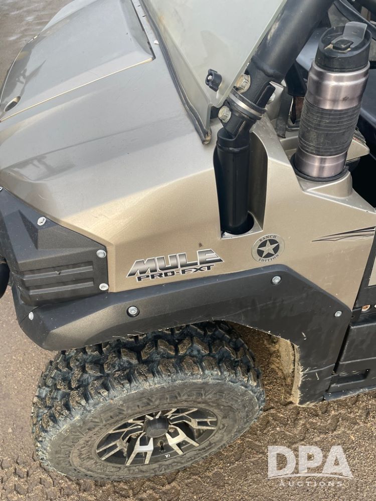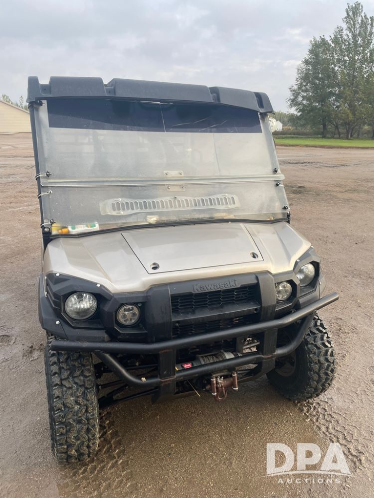 2015 Kawasaki Mule (DR12534), model Pro FXT, gas engine, 4X4, OROPS canopy, half doors, double bench seat, front grill guard, Warn front electric winch, drop down windshield, rear receiver hitch, shows 1,730 hours and 12,561 miles.
